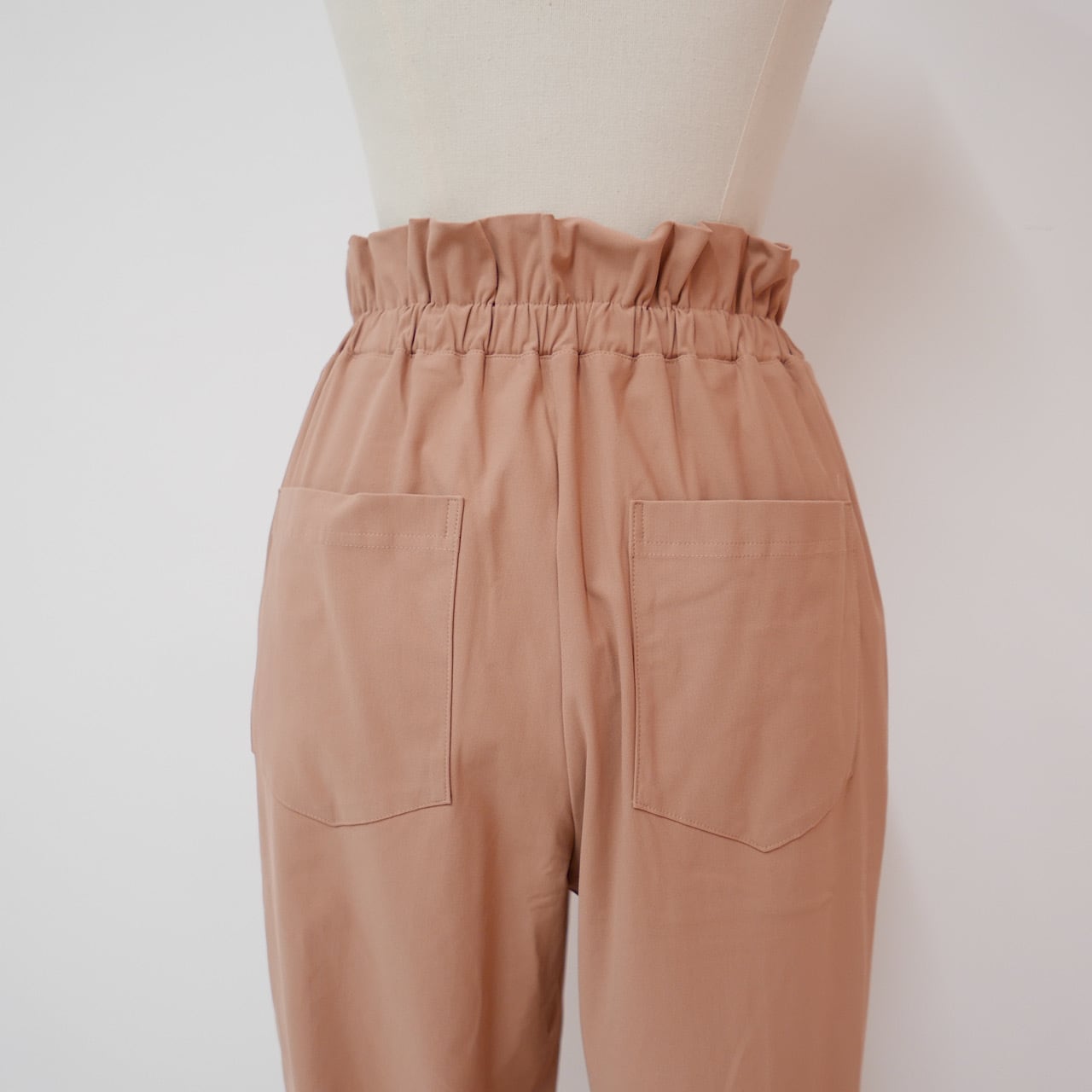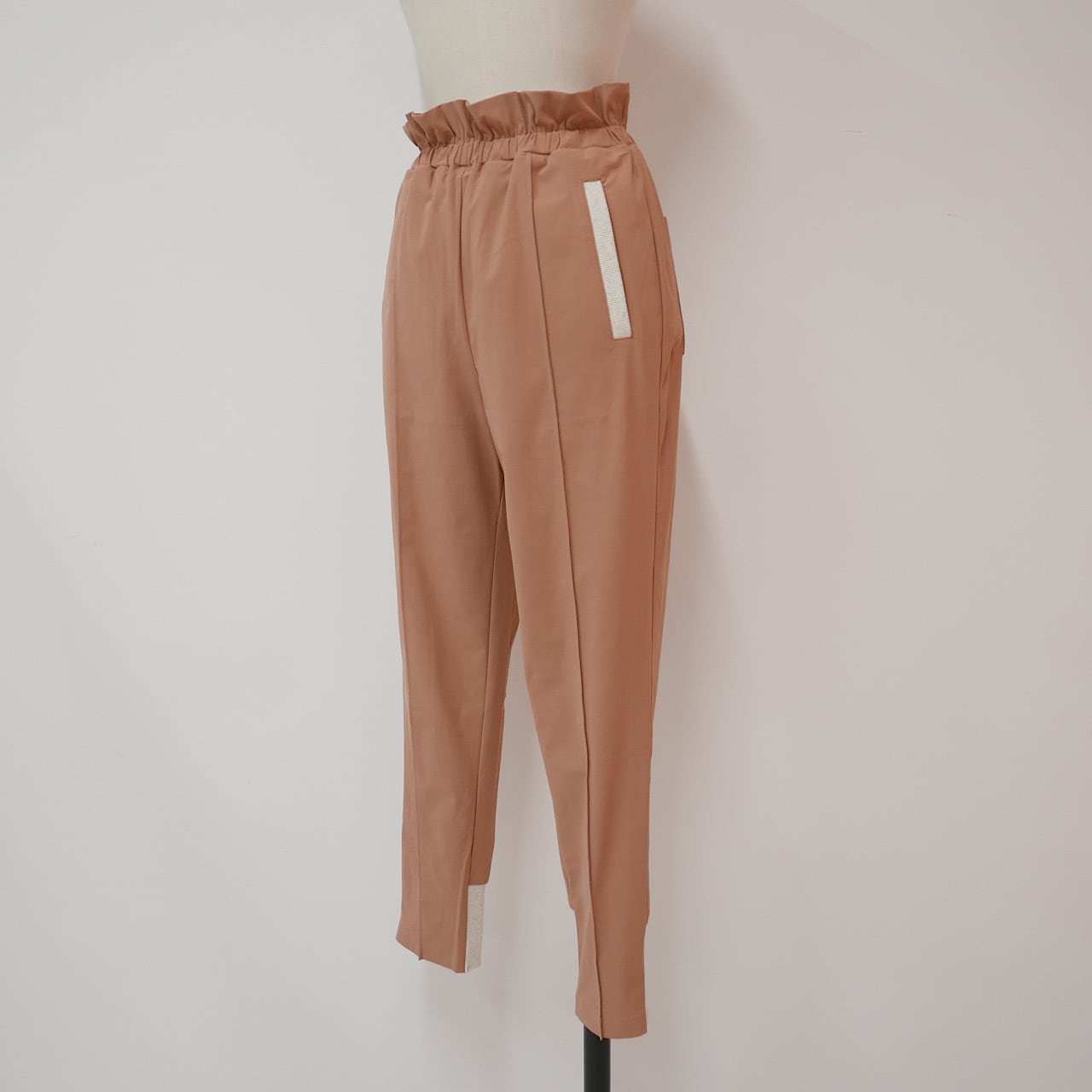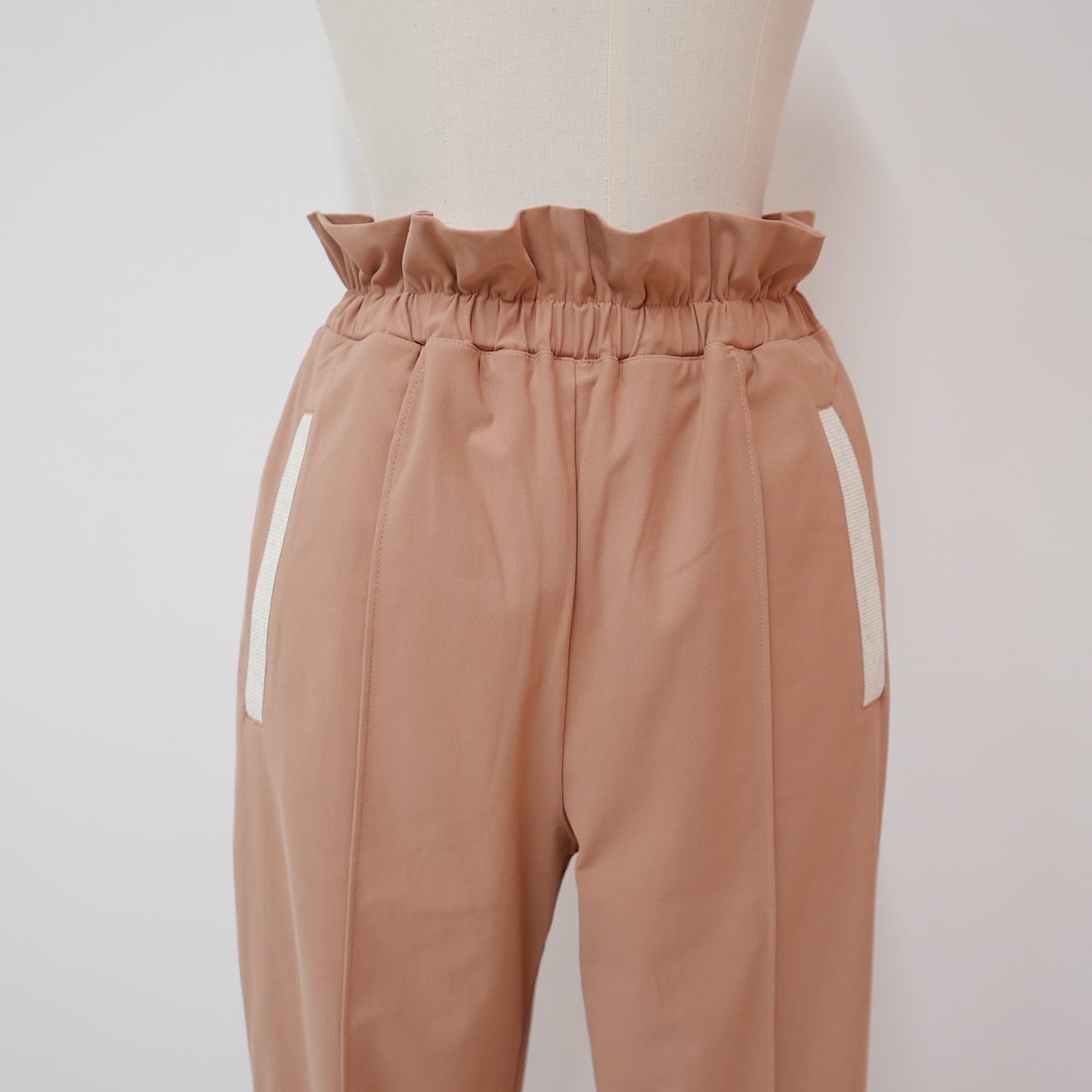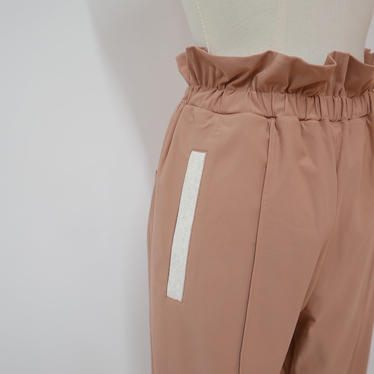 ウエストのフリルや裾のリブ切り替え、センタープリーツなど綺麗に着こなせるこだわりがたくさん詰め込まれています。
