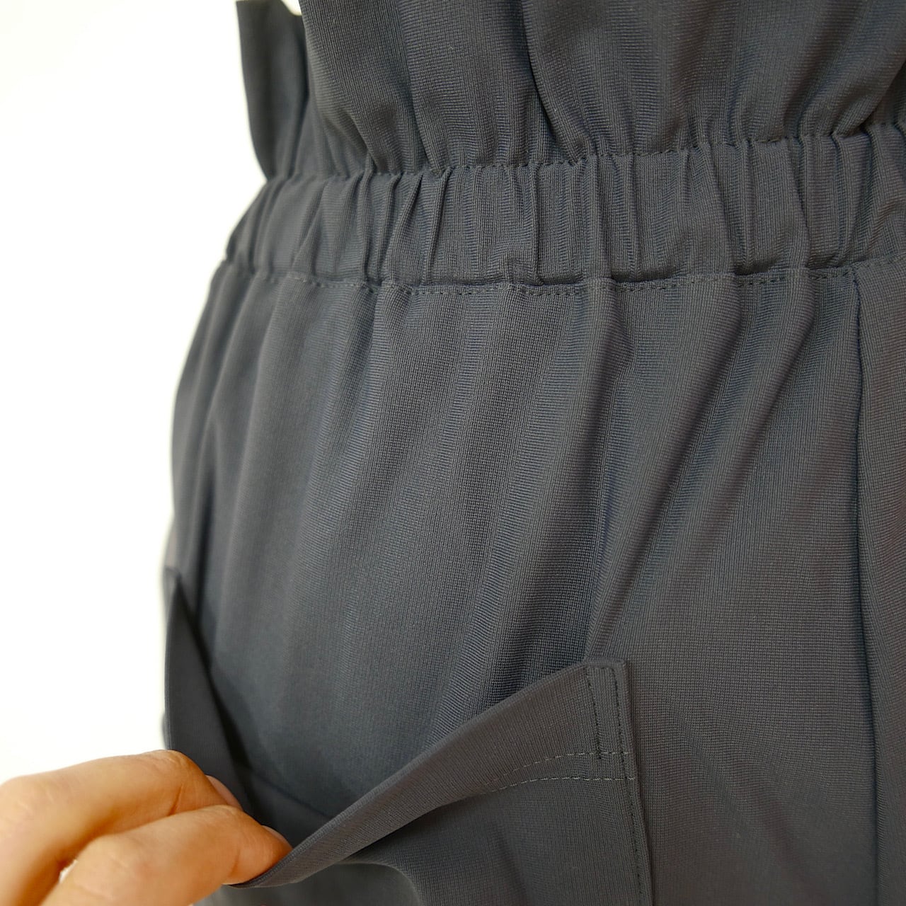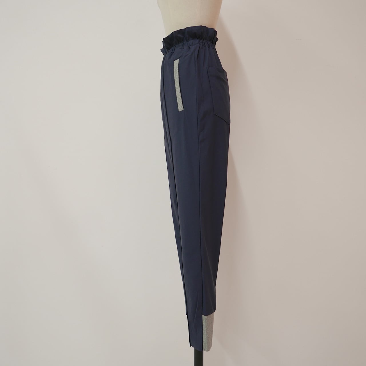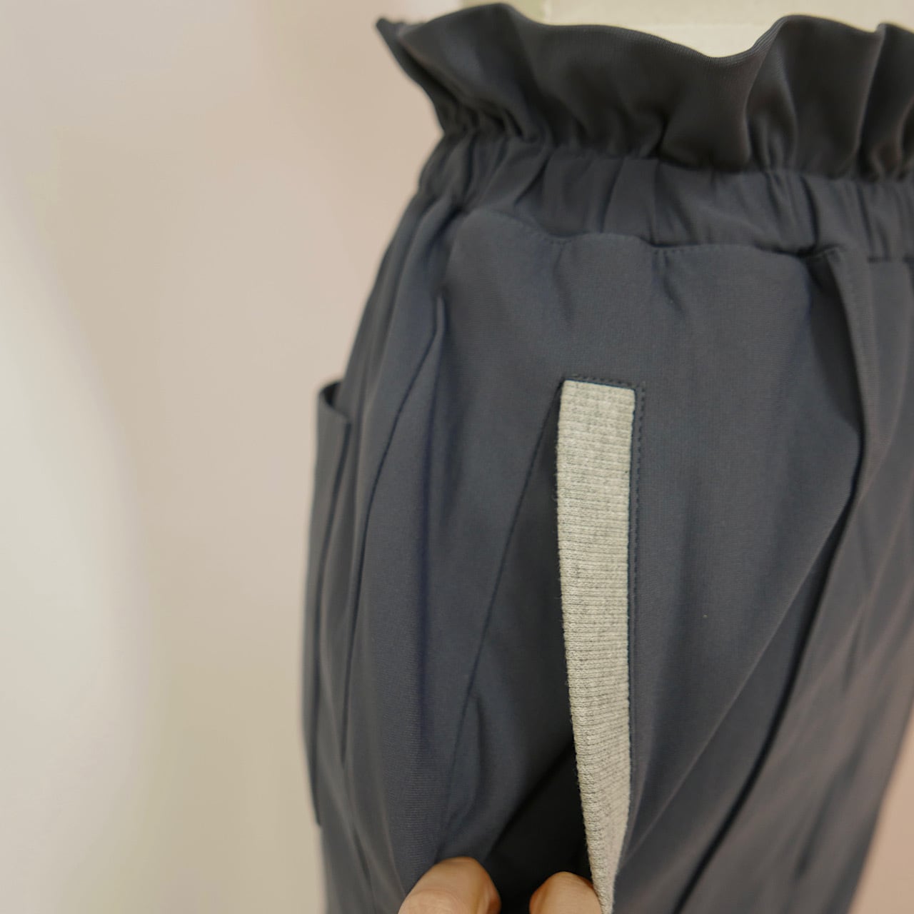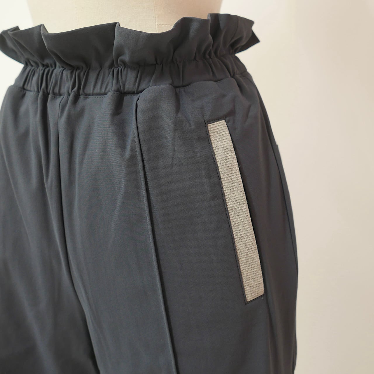 ウエストのフリルや裾のリブ切り替え、センタープリーツなど綺麗に着こなせるこだわりがたくさん詰め込まれています。