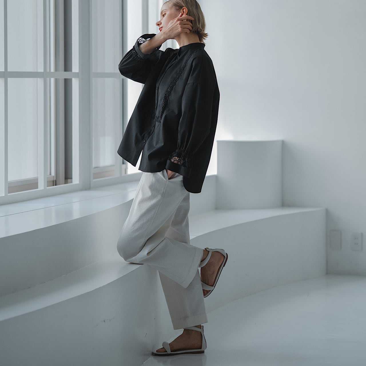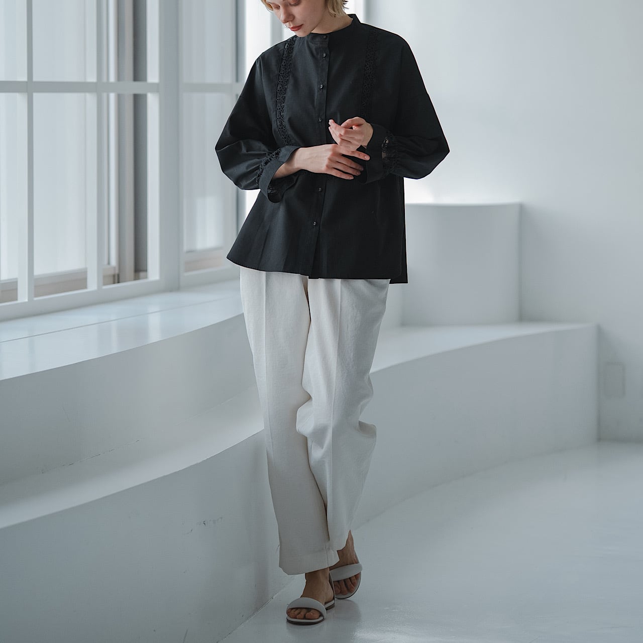 カジュアルなスタイルも綺麗な印象にしてくれます。