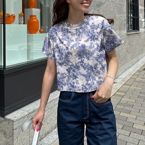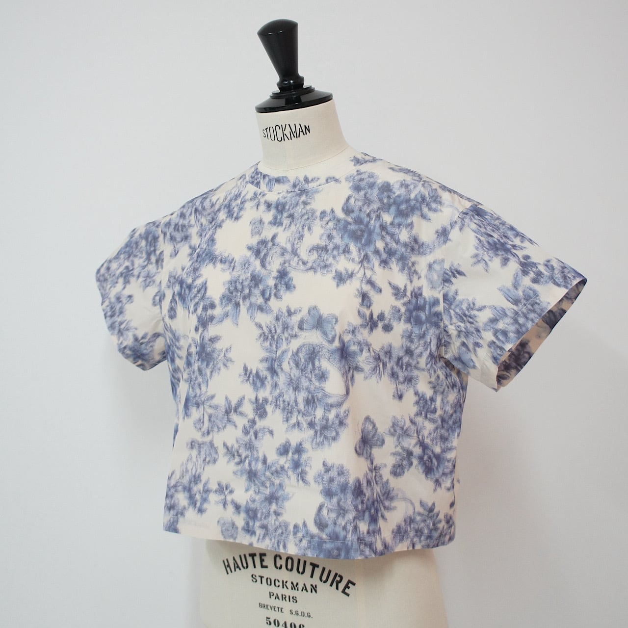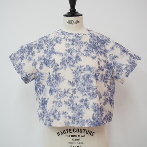 レトロでダスティーカラーの品のあるトップス。シンプルな形で短めの丈がボトムスを選ばない。
