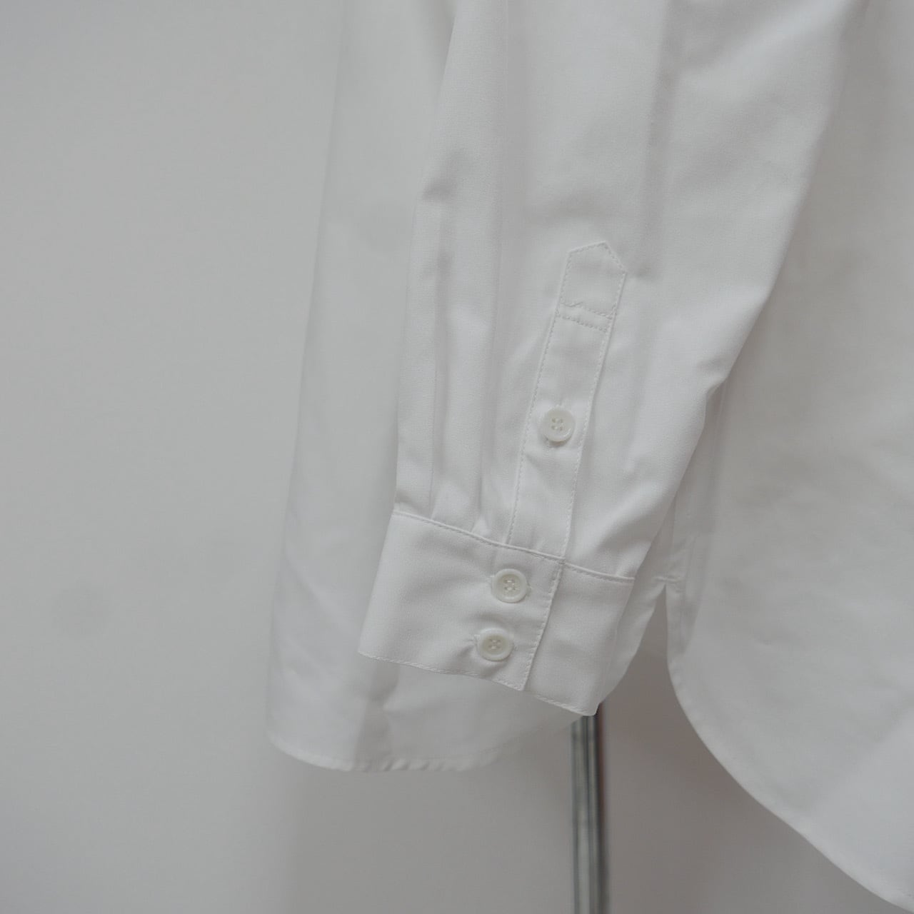 イージーケアでシワになりにくく微かな光沢感が特徴の丸襟シャツ。