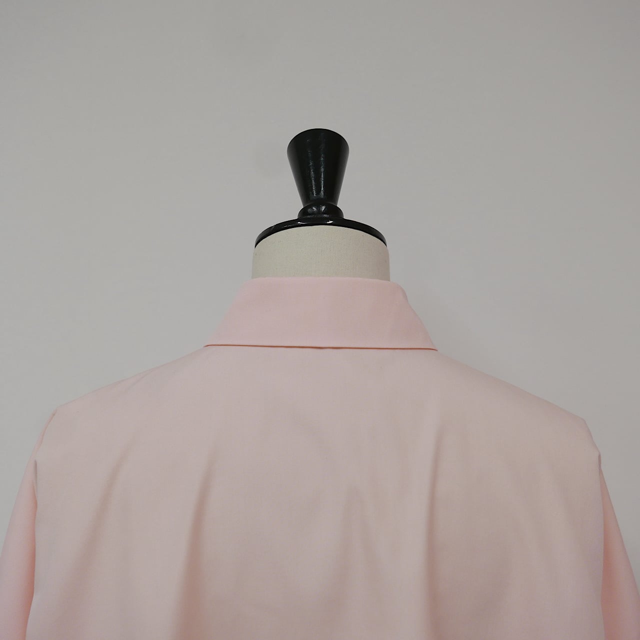 イージーケアでシワになりにくく微かな光沢感が特徴の丸襟シャツ。