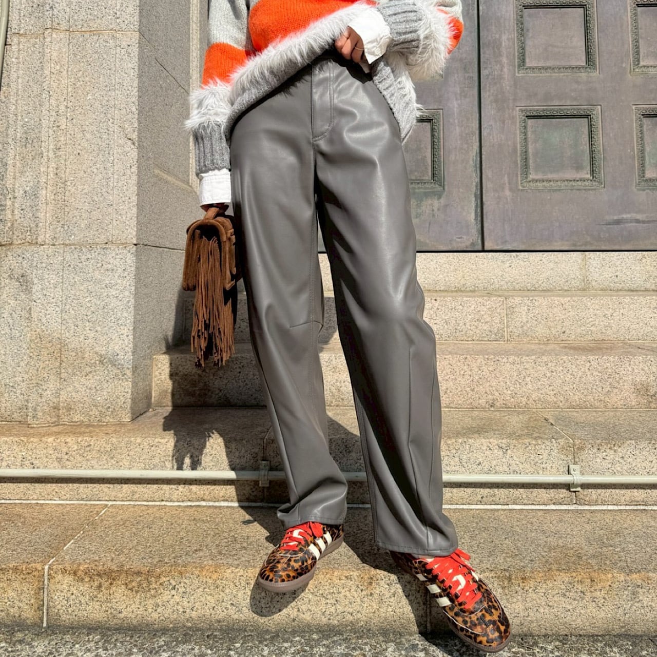 柔らかく通気性や透湿性にも優れたフェイクレザーパンツ。