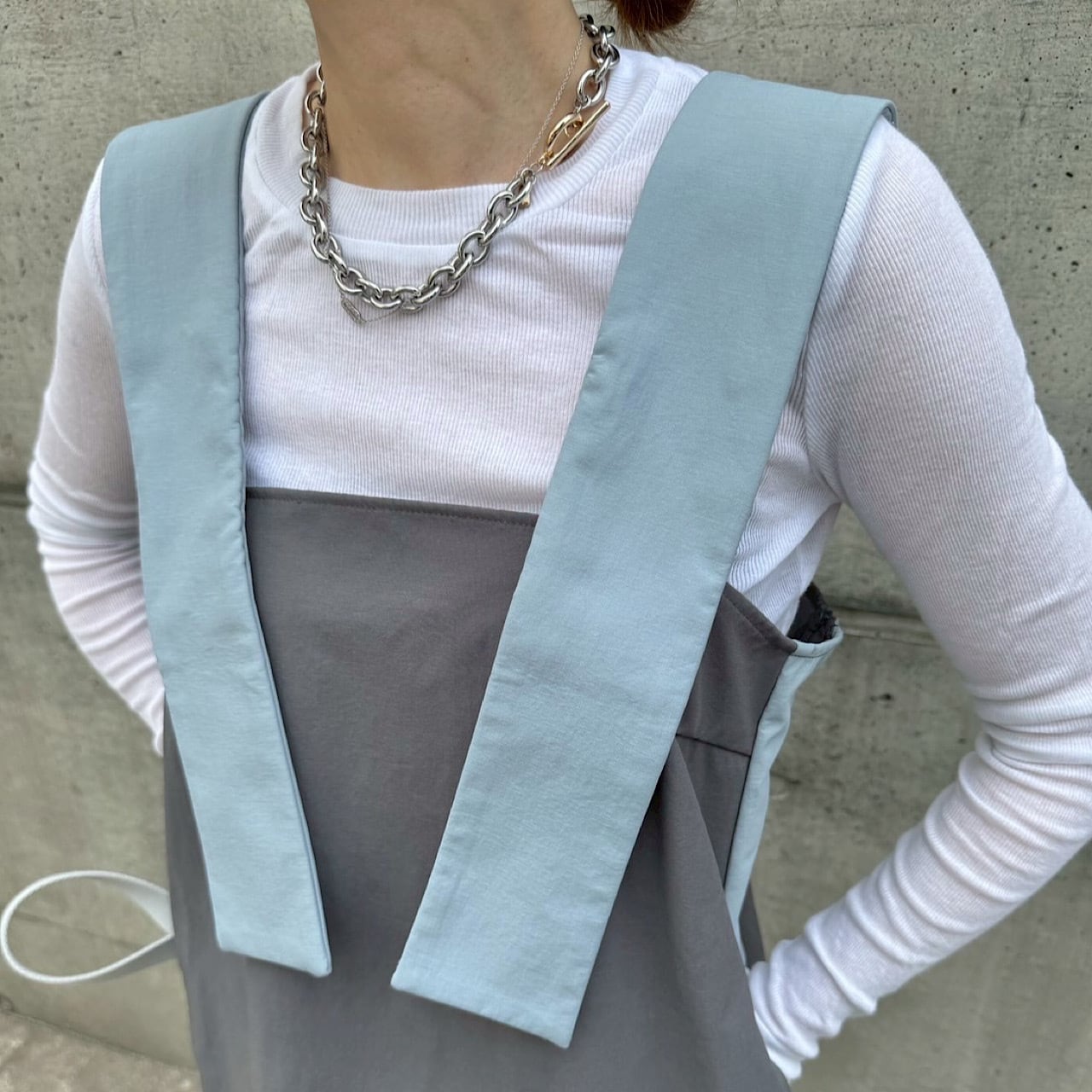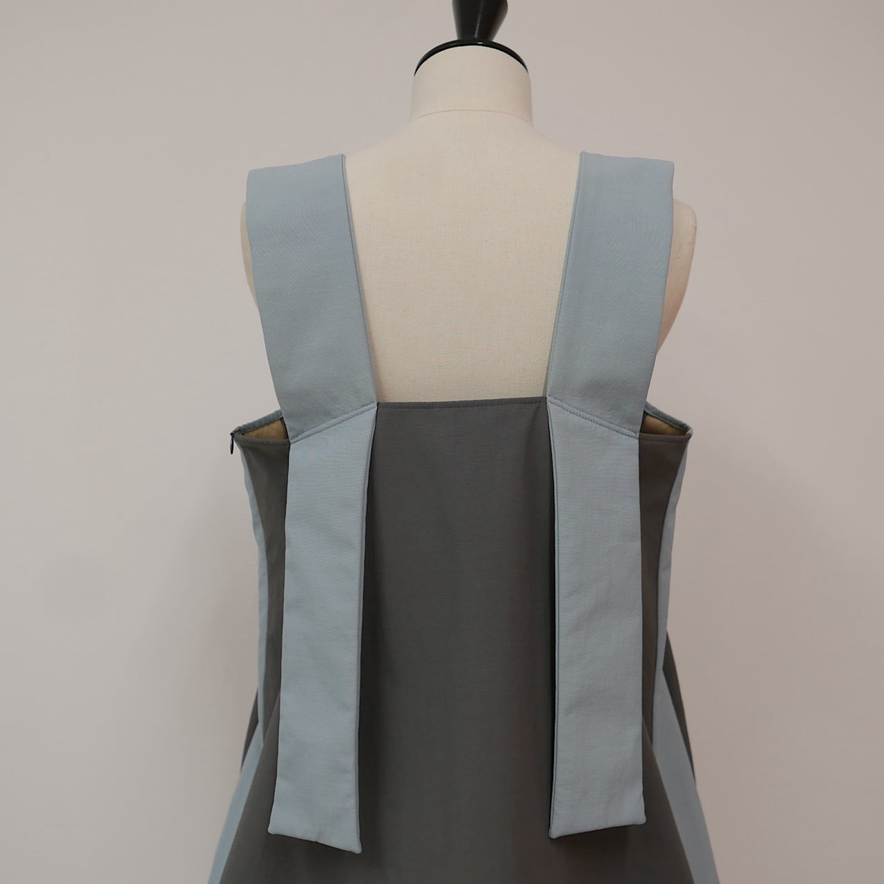 正面と後ろ姿ではガラリと印象が変わるジャンパースカート。