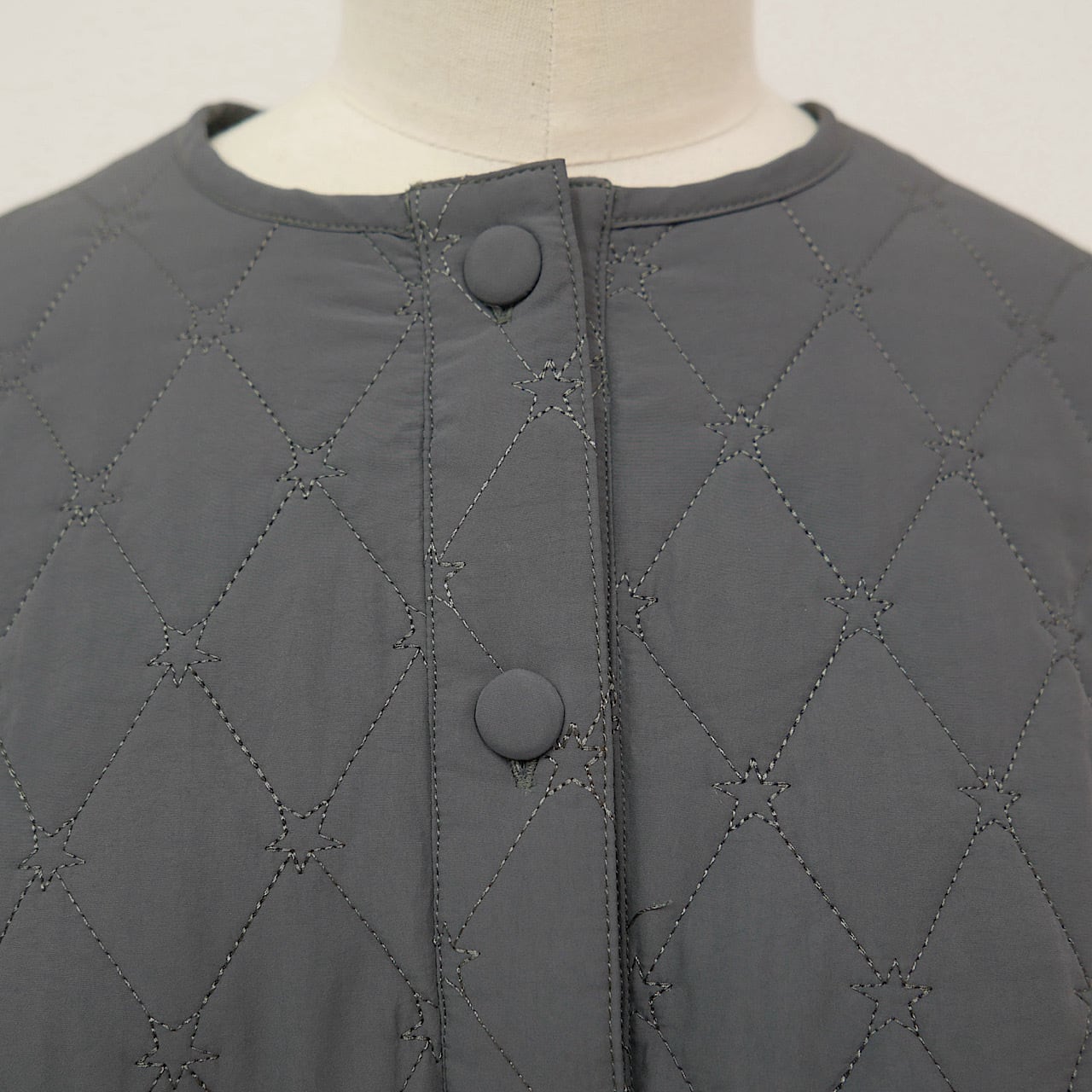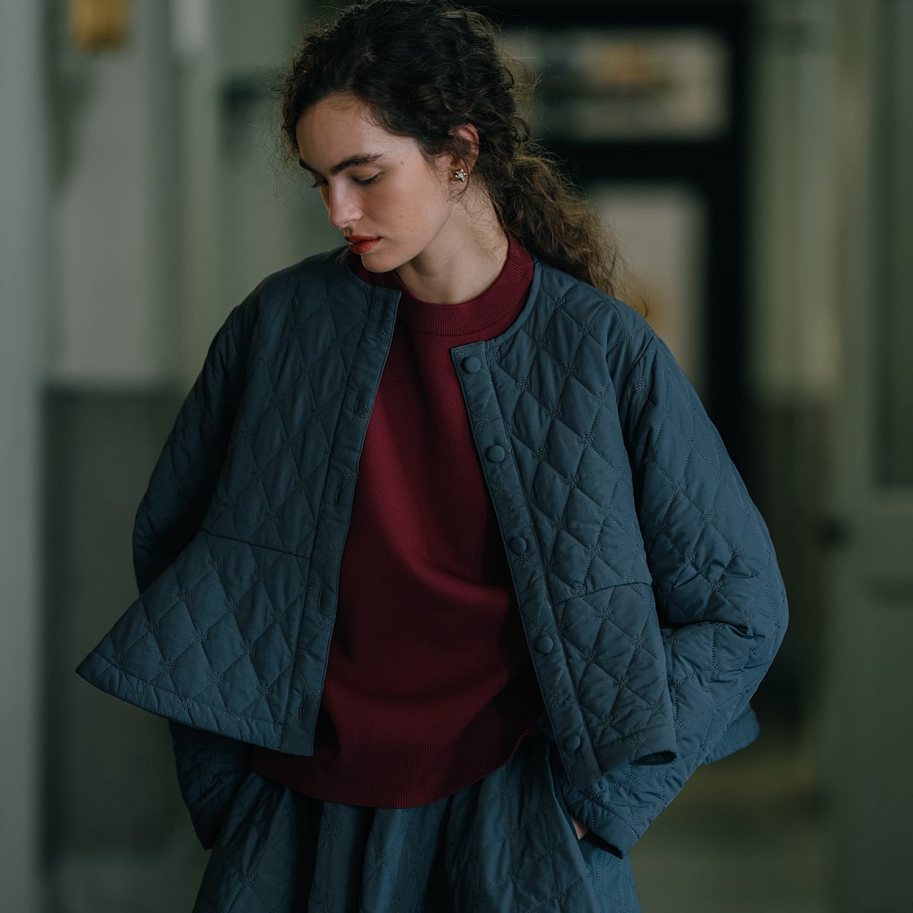 ワンピースやパンツスタイルにも合わせやすいアウターです。