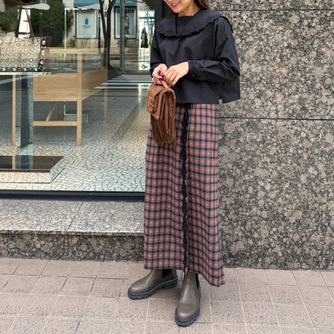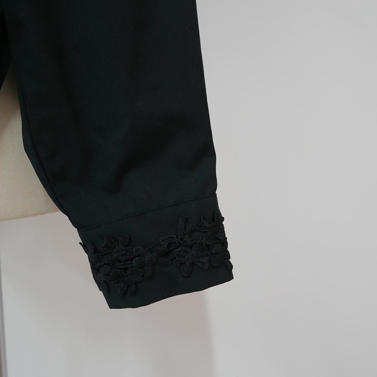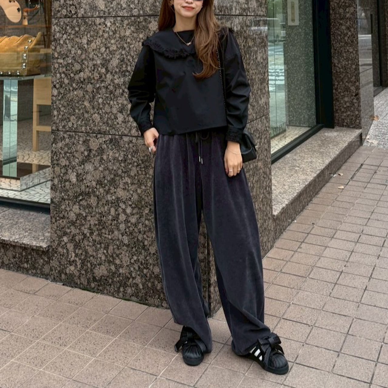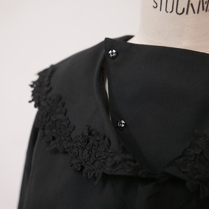 清楚でクラッシックな印象のセーラー襟に上品なレースを施したブラウス。袖口にも上品なレースを。長すぎない丈でどんなボトムスとも相性◎