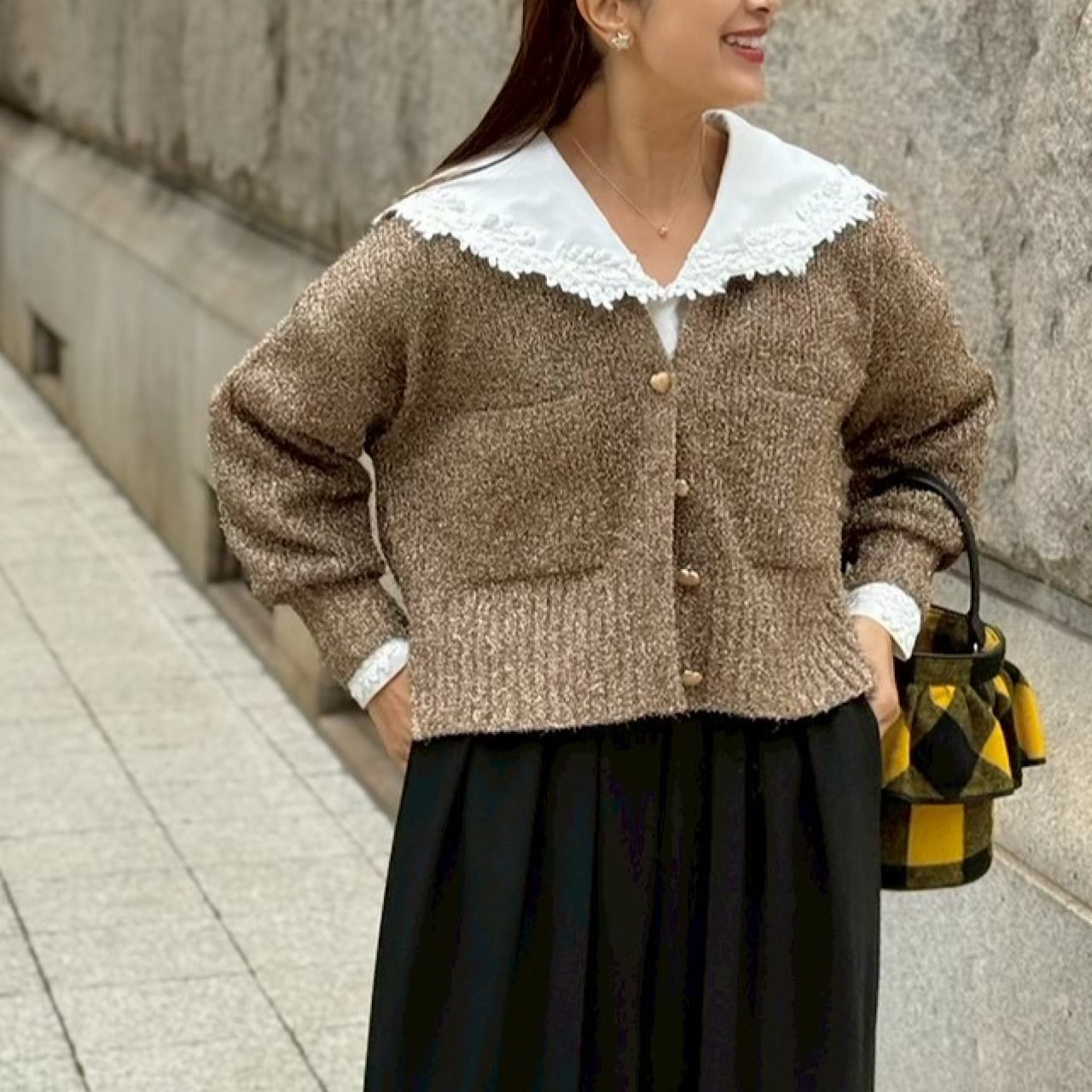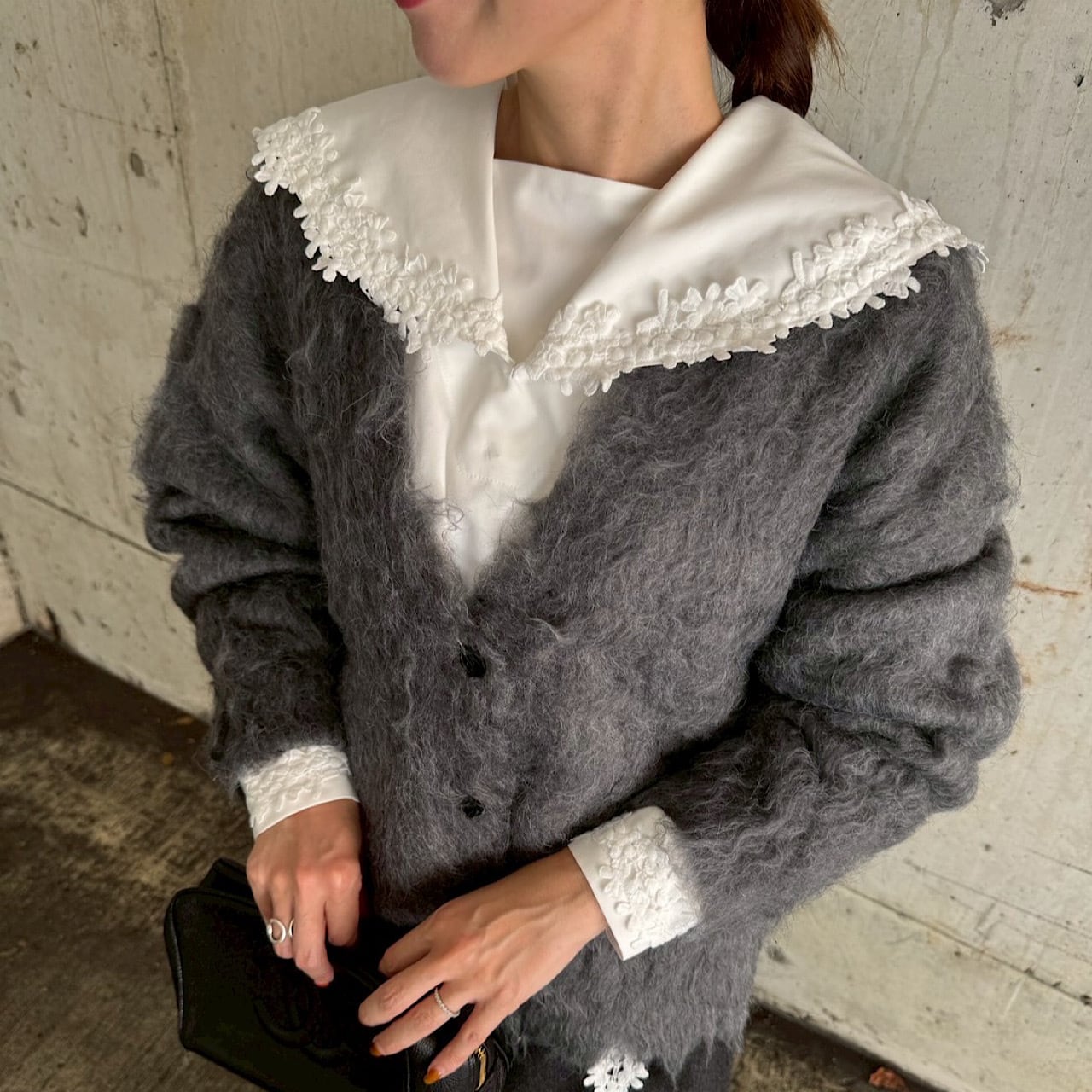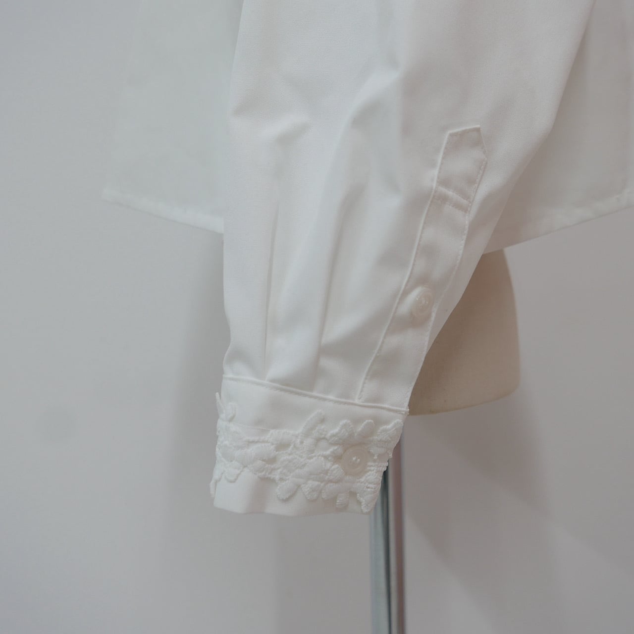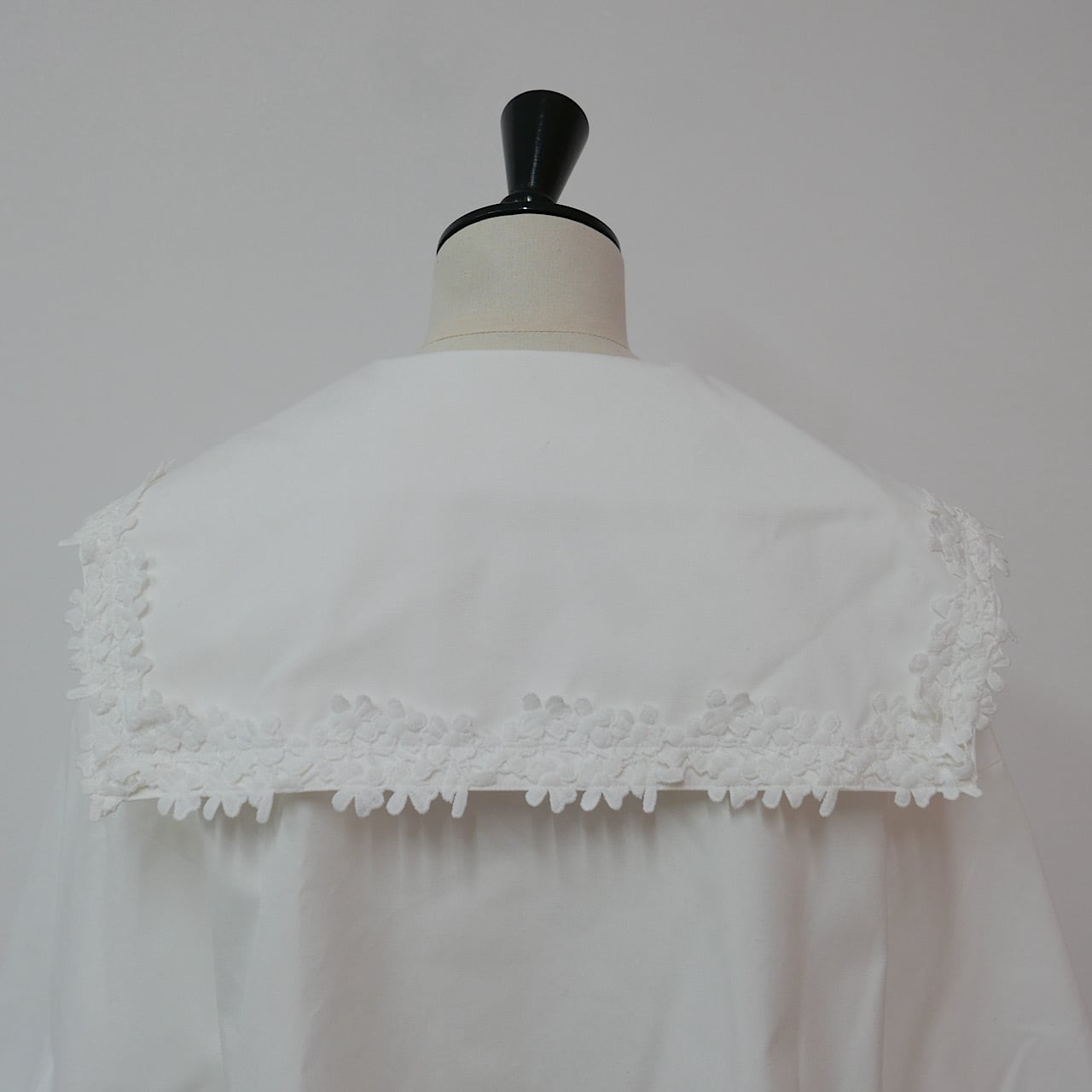 清楚でクラッシックな印象のセーラー襟に上品なレースを施したブラウス。袖口にも上品なレースを。長すぎない丈でどんなボトムスとも相性◎