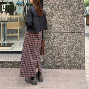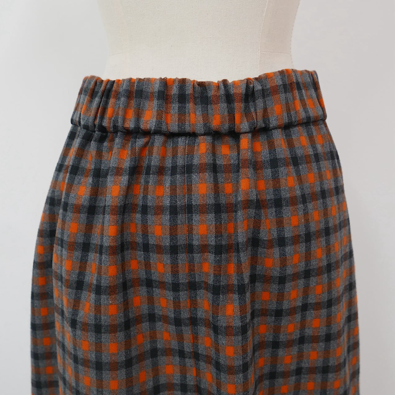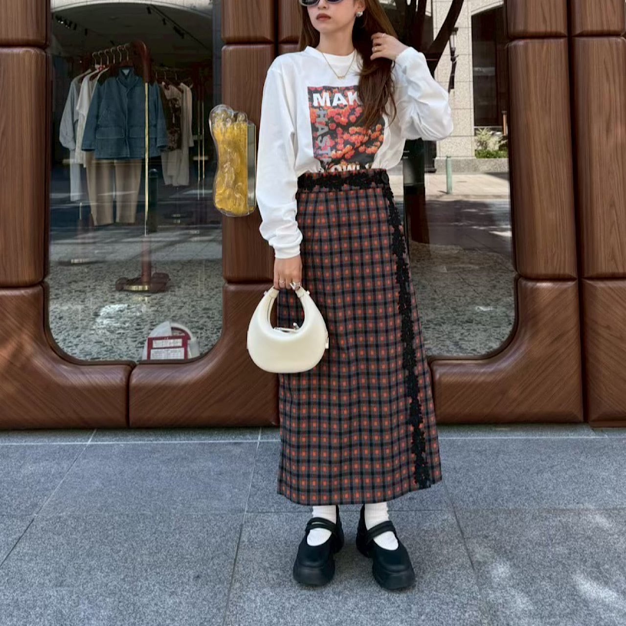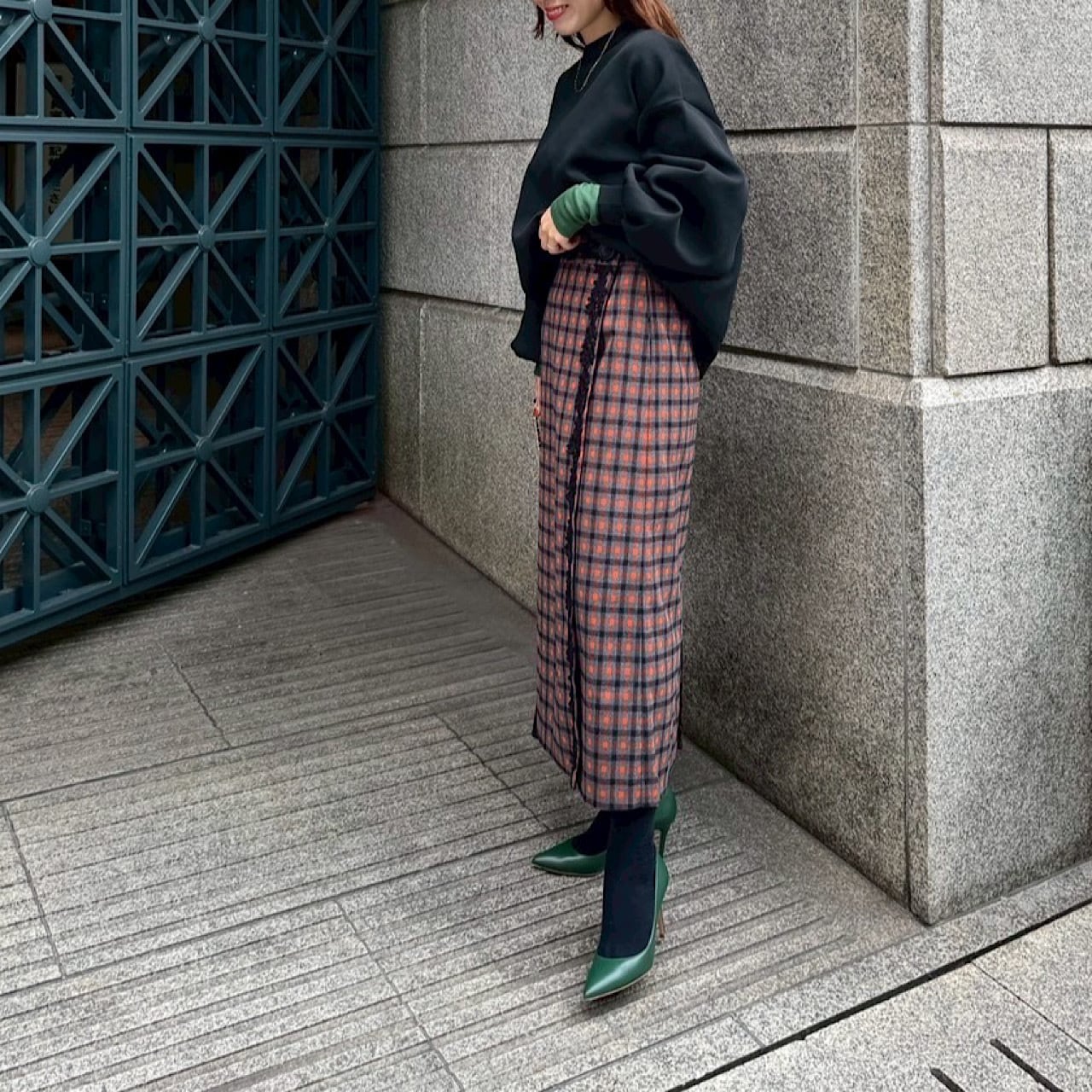 ミモレ丈のラップスカート。動きやすさにも重視したデザインでウエスト後ろ部分はゴム。上品なレースを施し、レトロでクラッシックな印象に仕上げてくれる。トップス次第でコーディネートの幅が広がる。