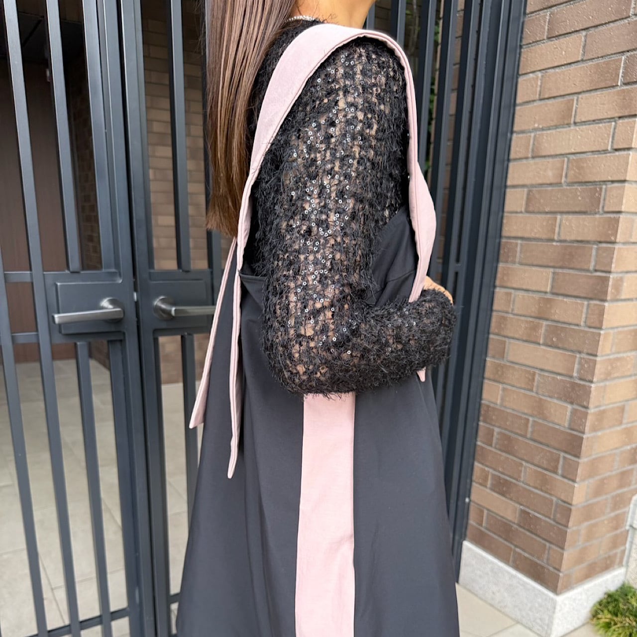 重ね着をして袖口からスパンコールを出すのもおすすめ。