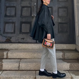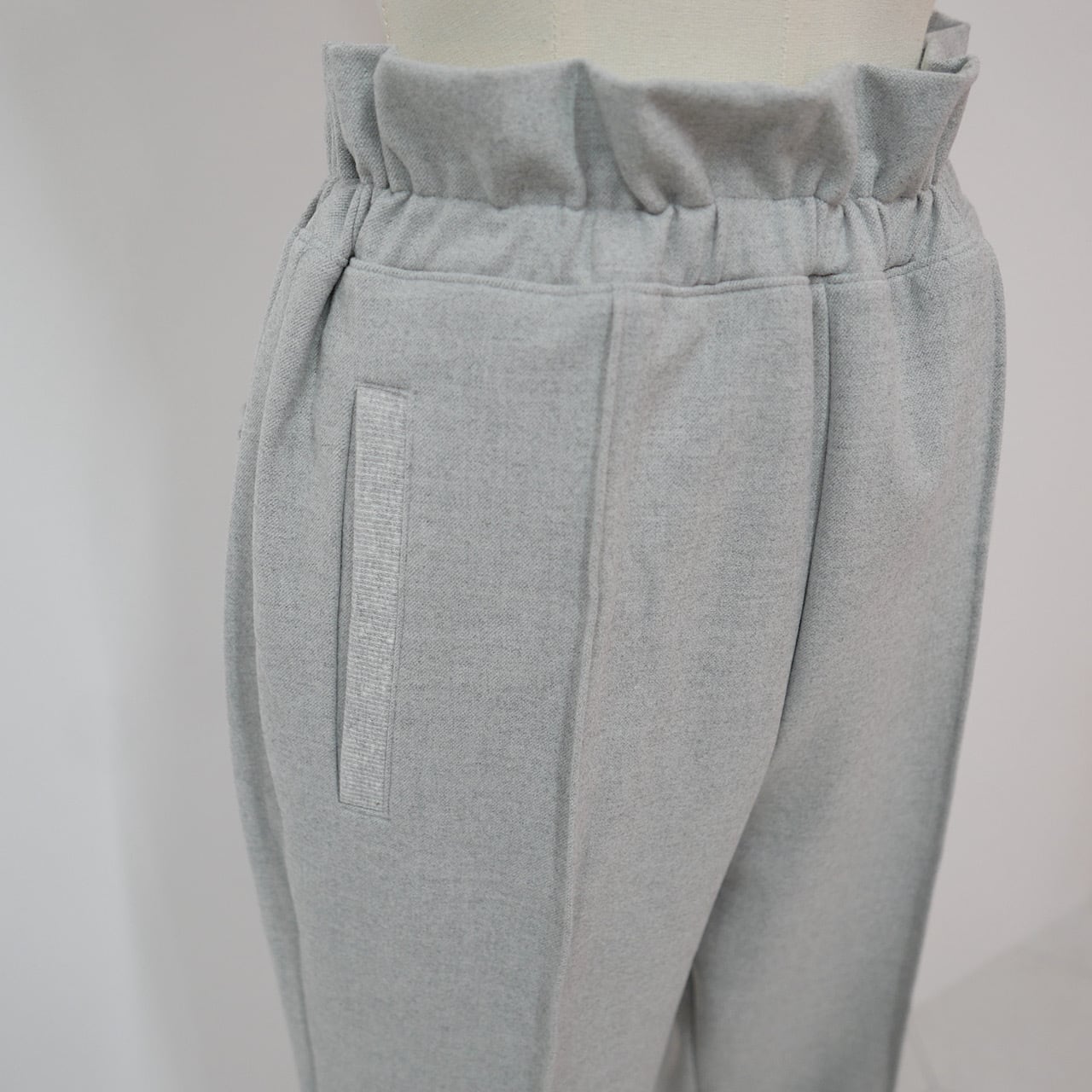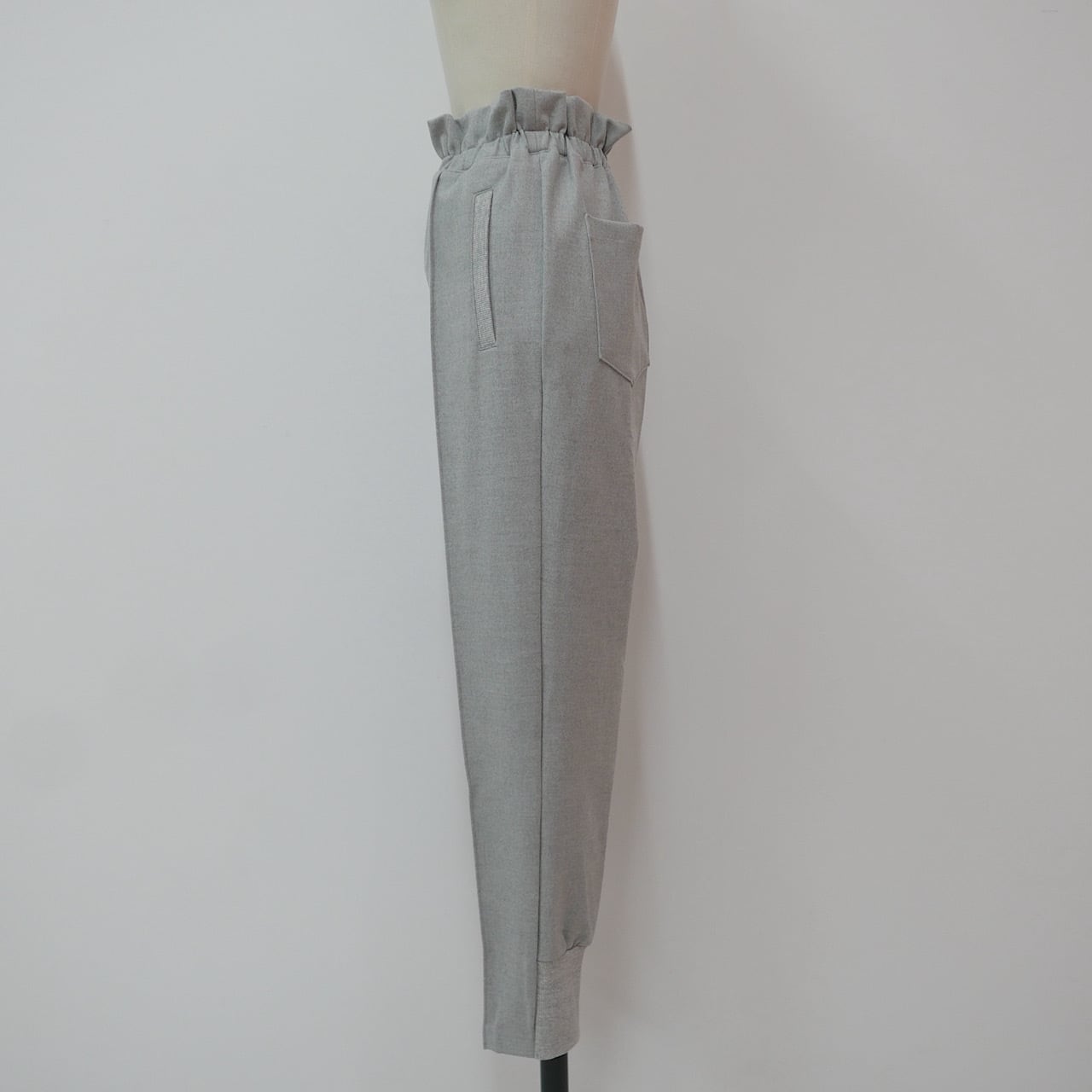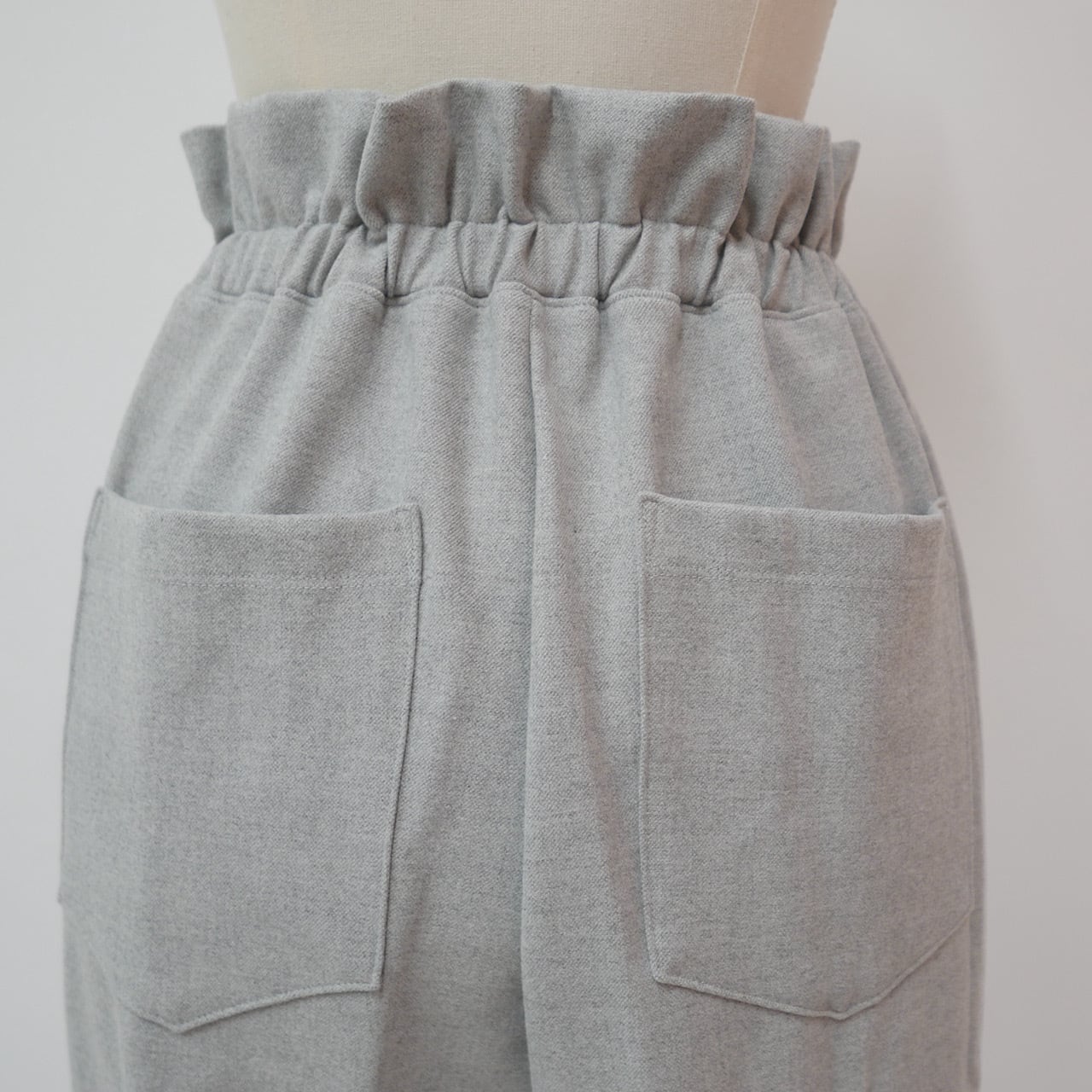 ウエストのフリルや裾のリブ切り替え、センタープリーツなど綺麗に着こなせるこだわりがたくさん詰め込まれています。