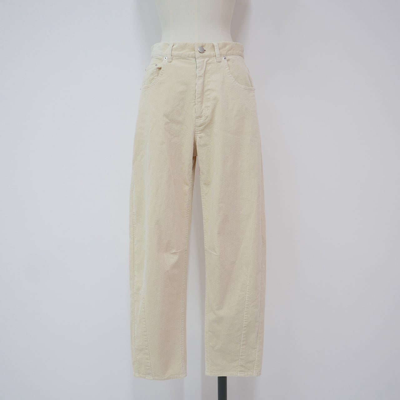 体型を拾わない綺麗目なカーブシルエット。履き心地もよく重宝するに違いないパンツ。