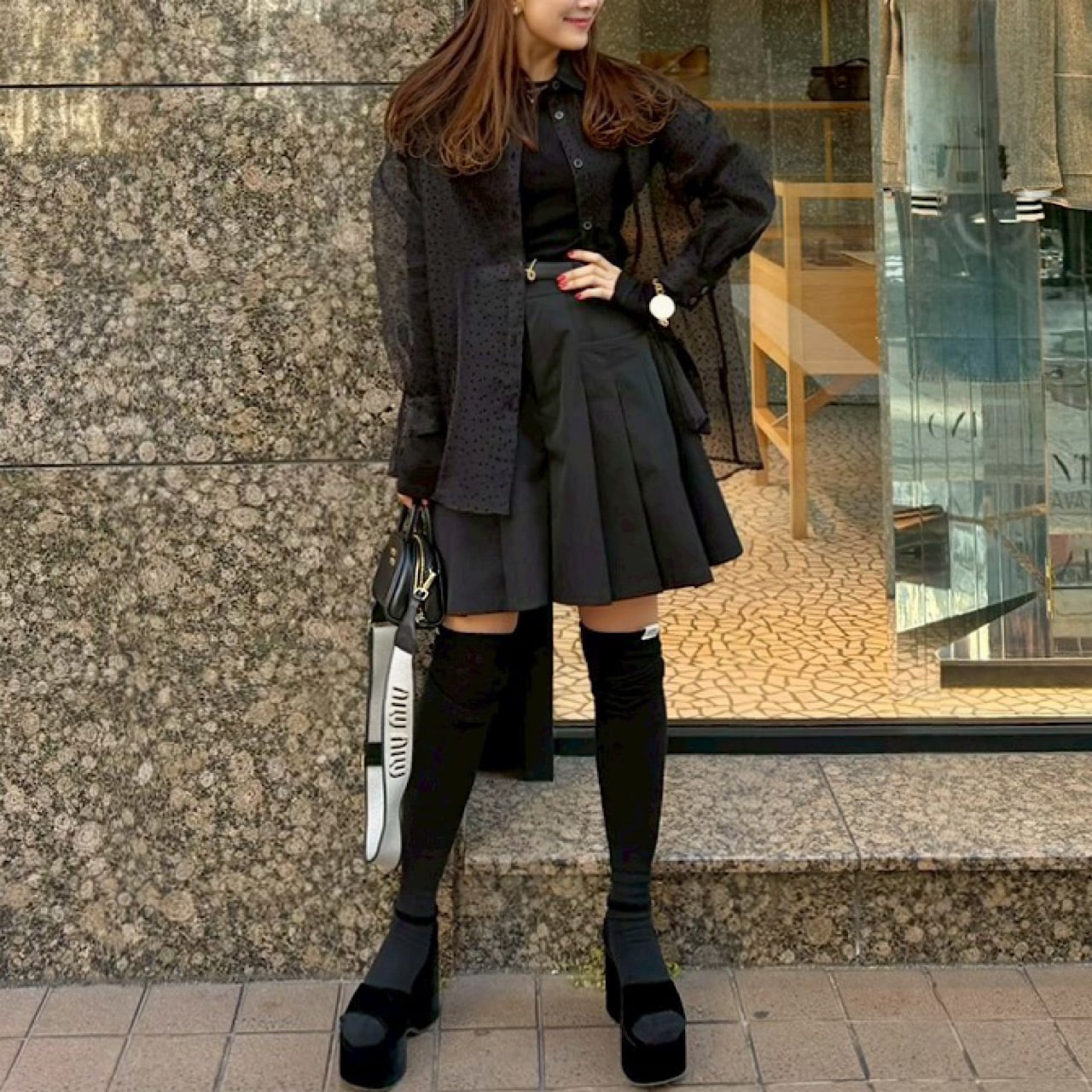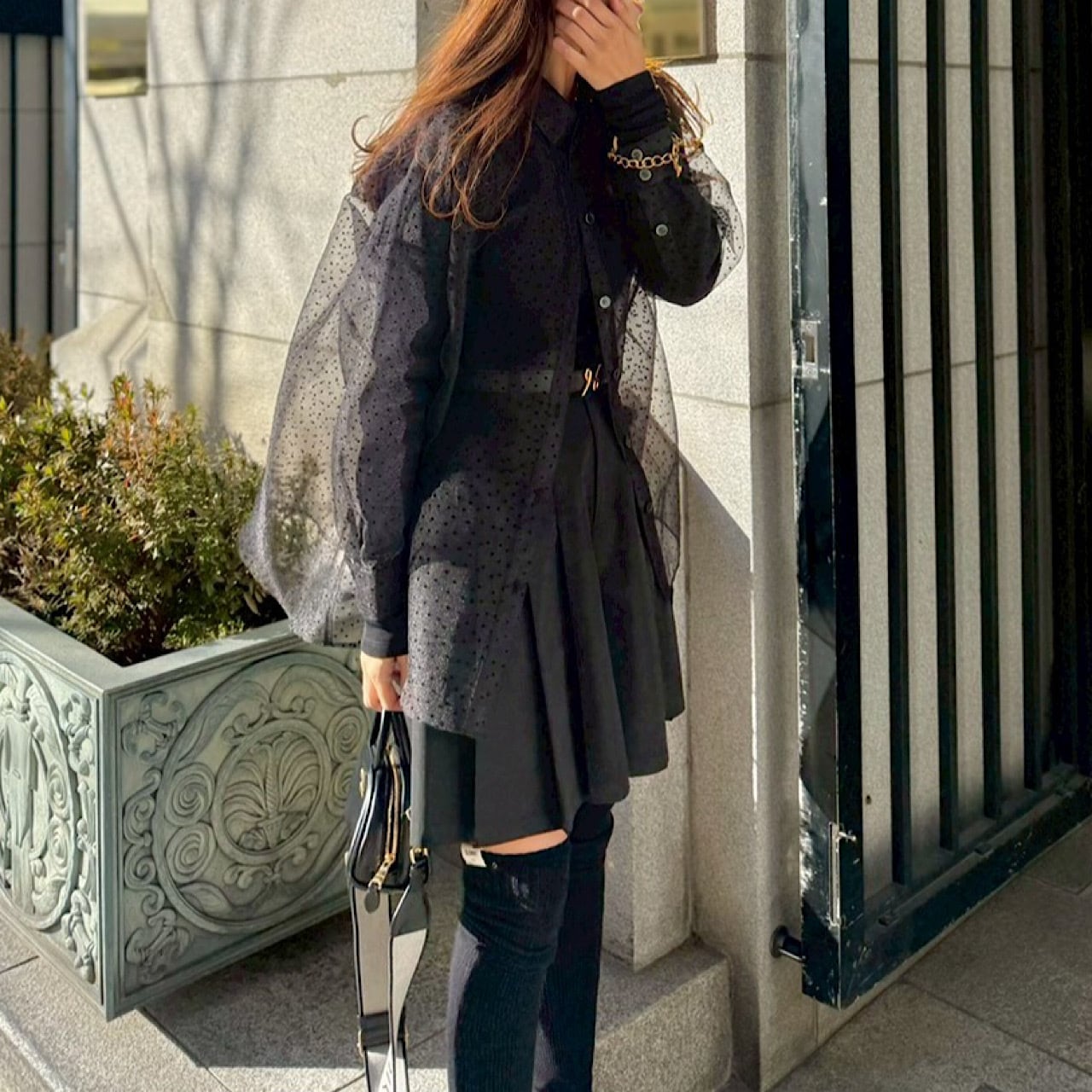 シアーロングスリーブTシャツ(ブラック)