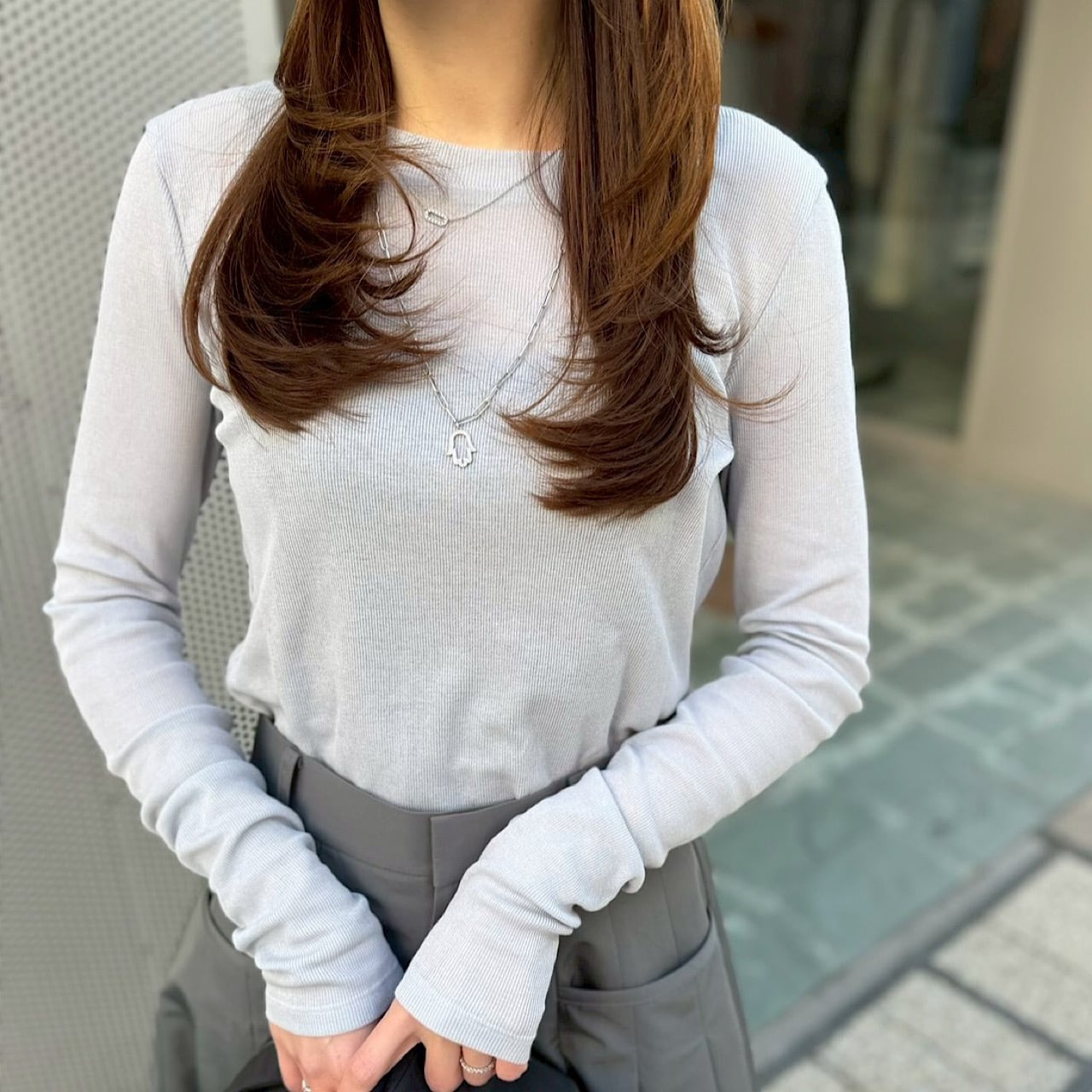 程よいシアー感を楽しめるカットソー。 長めの袖丈は袖口でくしゅっとなるデザイン。 伸縮性が高く着心地の良い素材を使用しました。 レイヤードにぴったりなインナーカットソーです。 <素材> 綿 77% ナイロン 23% <サイズ>(単位/㎝) 着丈:62 バスト:86 肩幅:37 袖丈:70 ※撮影状況、スクリーンによって色味が違って見える場合がございます。