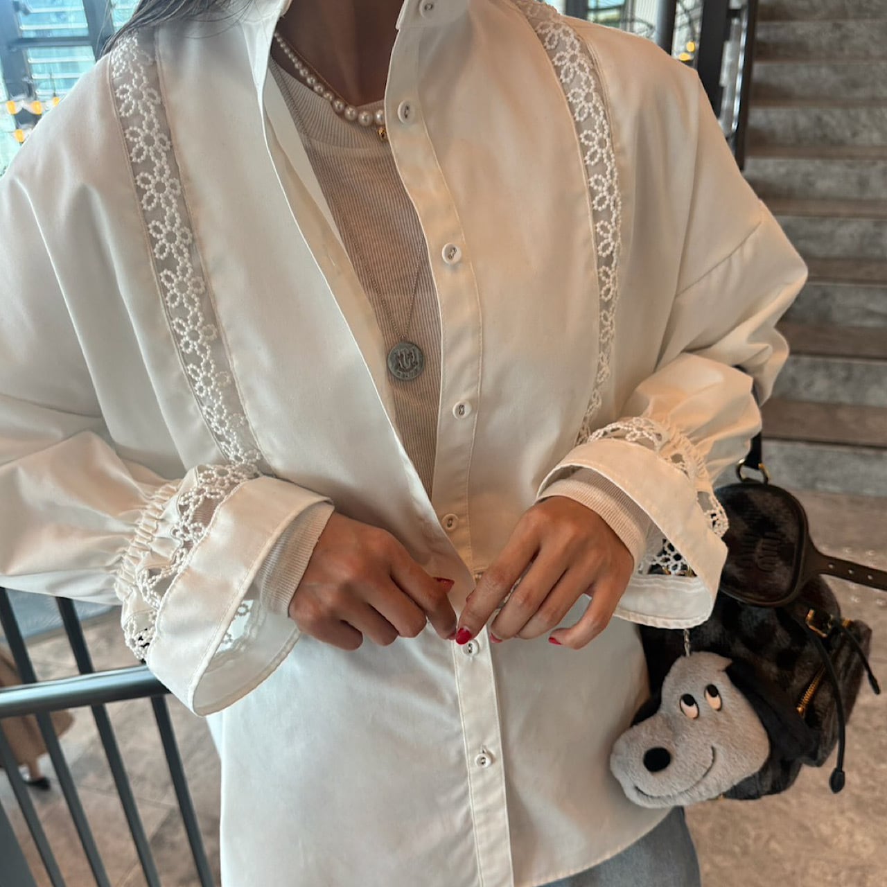 長めの袖丈は袖口でくしゅっとなるデザイン。