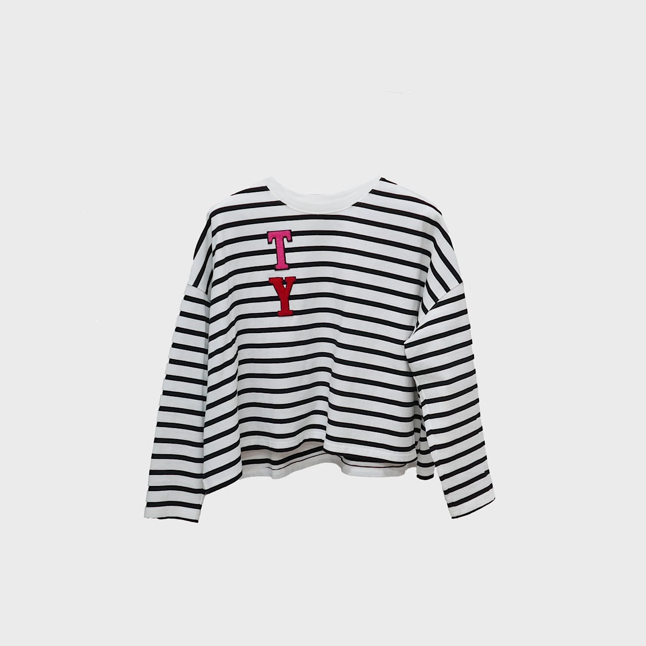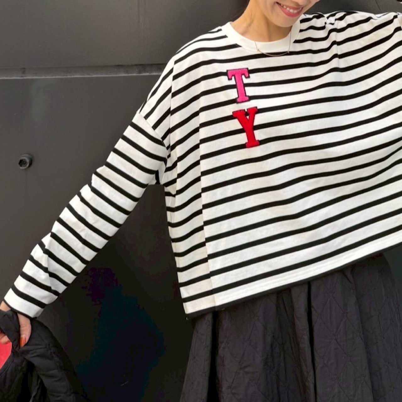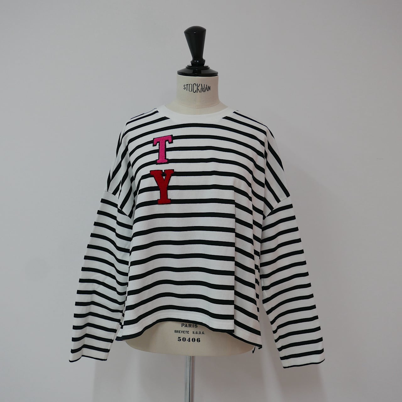 イニシャルワッペンオーバーカットソー(ボーダー)