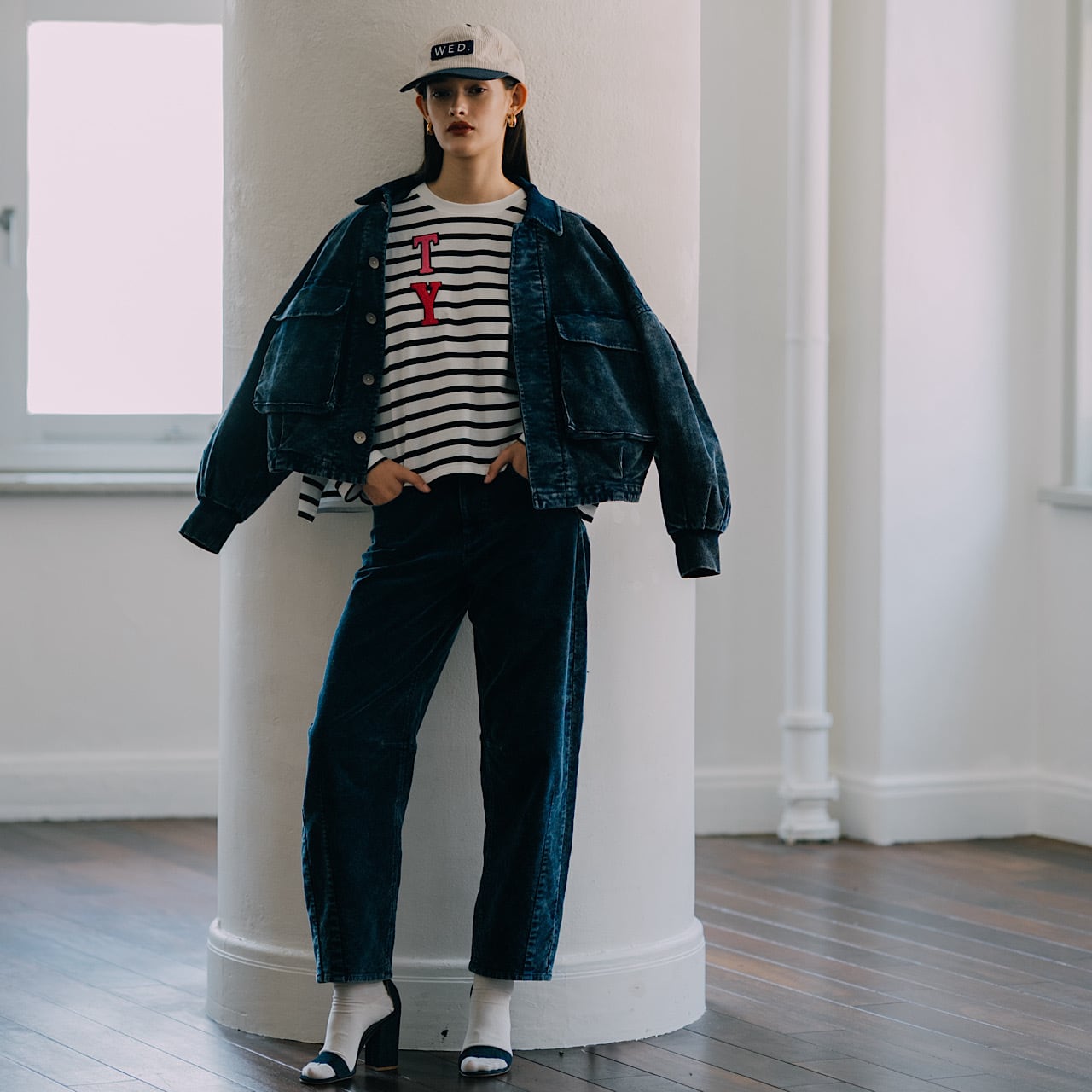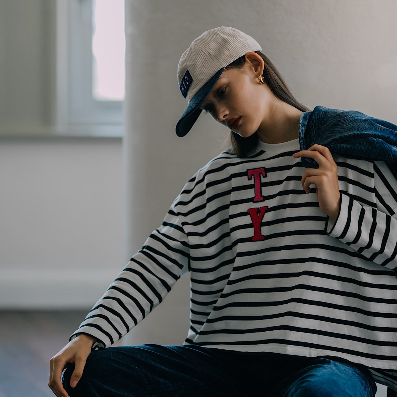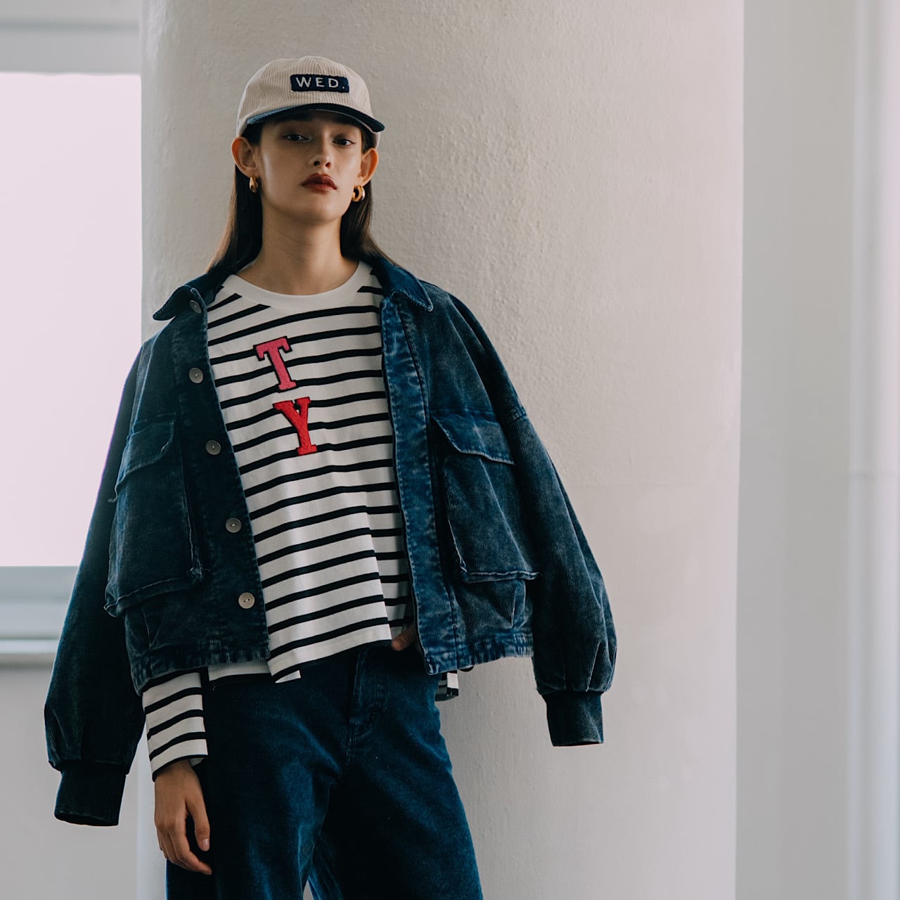 イニシャルワッペンオーバーカットソー(ボーダー)