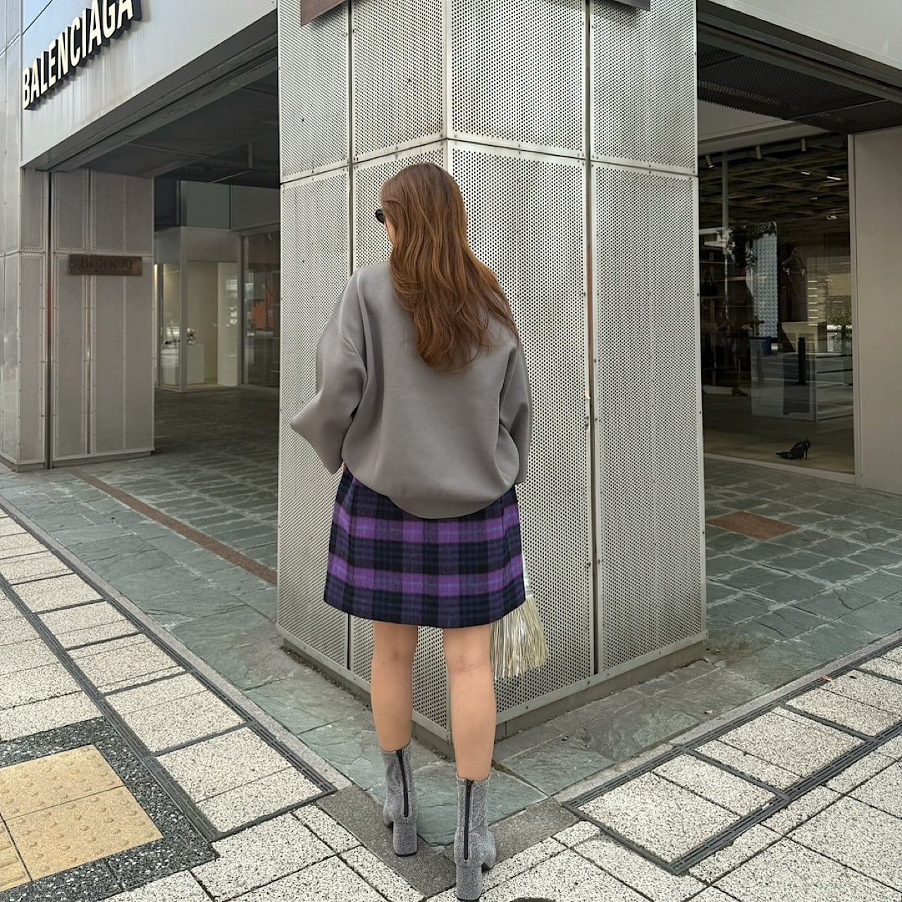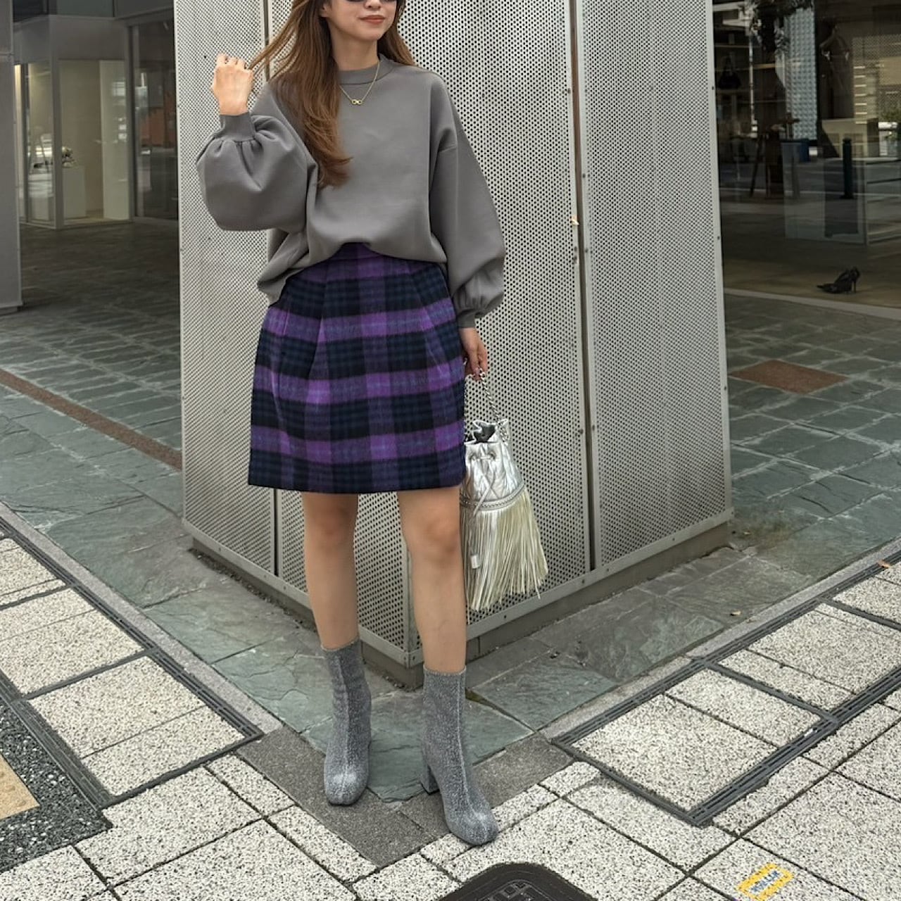 暖かく肌触りも滑らかなアルパカの素材も入った生地のスカート。品のある立体的なコクーンシルエットがスタイルアップも目指してくれます。