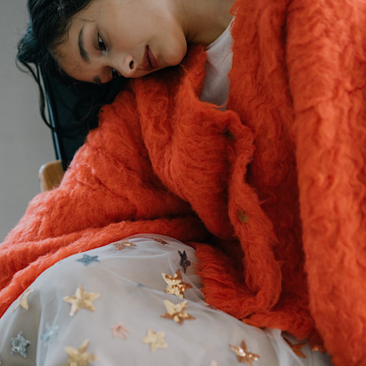 軽量で柔らかい手触りが特徴のオーバーシルエットなカーディガン。