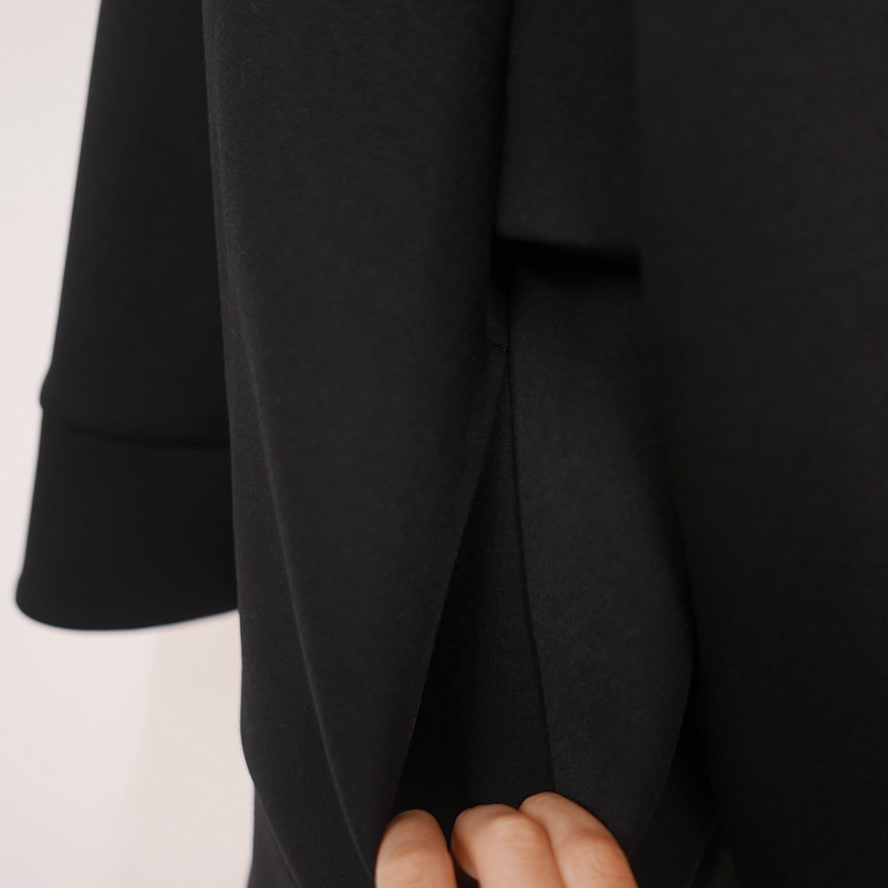 シンプルなデザインの中にもジッパーにリボンをつけたり前後の長さに変化をつけてスタイルアップを実現したりとこだわりをたくさん詰め込んだ一枚。