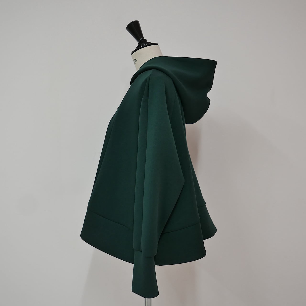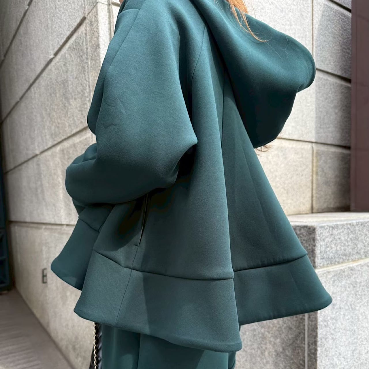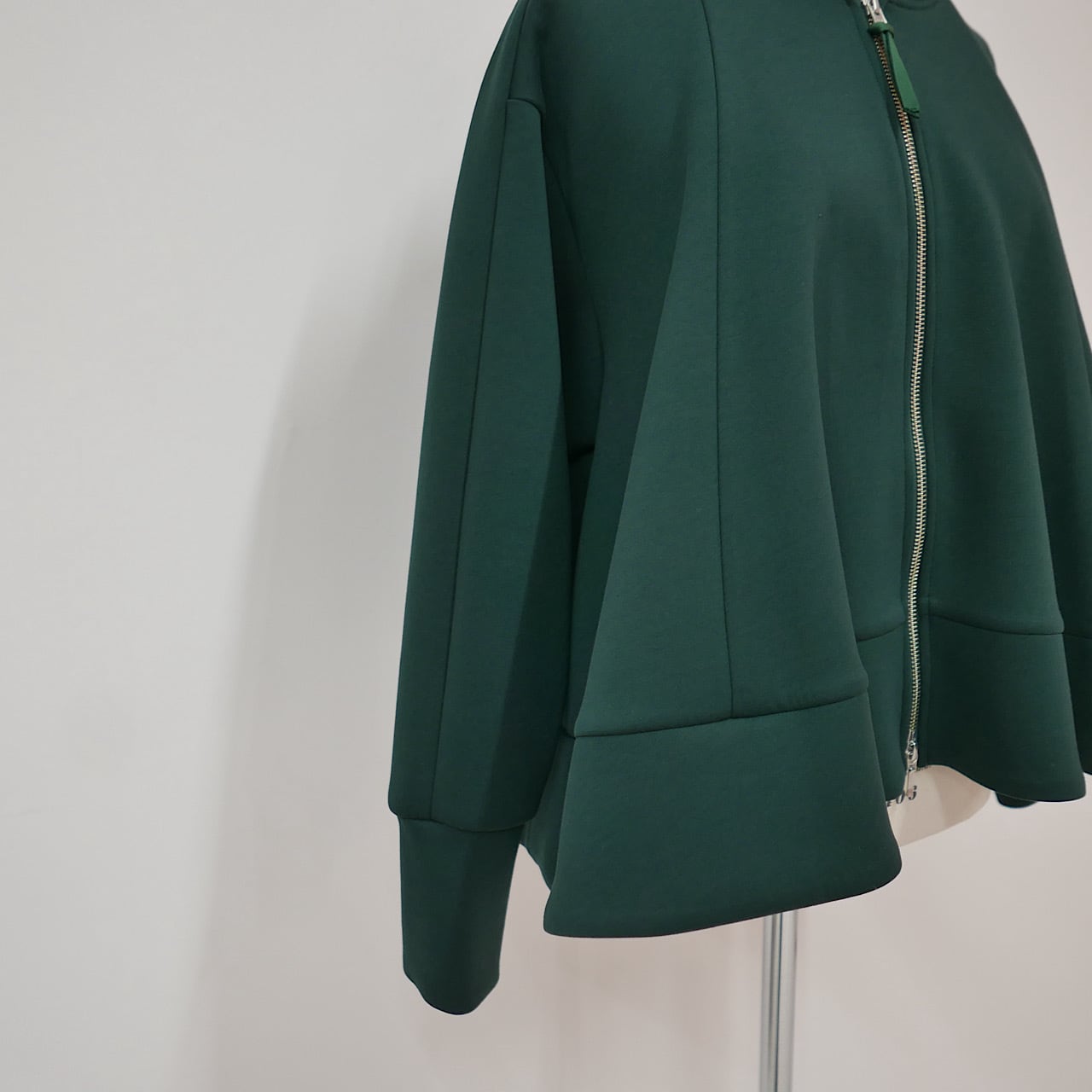 ボンディング生地のペプラムシルエットのパーカー。