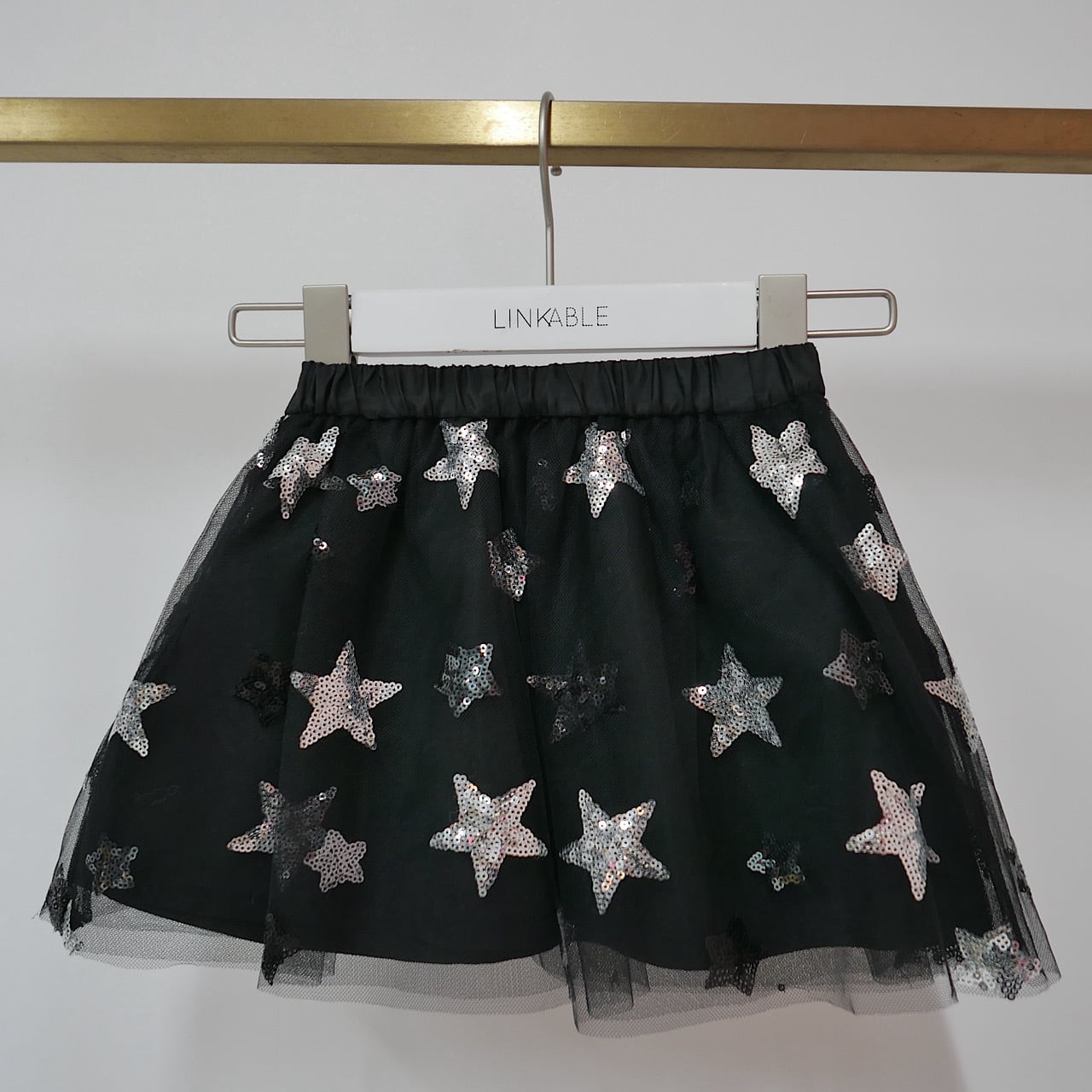 繊細で華やかなスパンコールの星のチュール生地を使用したキッズスカート。