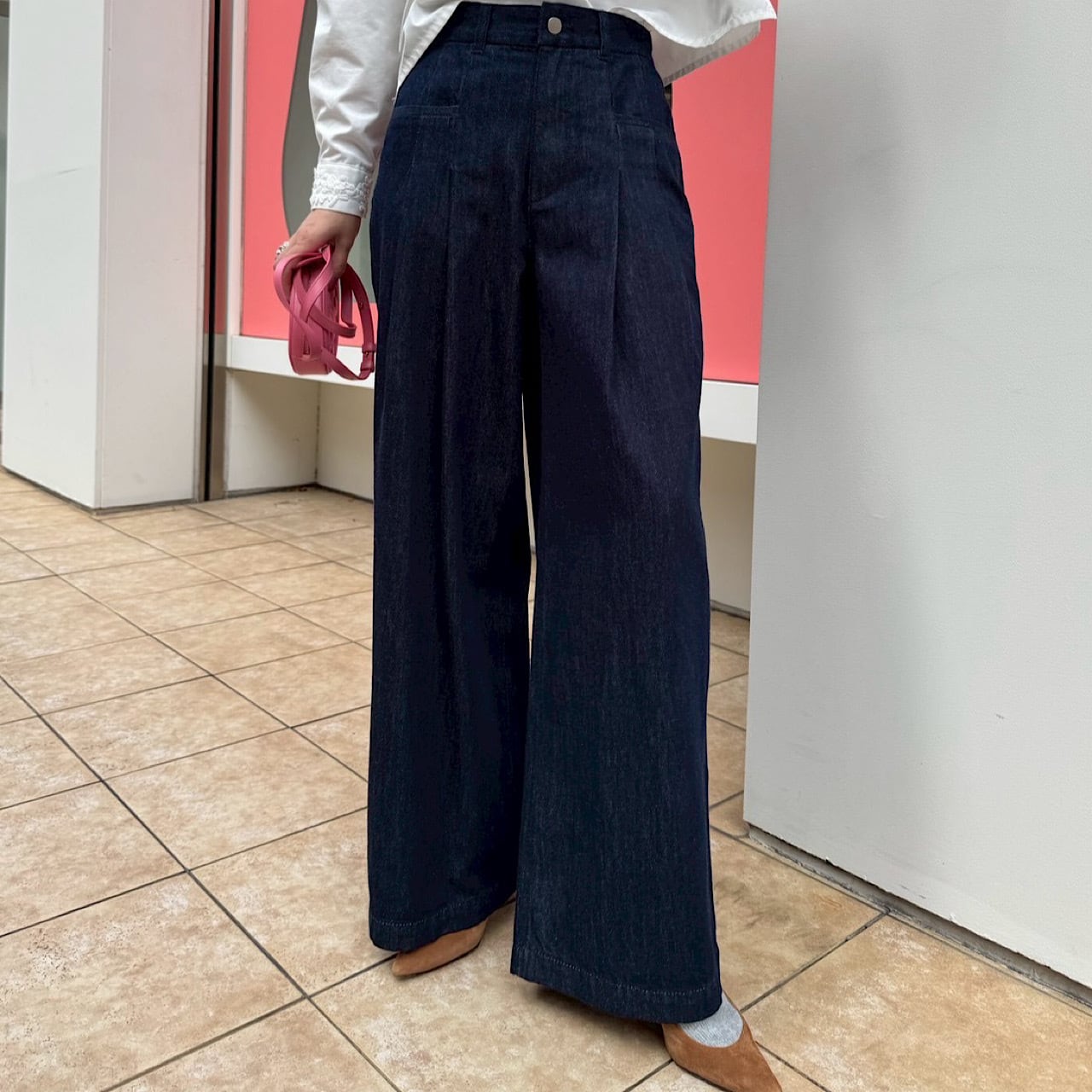タックを施すことにより美しい立体的なワイドシルエットに仕上げたパンツ。