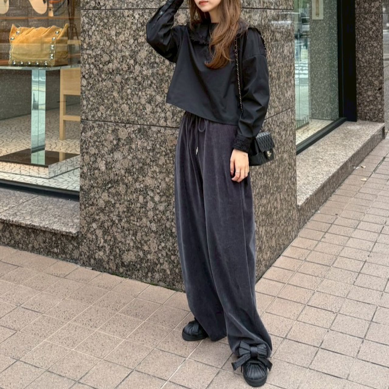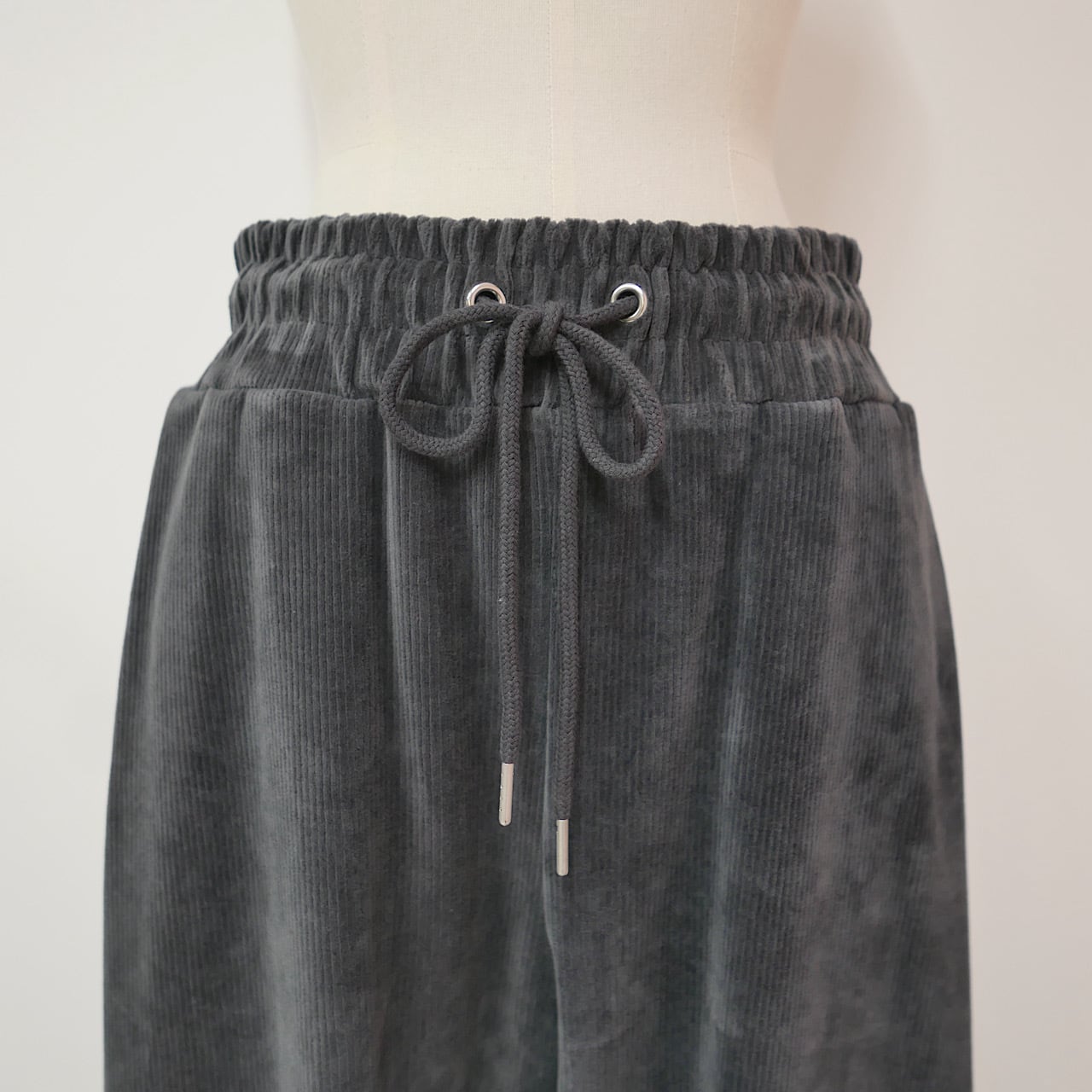 ストレスフリーで着用できる太めの総ゴムの肌触りの良いコーデュロイパンツ。