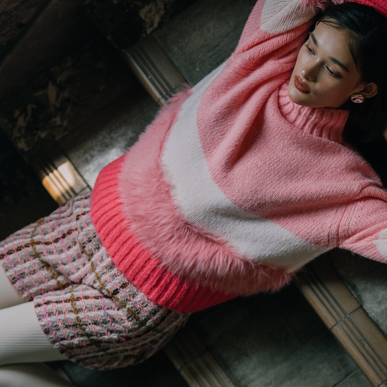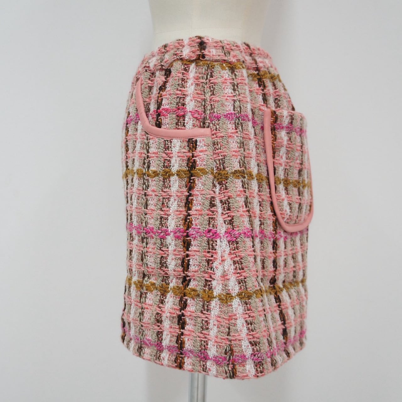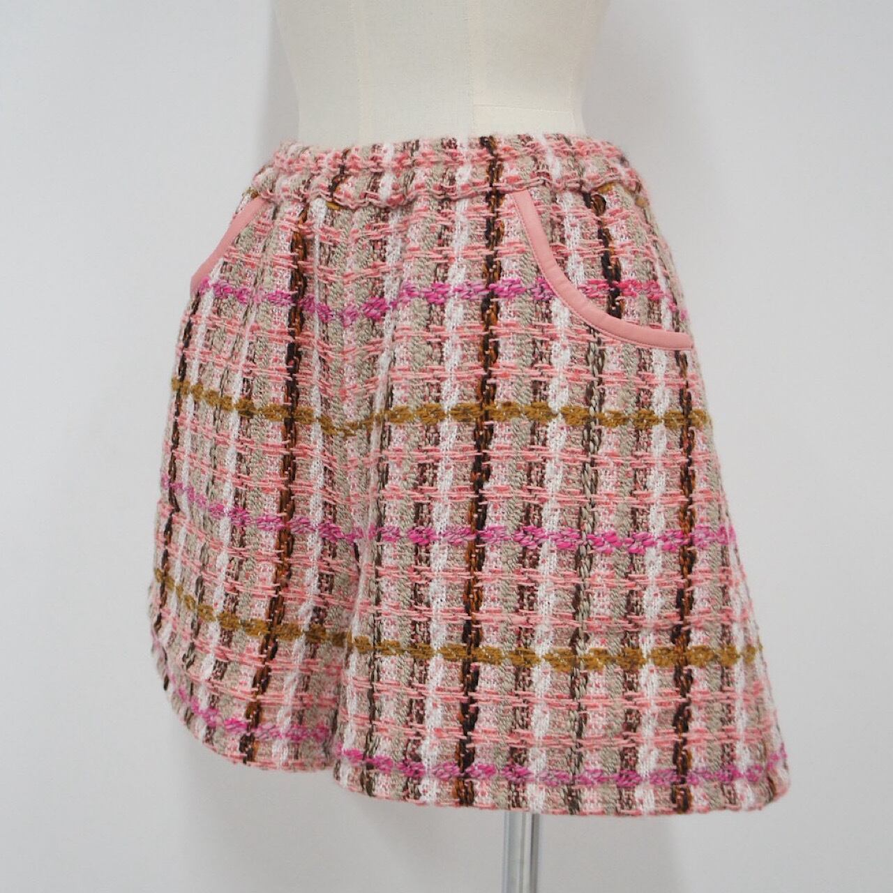 厚手で高級感のあるミックスツイードを使用したショートパンツ。ポケット部分にフェイクレザーのパイピングが秋冬らしさをUP。