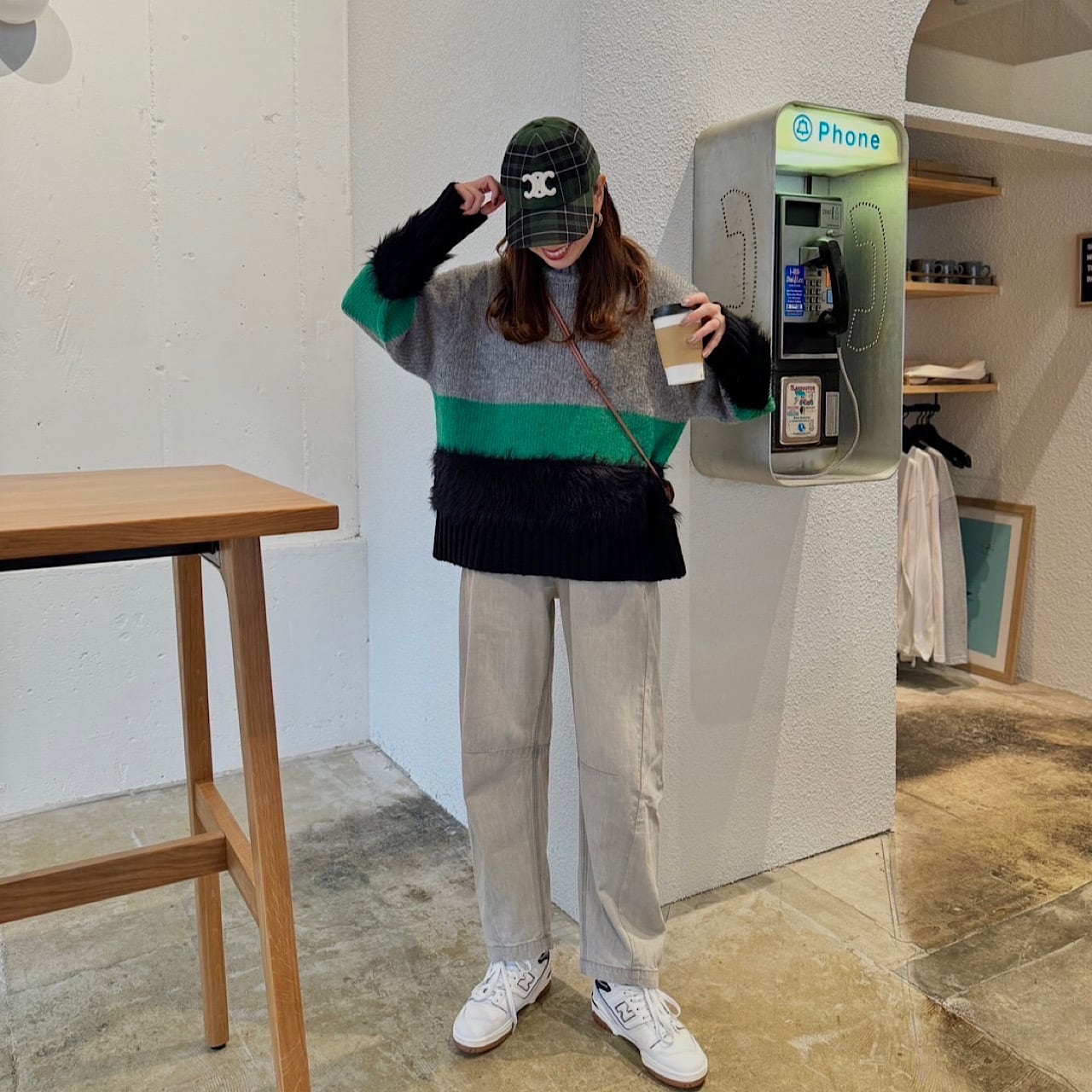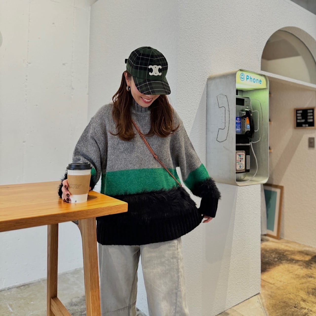 絶妙な配色のトライカラーが目を惹き、1枚でスタイリングが完成する。