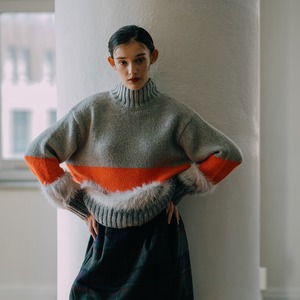 長めの袖にハイネックで暖かい。明るい3色展開で、気分まで華やぐ冬のコーデを是非お楽しみください。