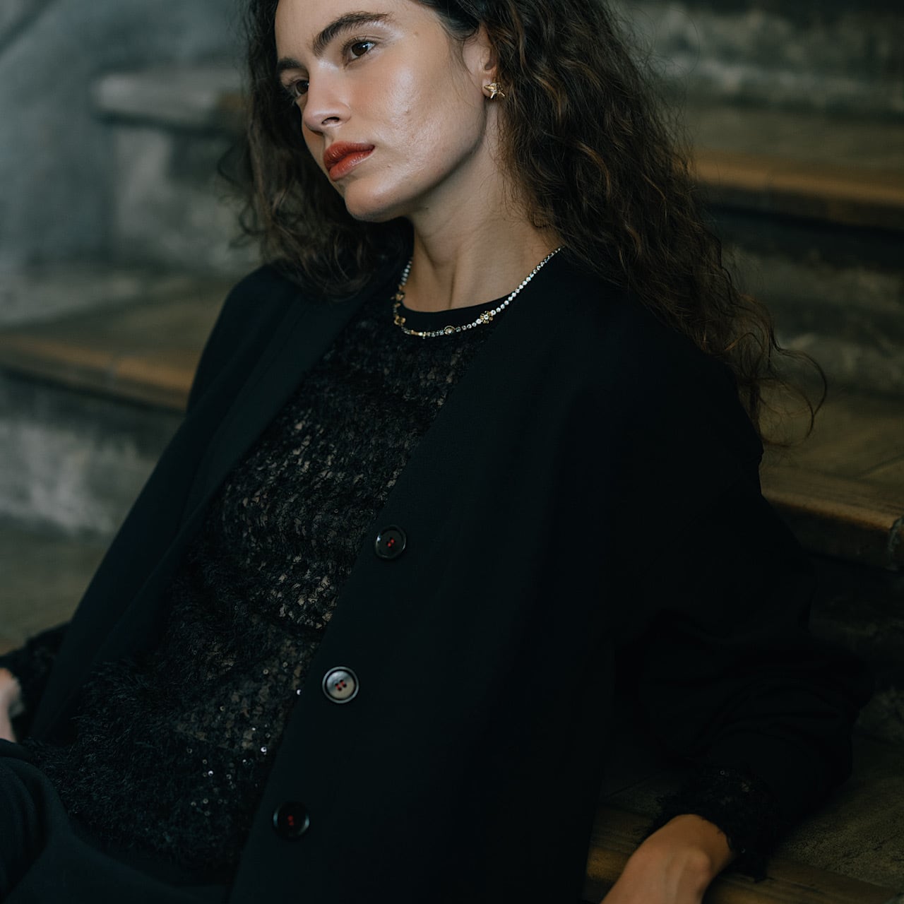 シルエットがとても綺麗なカーディガン。ありそうでなかったデザインのカーディガンはデイリーにもフォーマルにも使える。肌触りも良く暖かく機能面も優れている。