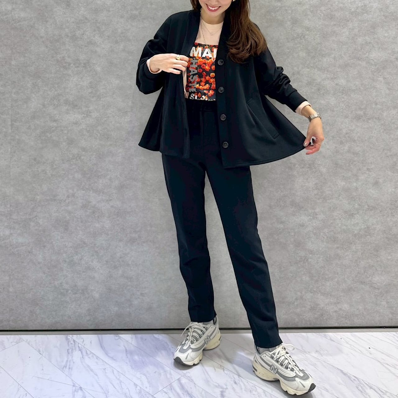 テーパードシルエットの美脚に見せてくれるパンツ。ウエスト総ゴムで暖かく、履き心地も◎。カーディガンとのセットアップでも単体使いでも使いやすい。