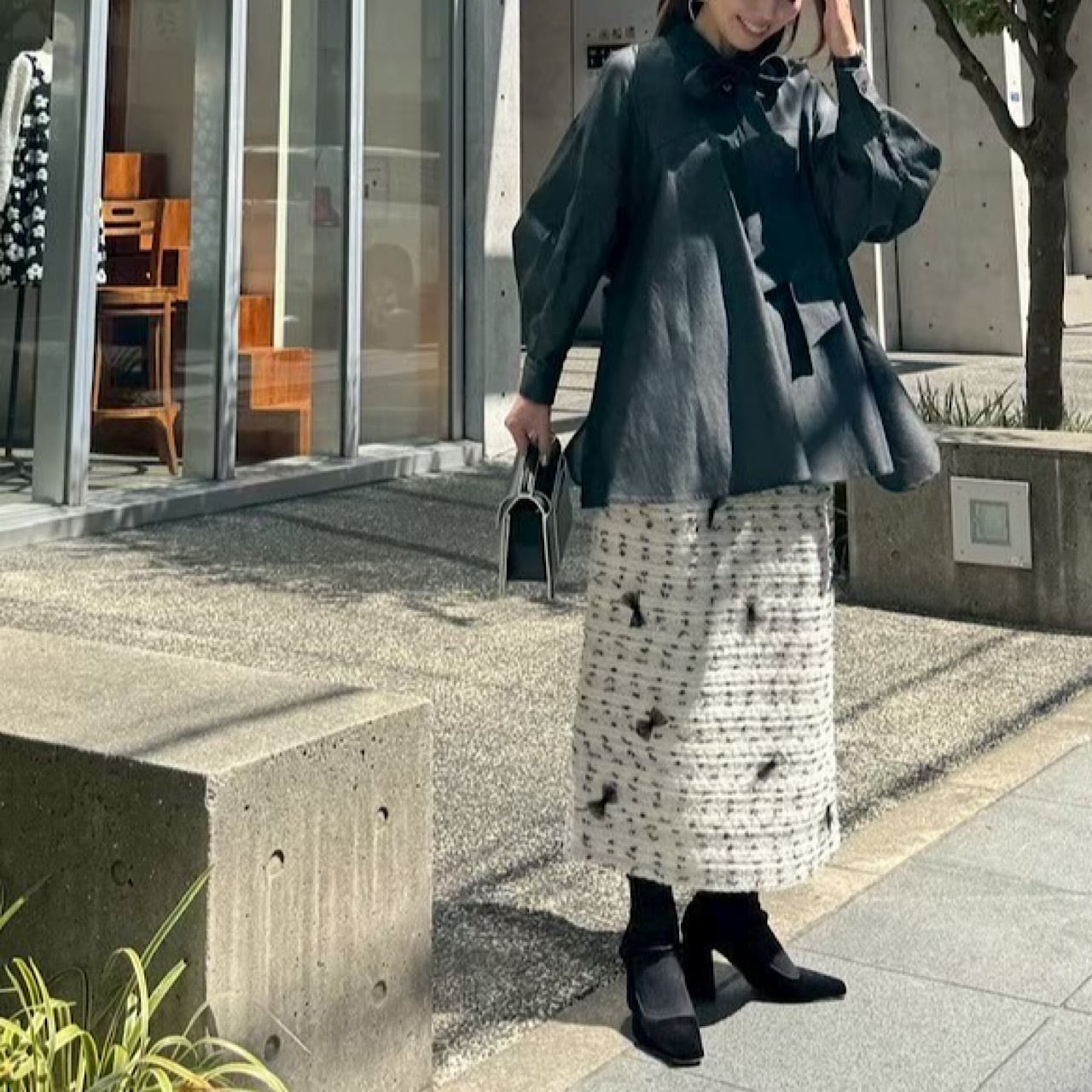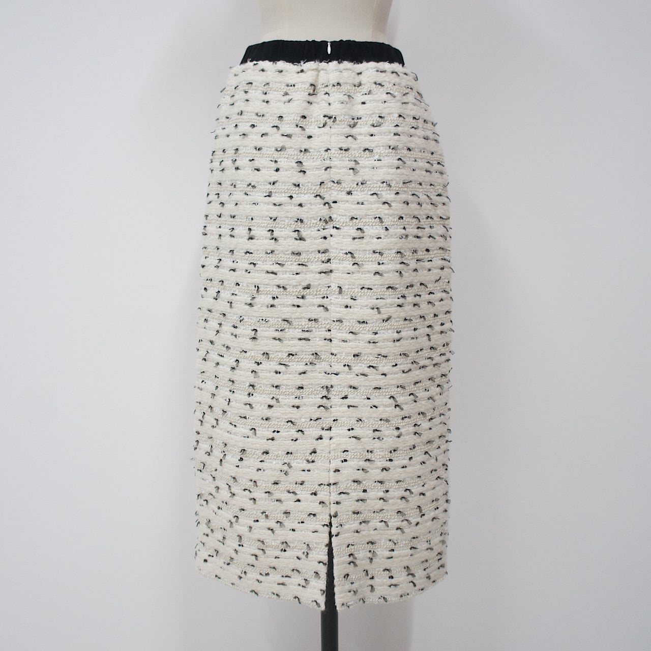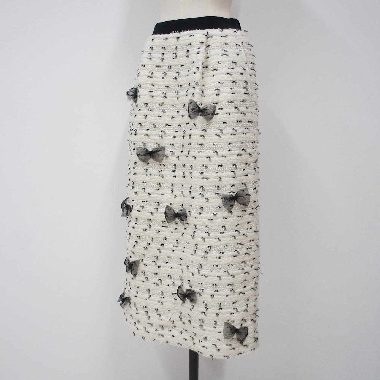 ツイード素材にチュールリボンがドッキングされた高級感の出る暖かく上品なスカート。
