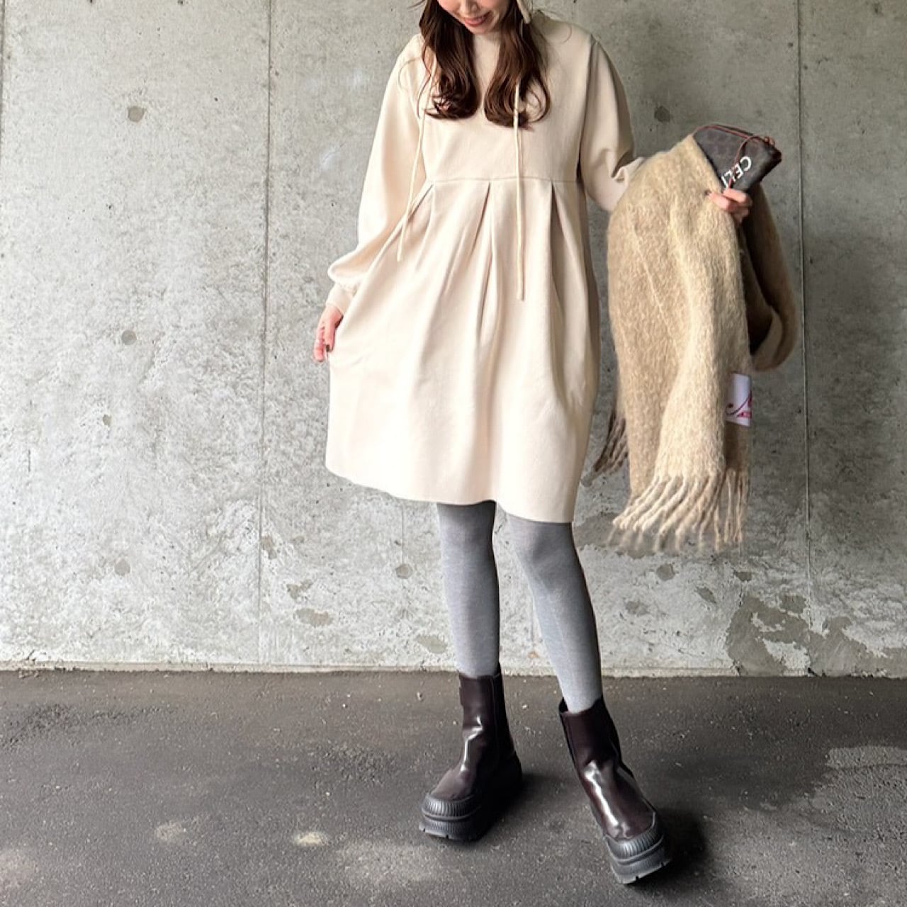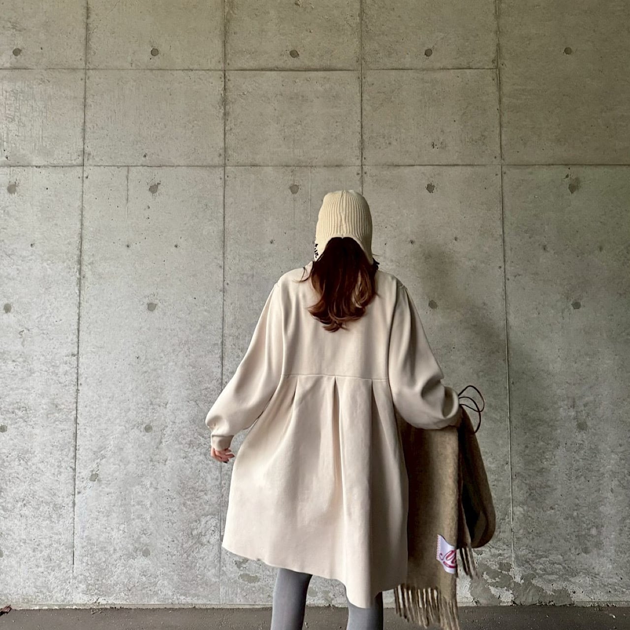 フォーマルにもカジュアルにも幅広く活用できる程よい長さのコクーンシルエットのワンピース。