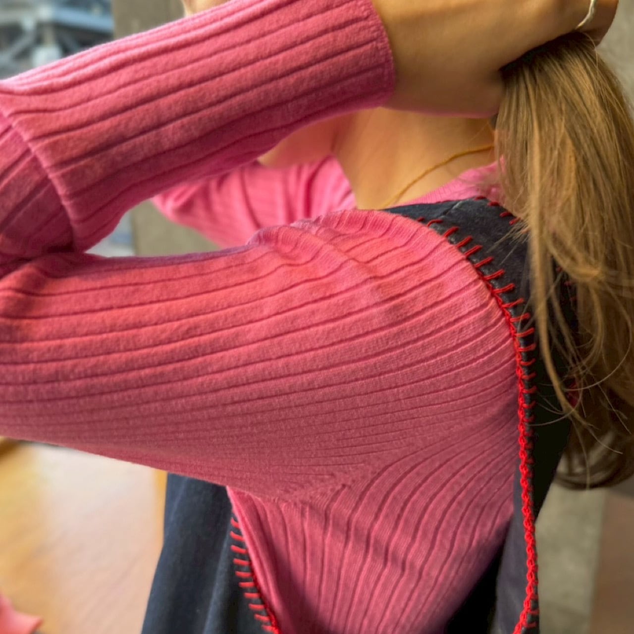 シンプルで細めリブがポイントの薄手ニット。首周りが見えすぎないクルーネックで使いやすい。春らしいカラーでインナーとしてもトップスとしてもコーディネートの幅が広がる一枚。 ご自宅で手洗い可。 <素材> レーヨン 49% ポリエステル 28% ナイロン 23% <サイズ>(単位/㎝) 着丈:59 身幅:38 袖丈:56 ※撮影状況、スクリーンによって色味が違って見える場合がございます。