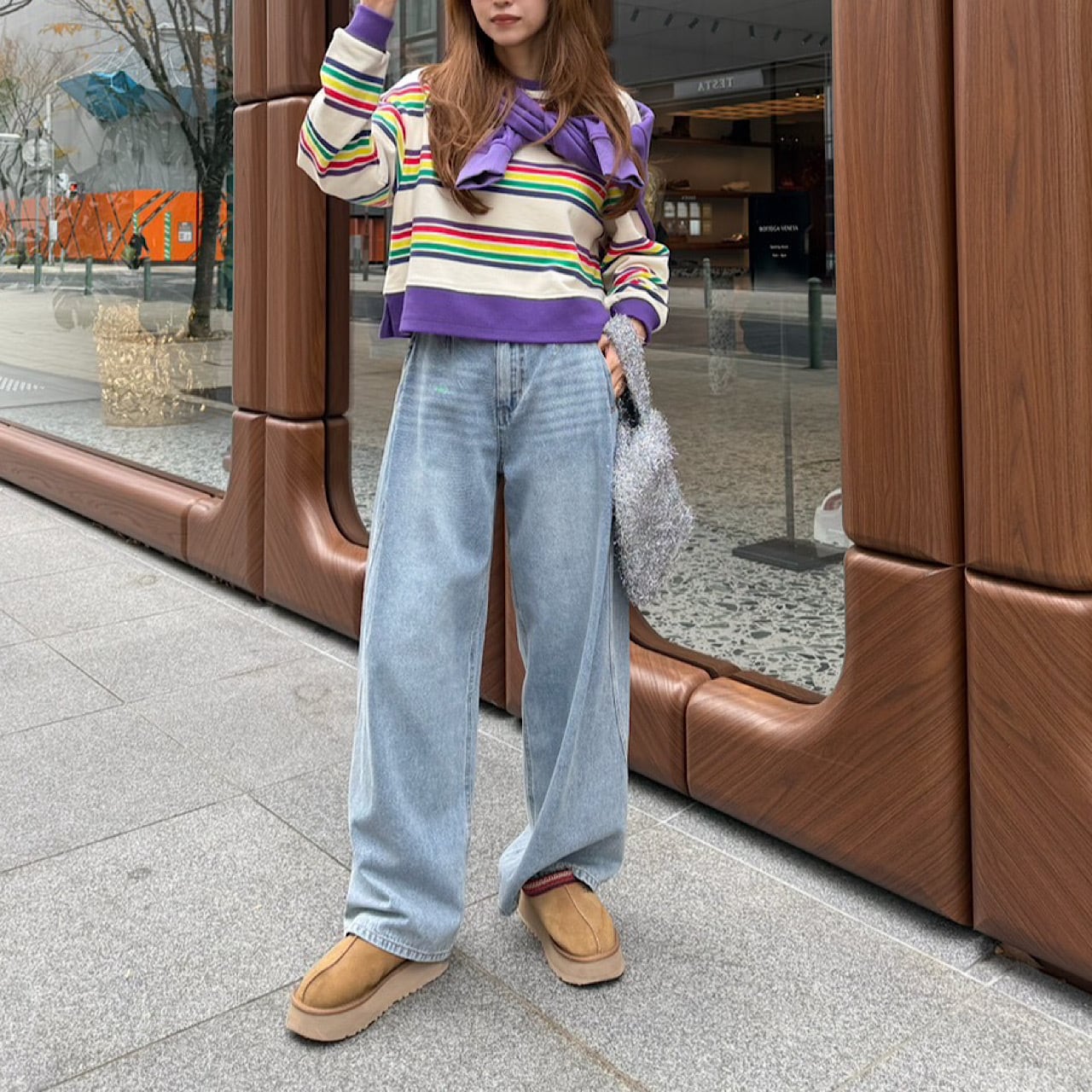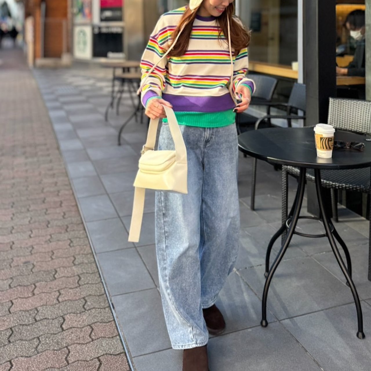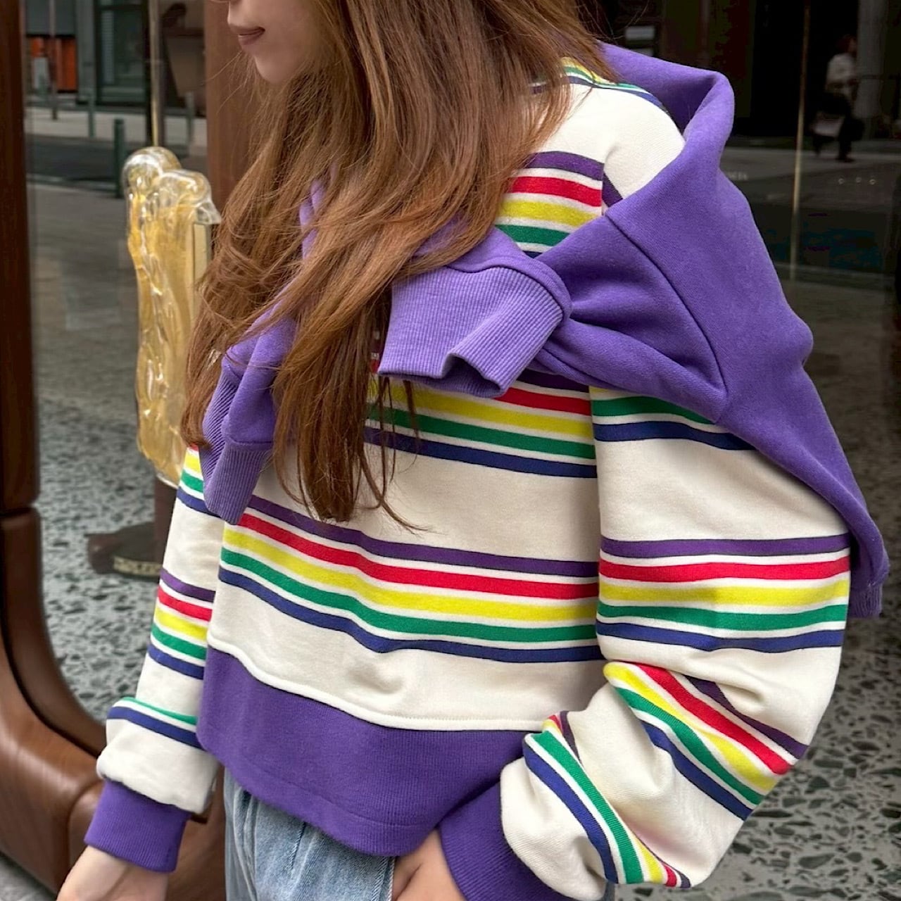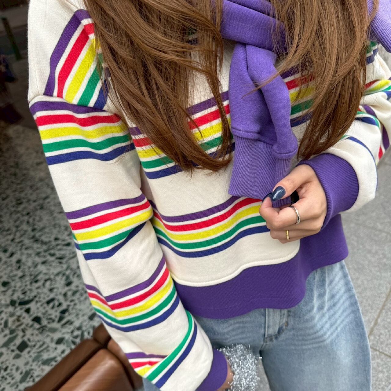 レインボー調で気分の上がる綿100%のスウェット生地を使用したトップス。 肩落ちしたデザインやボトムスを選ばない短めな丈などシンプルなシルエットの中にもこだわりをつめこんだ一枚。 ご自宅での手洗い可。 <素材> 表地 綿100% <サイズ>(単位/㎝) 着丈:46 肩幅:56 袖丈:44+5 袖口:9 バスト: 108 ※撮影状況、スクリーンによって色味が違って見える場合がございます。