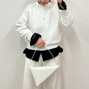 サイドには深めのラウンドカットを入れ、肩位置を落としたオーバーサイズなシルエットなので、幅広い体型の方におすすめ。