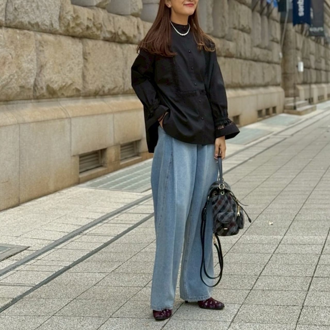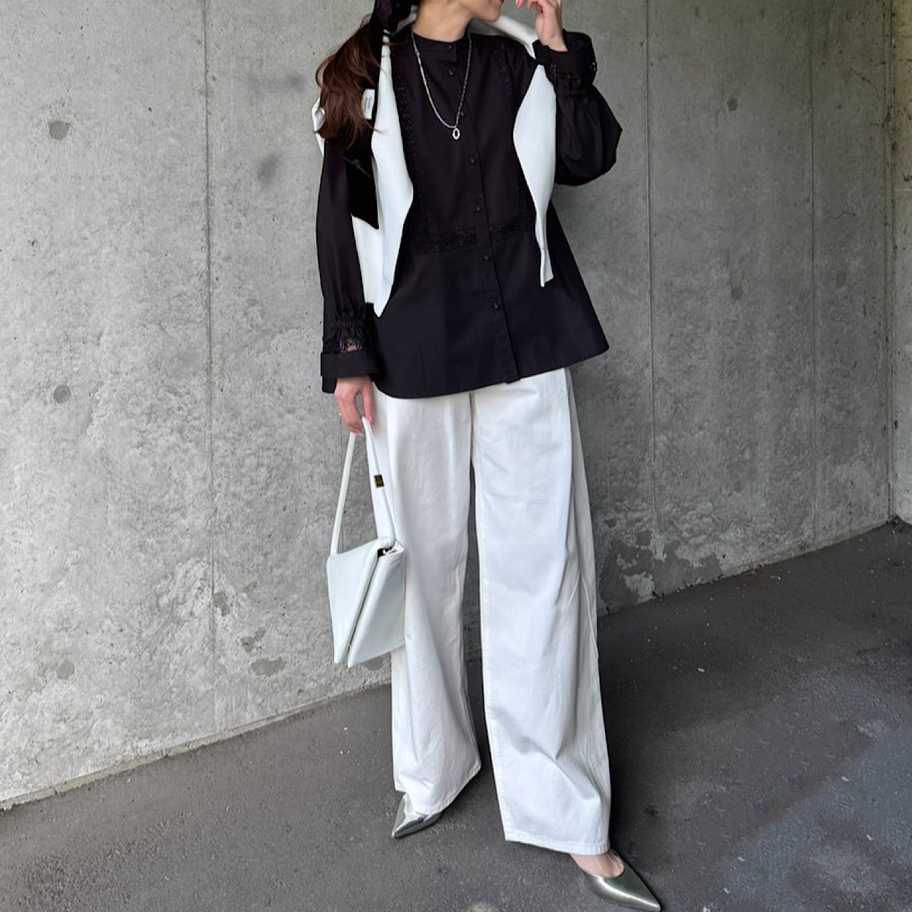 ギャザーカフス袖もポイントで上品で女性らしさを表現。