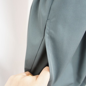 ポリエステル100%素材でしわになりにくく、デイリー使いにも扱いやすい一着。