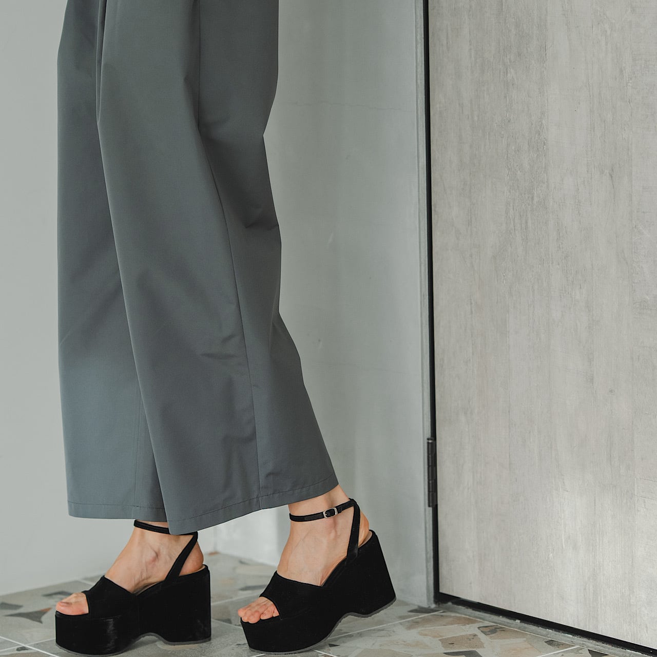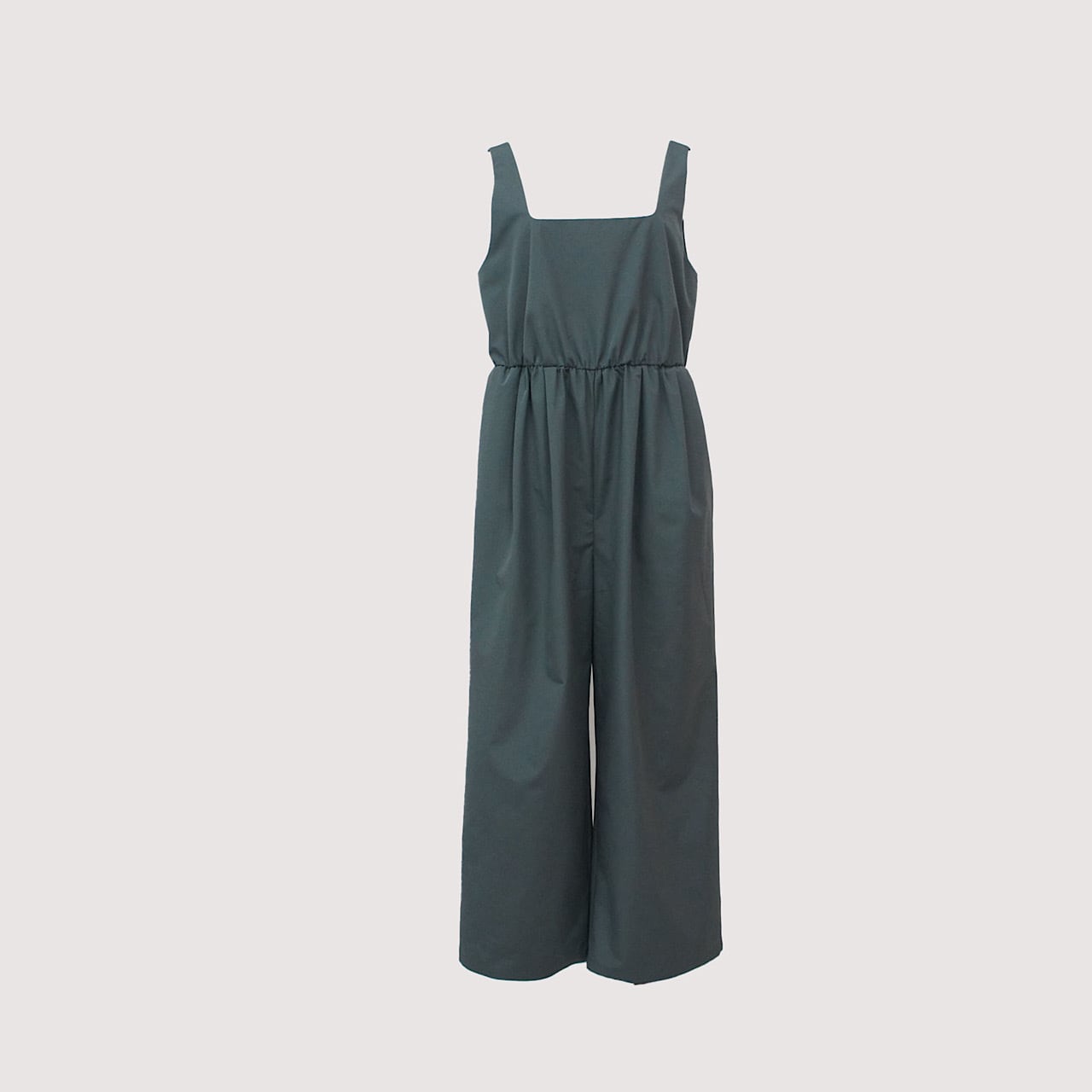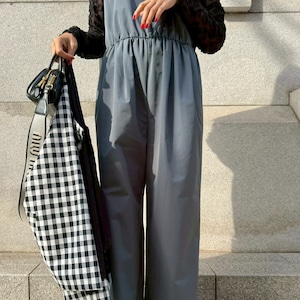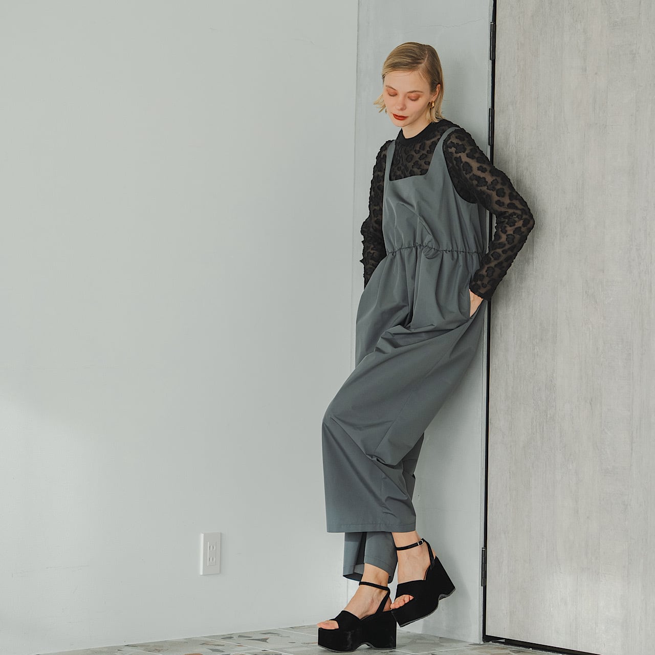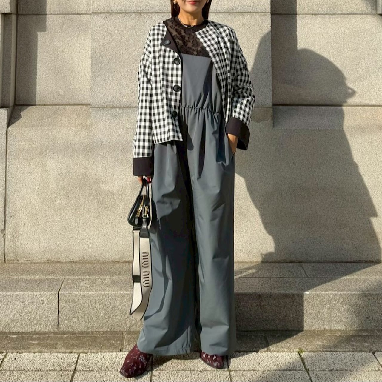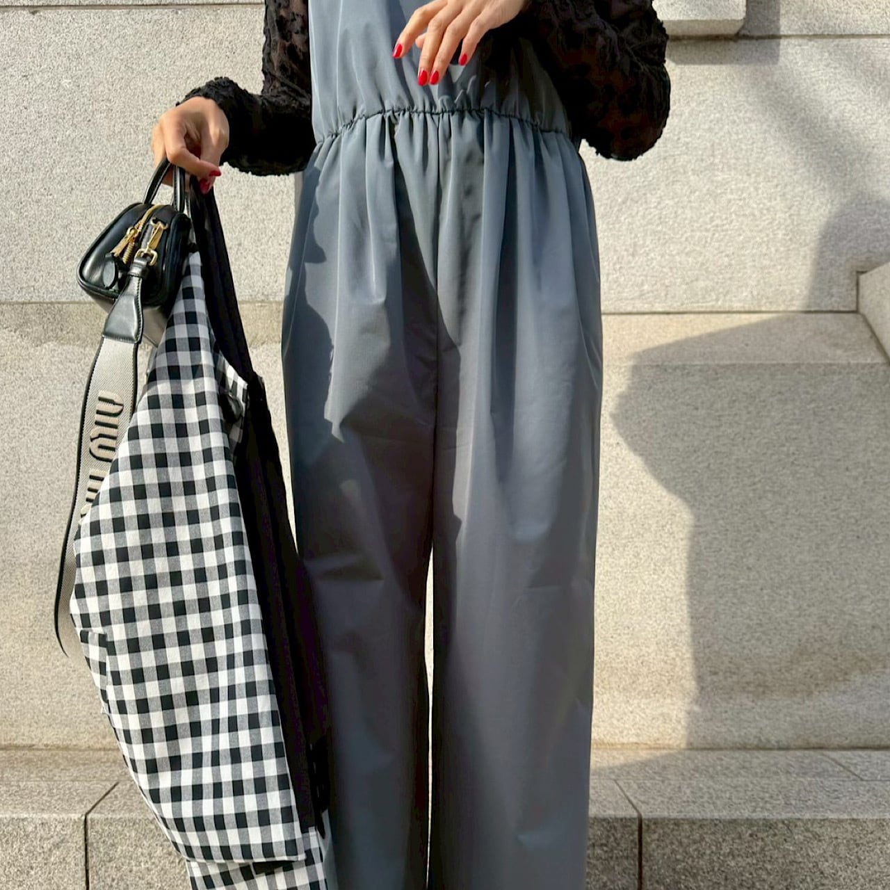 軽やかで上品な光沢感が魅力のタフタ生地サロペット。
