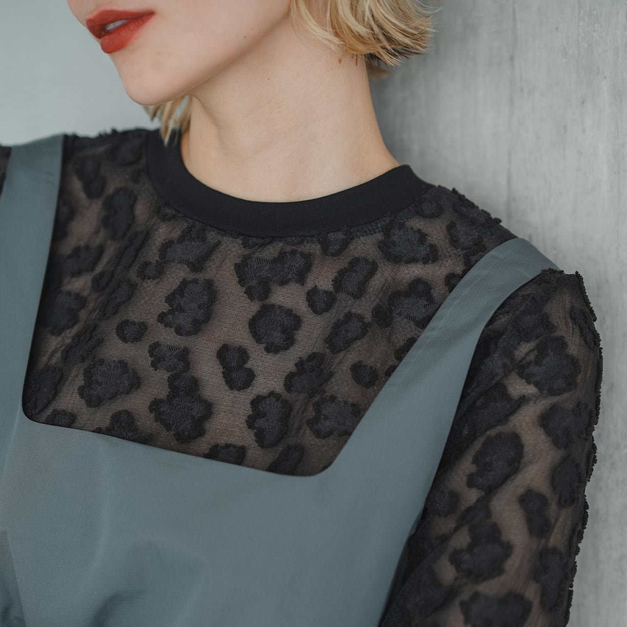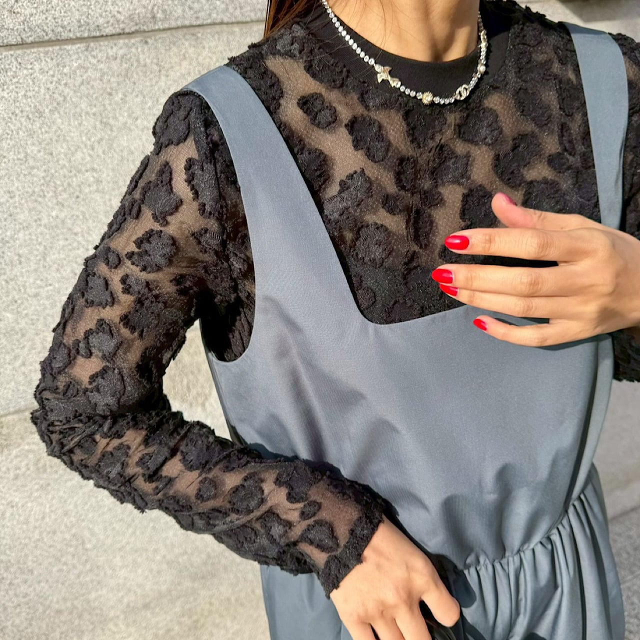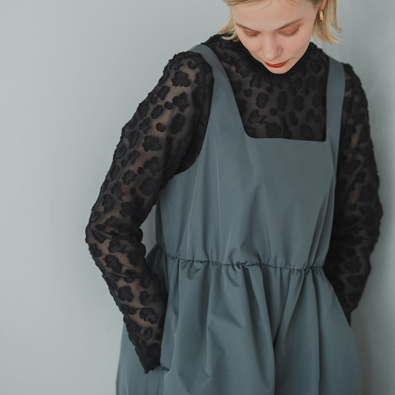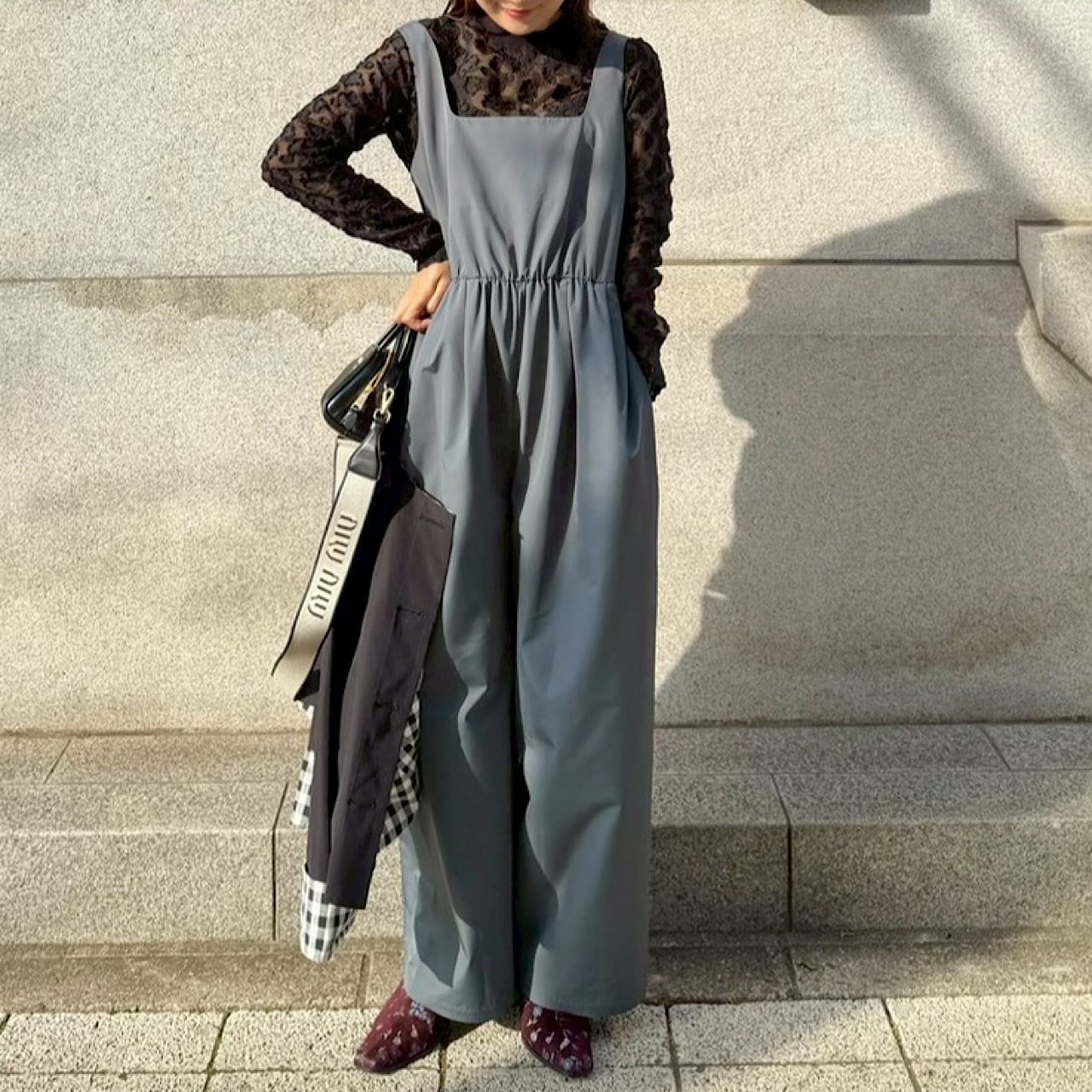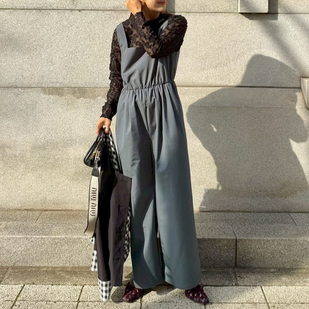 ブラウスやニットなどとレイヤードスタイルを楽しむのもおすすめ。