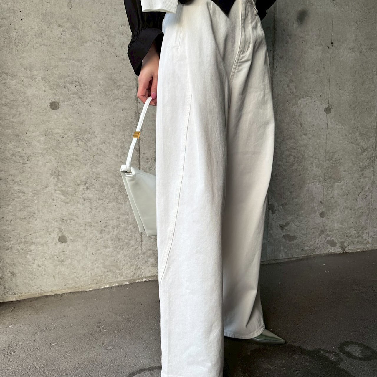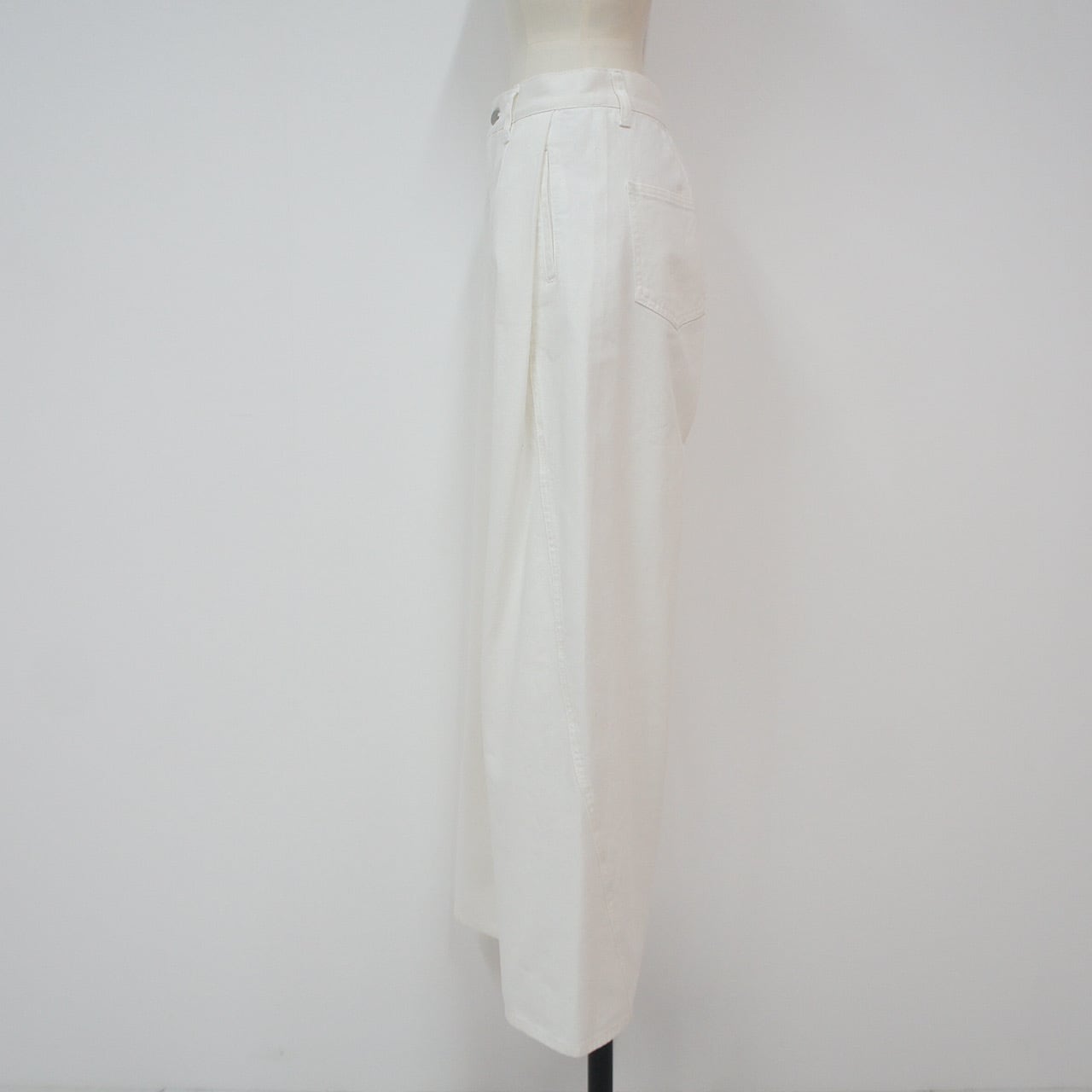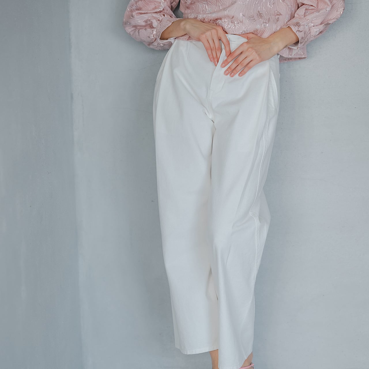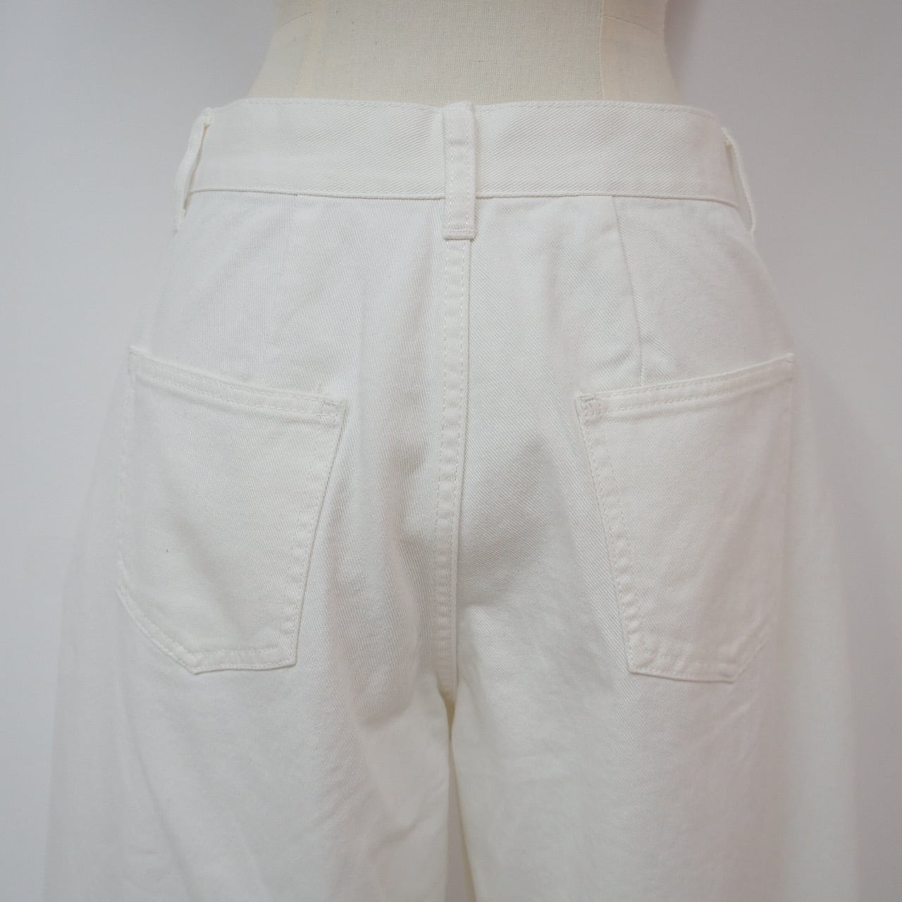 軽くてやわらかな履き心地のデニム。フロントにタックを入れることで、ゆるめのシルエットながら立体感があり、腰まわりや太ももをカバーし抜け感のある大人カジュアルスタイルを実現。