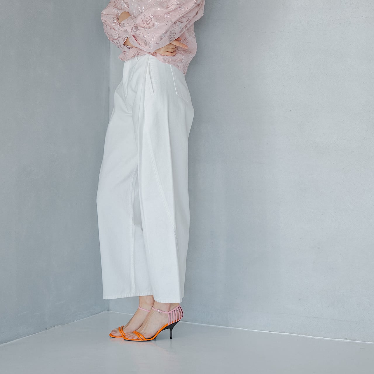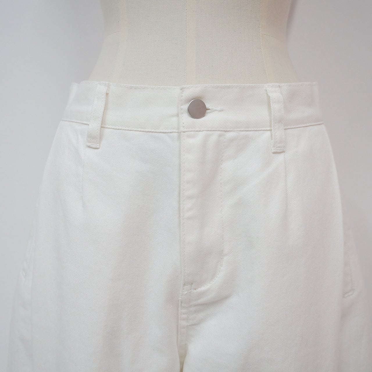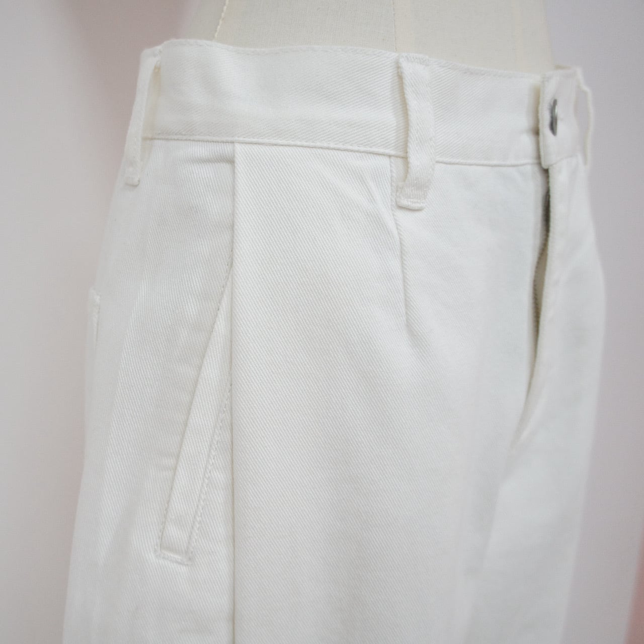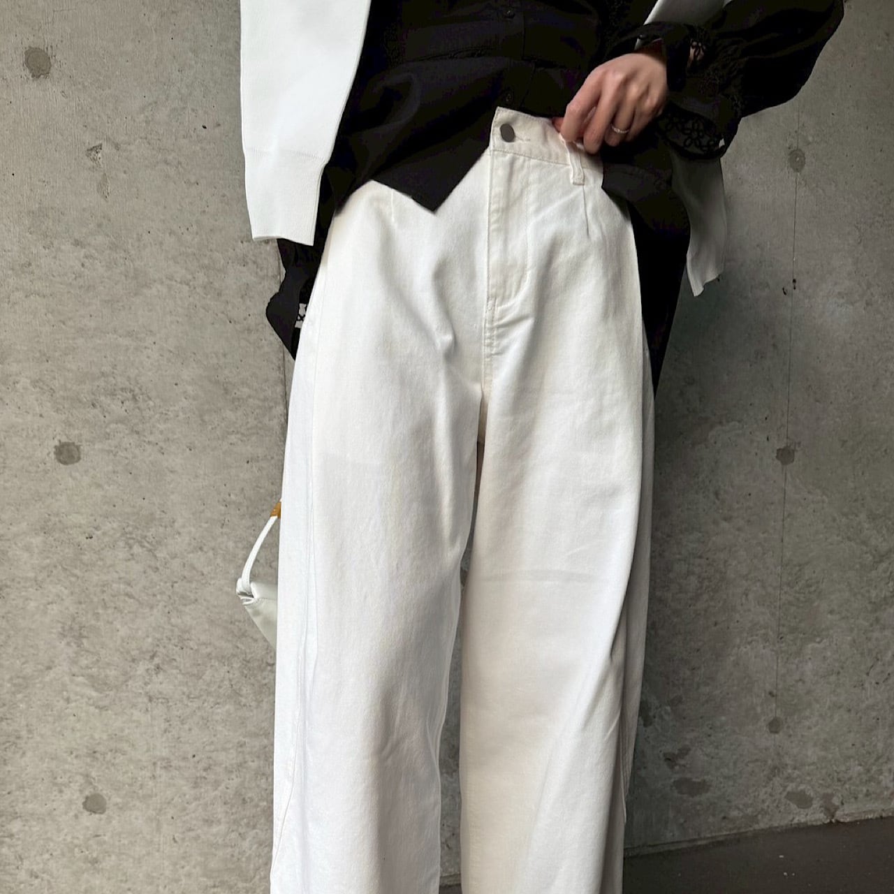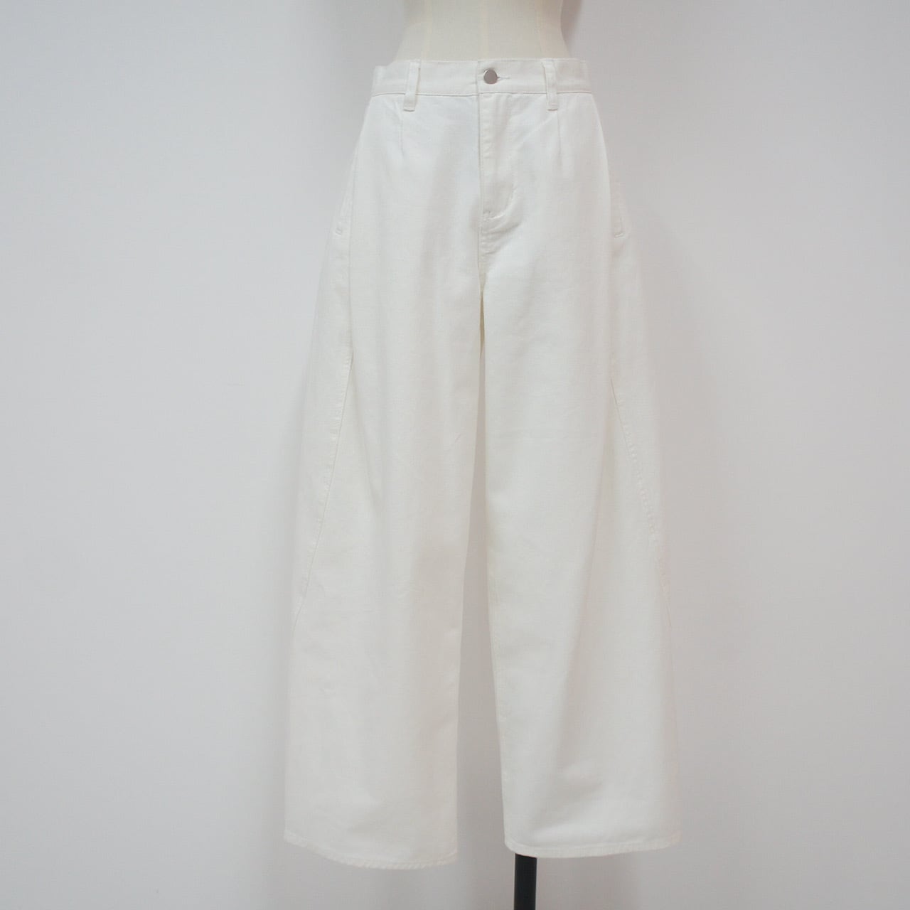 軽くてやわらかな履き心地のデニム。フロントにタックを入れることで、ゆるめのシルエットながら立体感があり、腰まわりや太ももをカバーし抜け感のある大人カジュアルスタイルを実現。