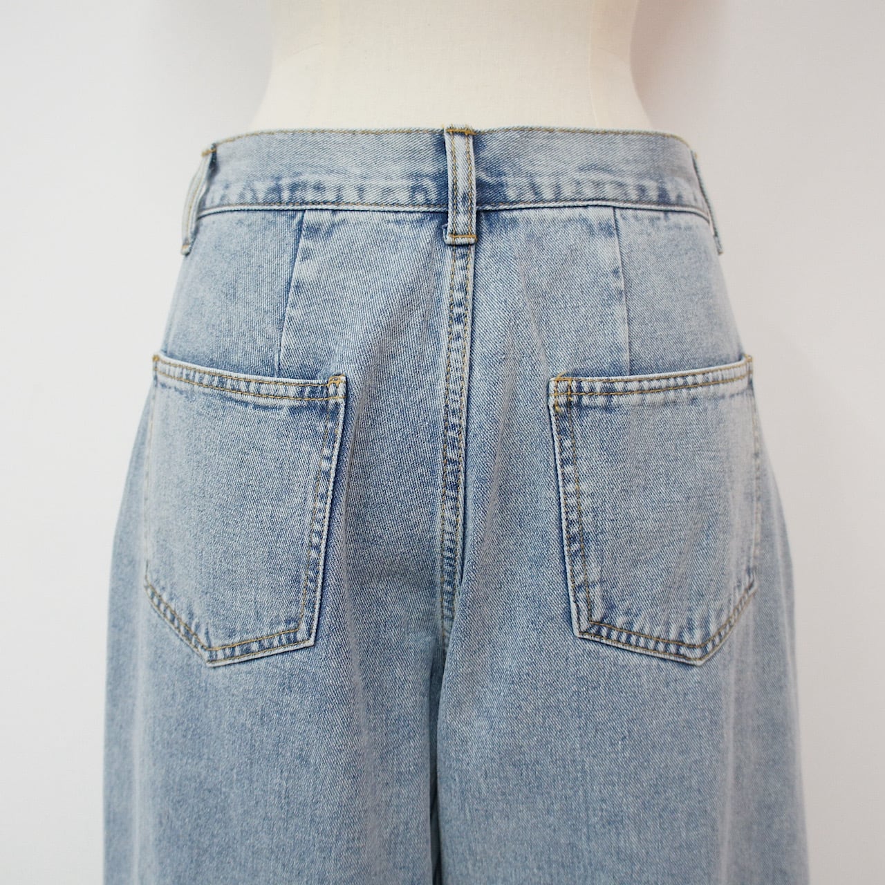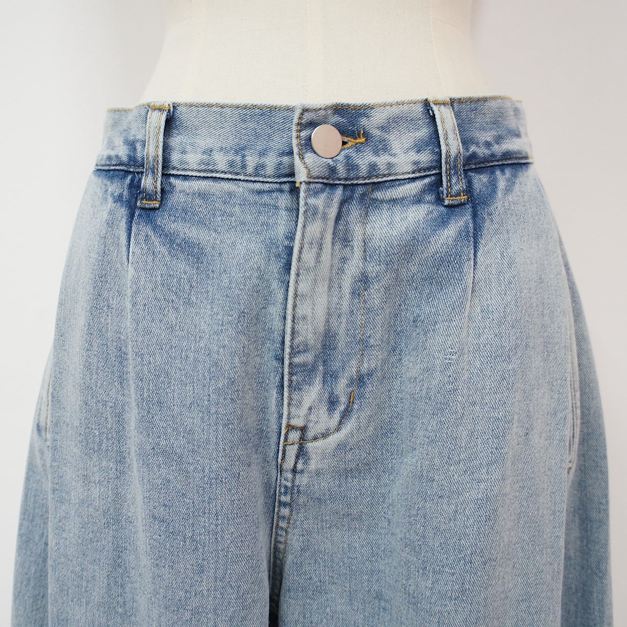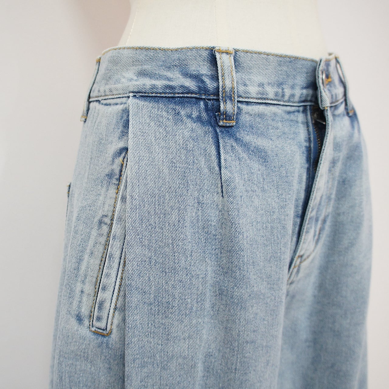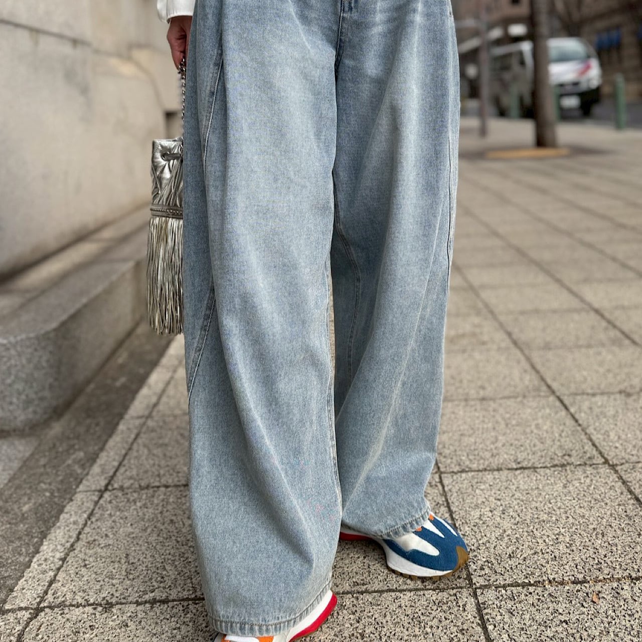 軽くてやわらかな履き心地のデニム。フロントにタックを入れることで、ゆるめのシルエットながら立体感があり、腰まわりや太ももをカバーし抜け感のある大人カジュアルスタイルを実現。