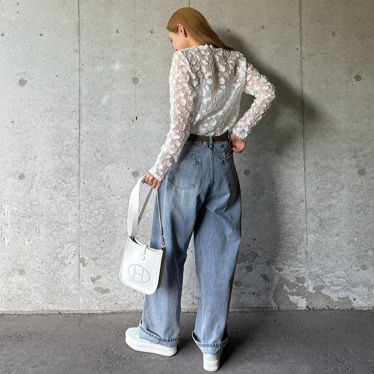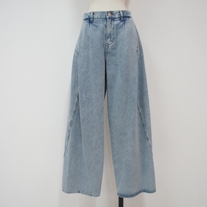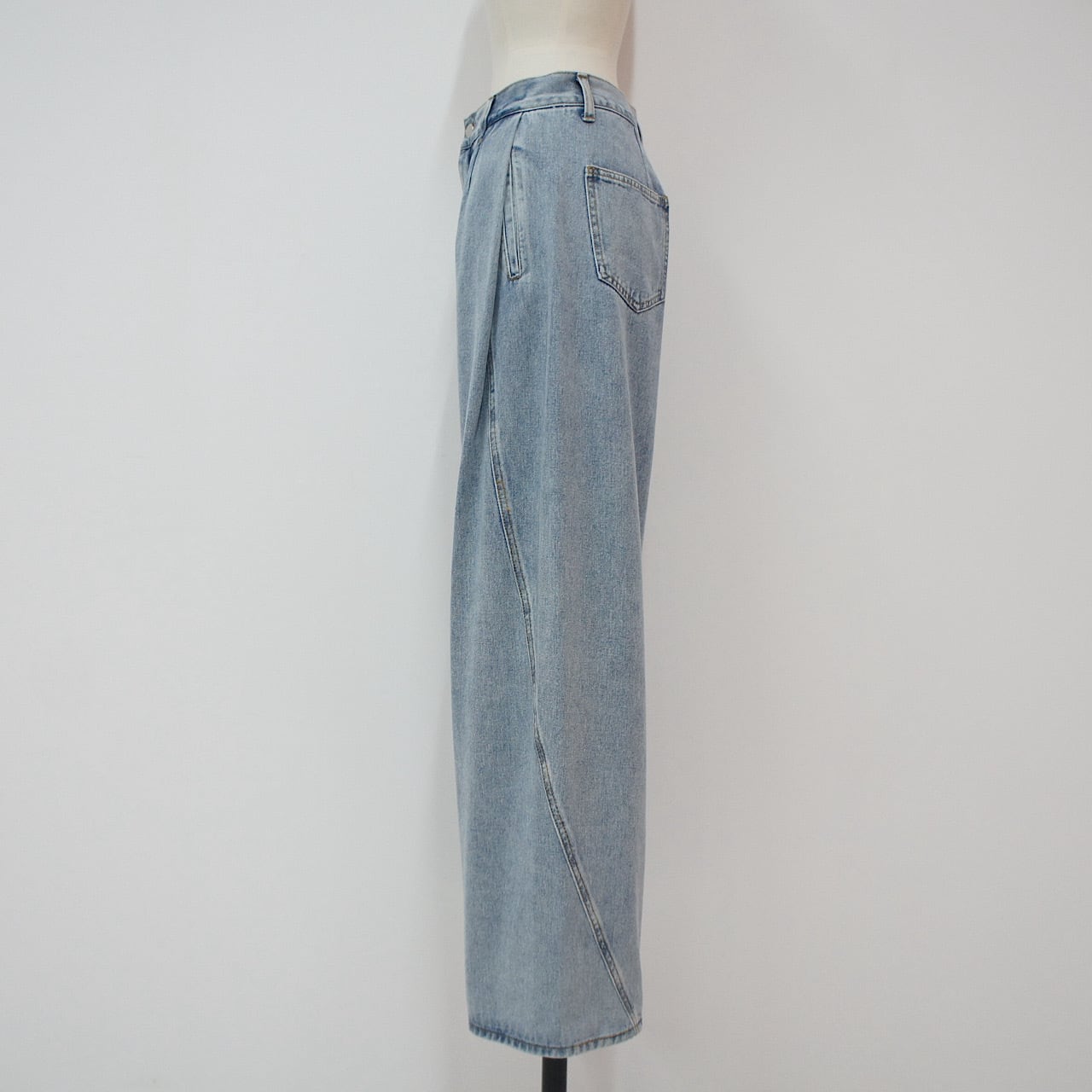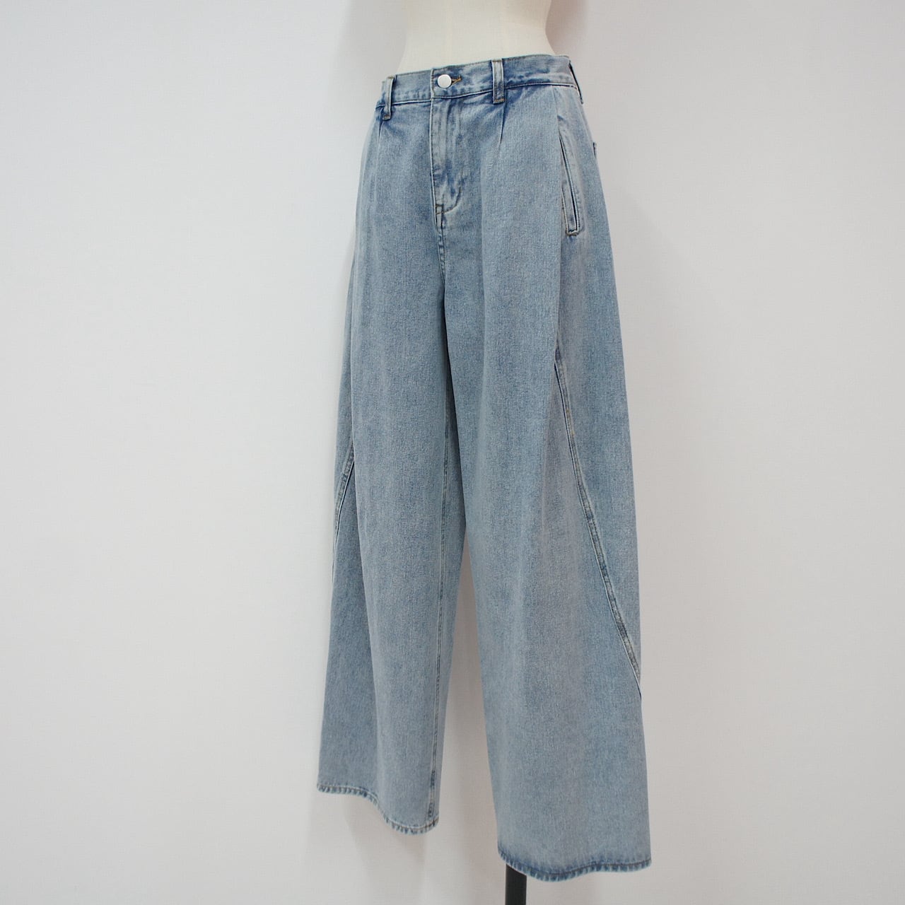 軽くてやわらかな履き心地のデニム。フロントにタックを入れることで、ゆるめのシルエットながら立体感があり、腰まわりや太ももをカバーし抜け感のある大人カジュアルスタイルを実現。