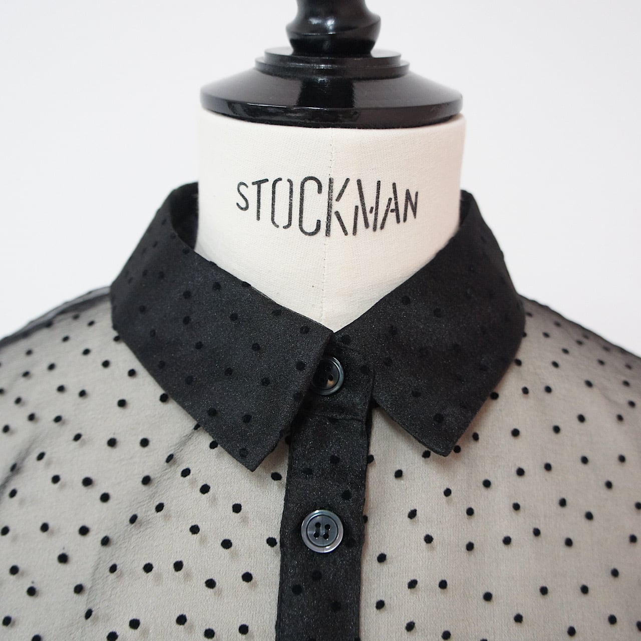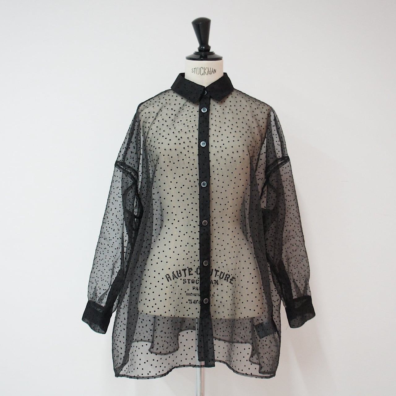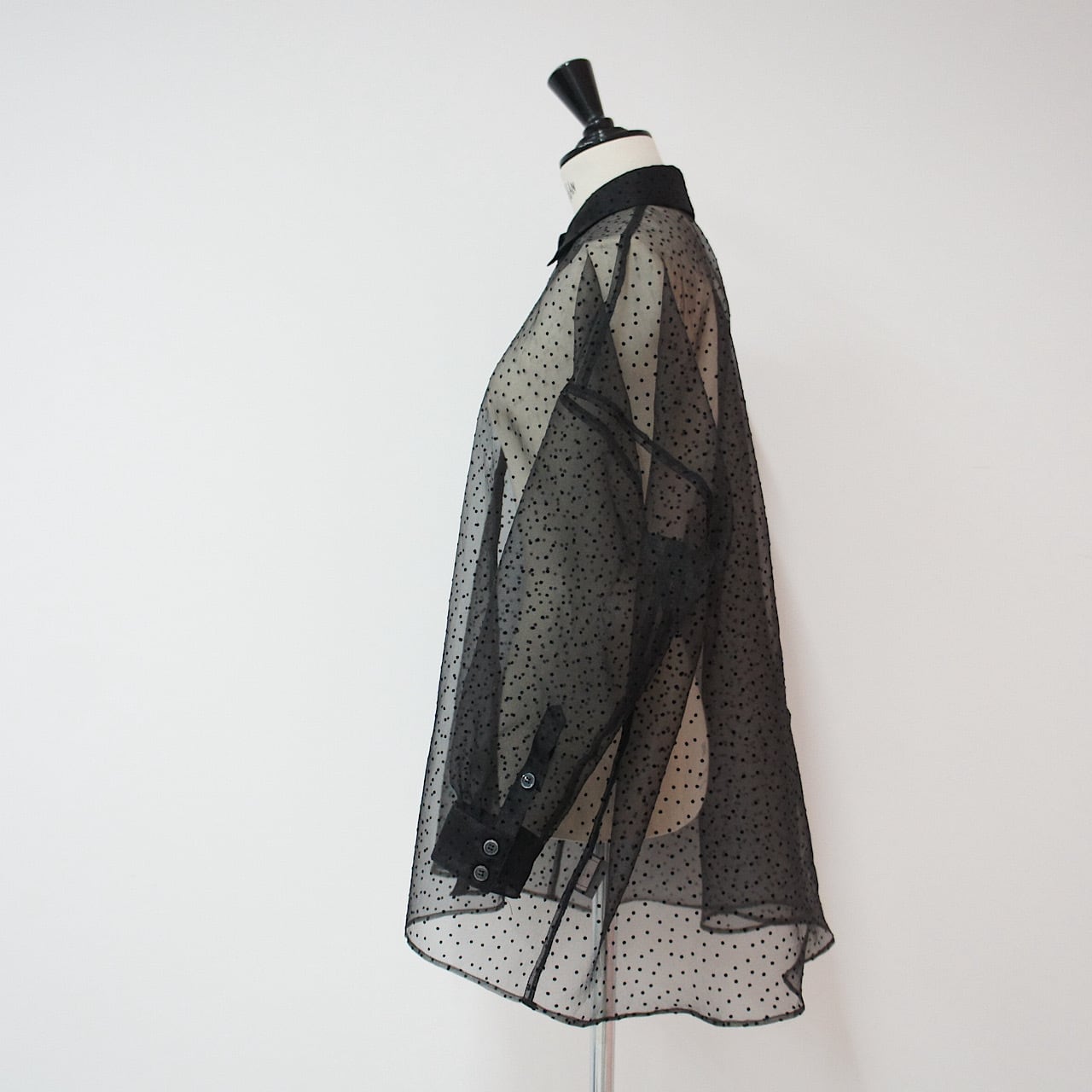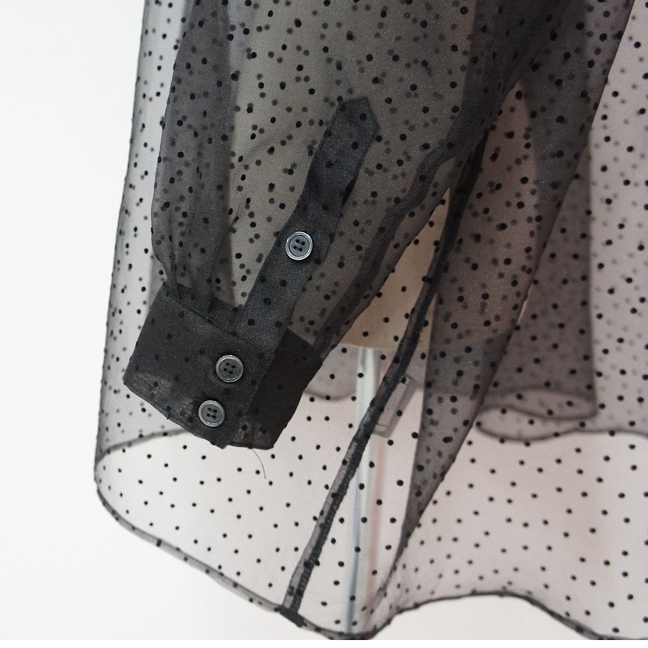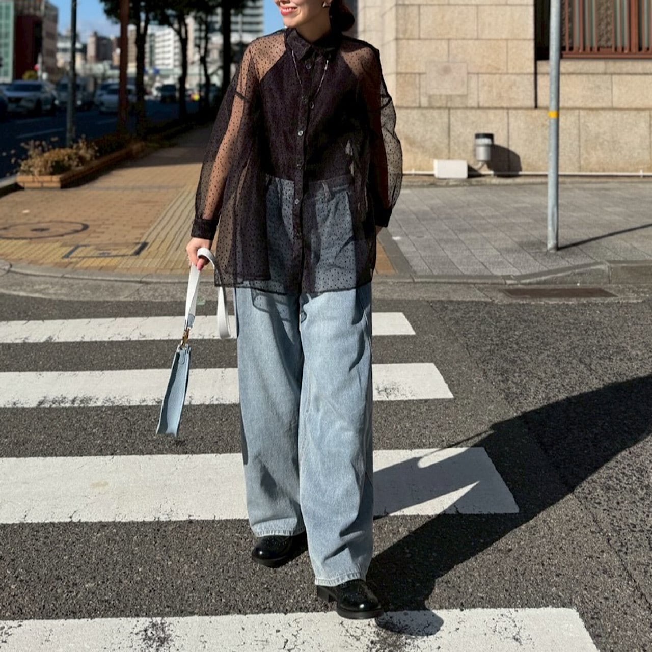 繊細なドット柄が上品に映える、シアー素材のドットブラウス。程よい透け感があり、軽やかで女性らしい印象を演出します。