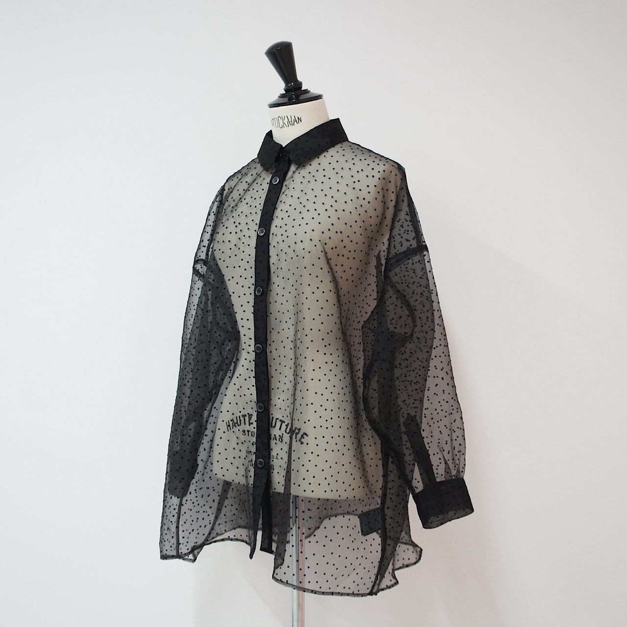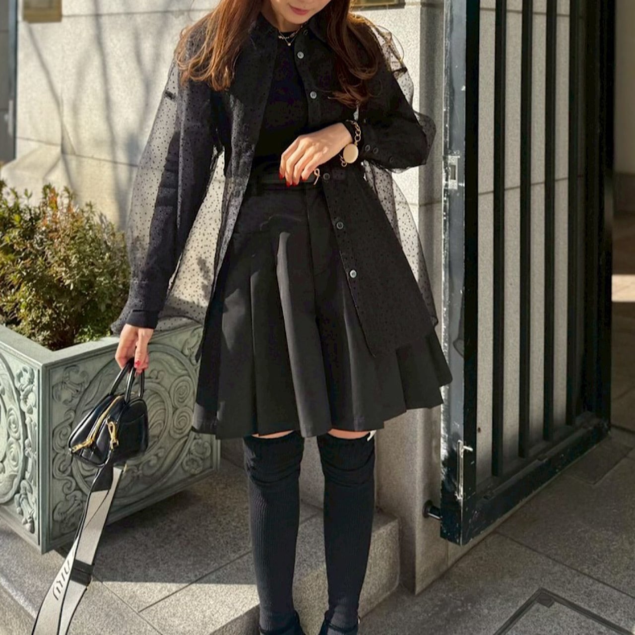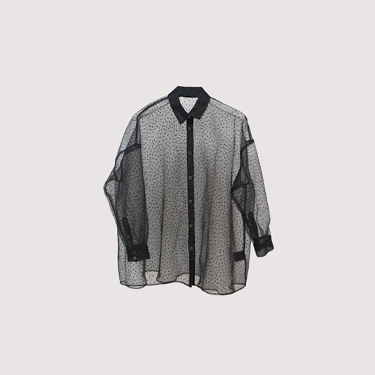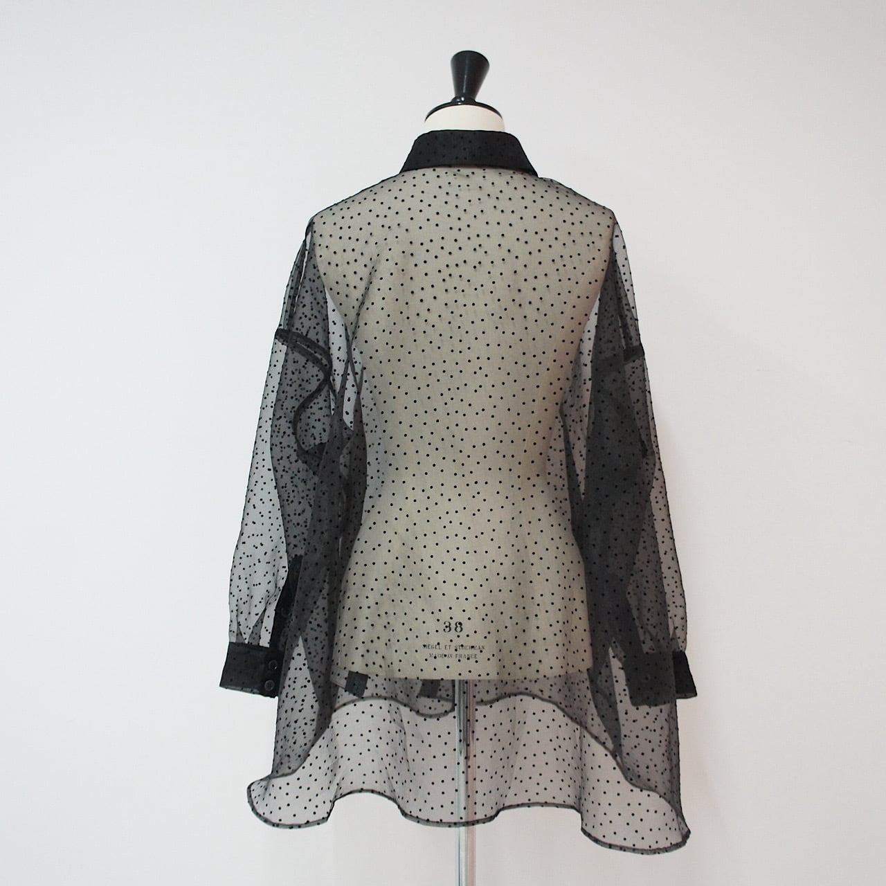 繊細なドット柄が上品に映える、シアー素材のドットブラウス。程よい透け感があり、軽やかで女性らしい印象を演出します。