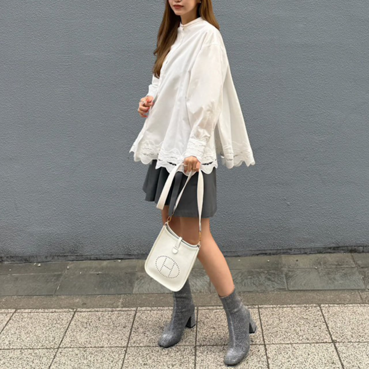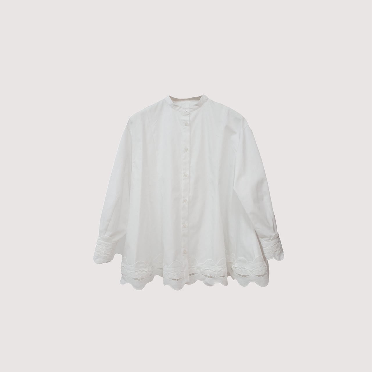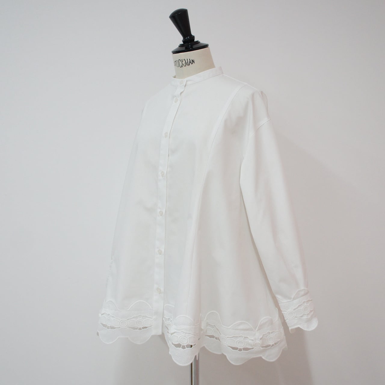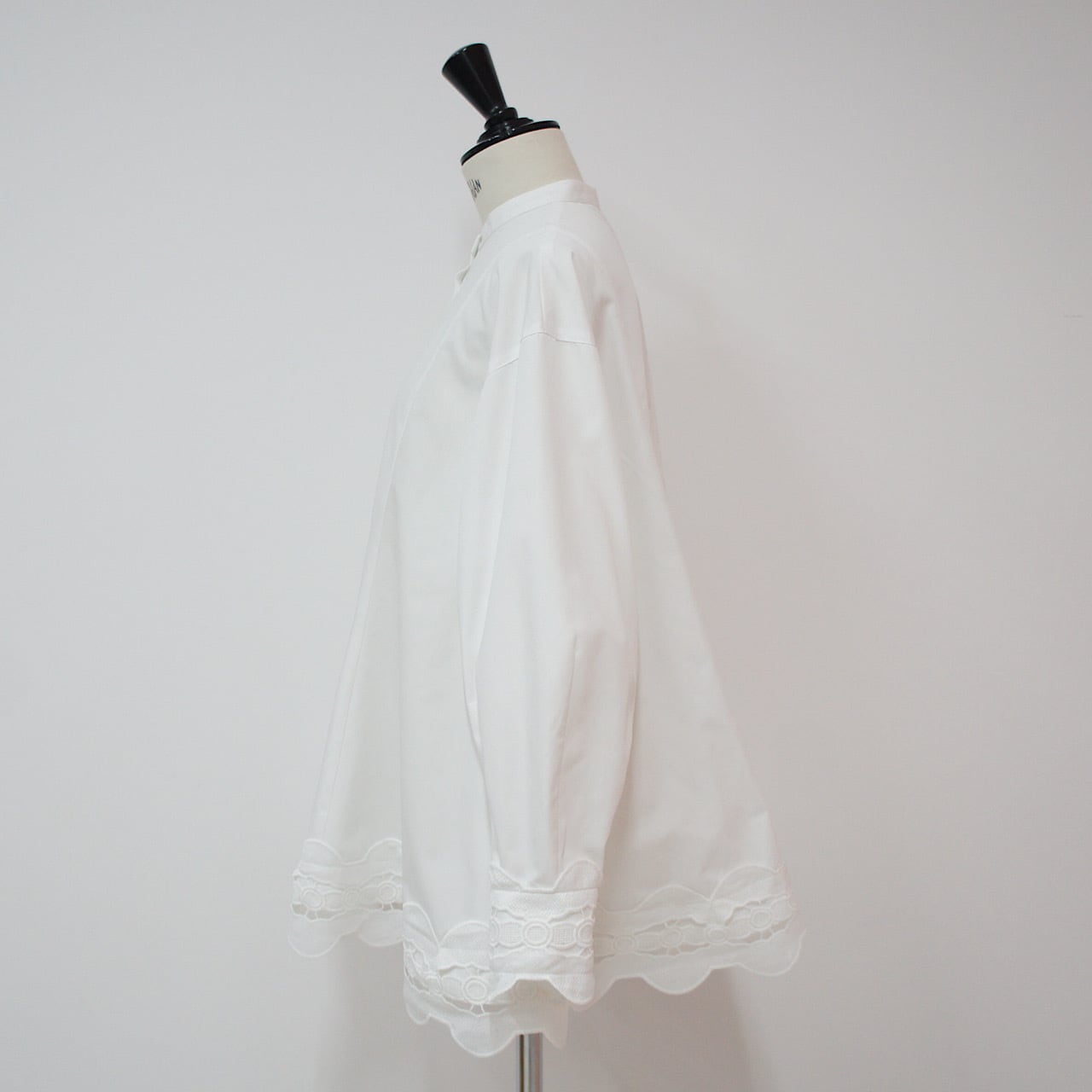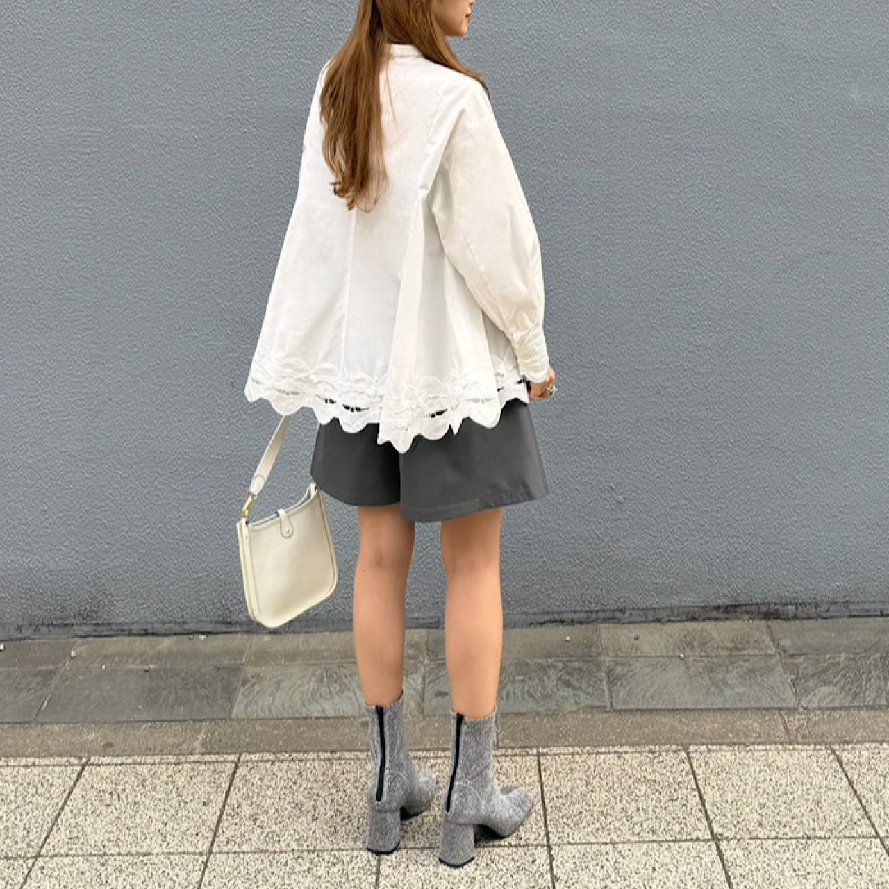甘くなりすぎないレースデザインで主役級でありながらレイヤードや羽織りスタイルにも活躍。きちんと感と抜け感を兼ね備えた大人のためのブラウス。
