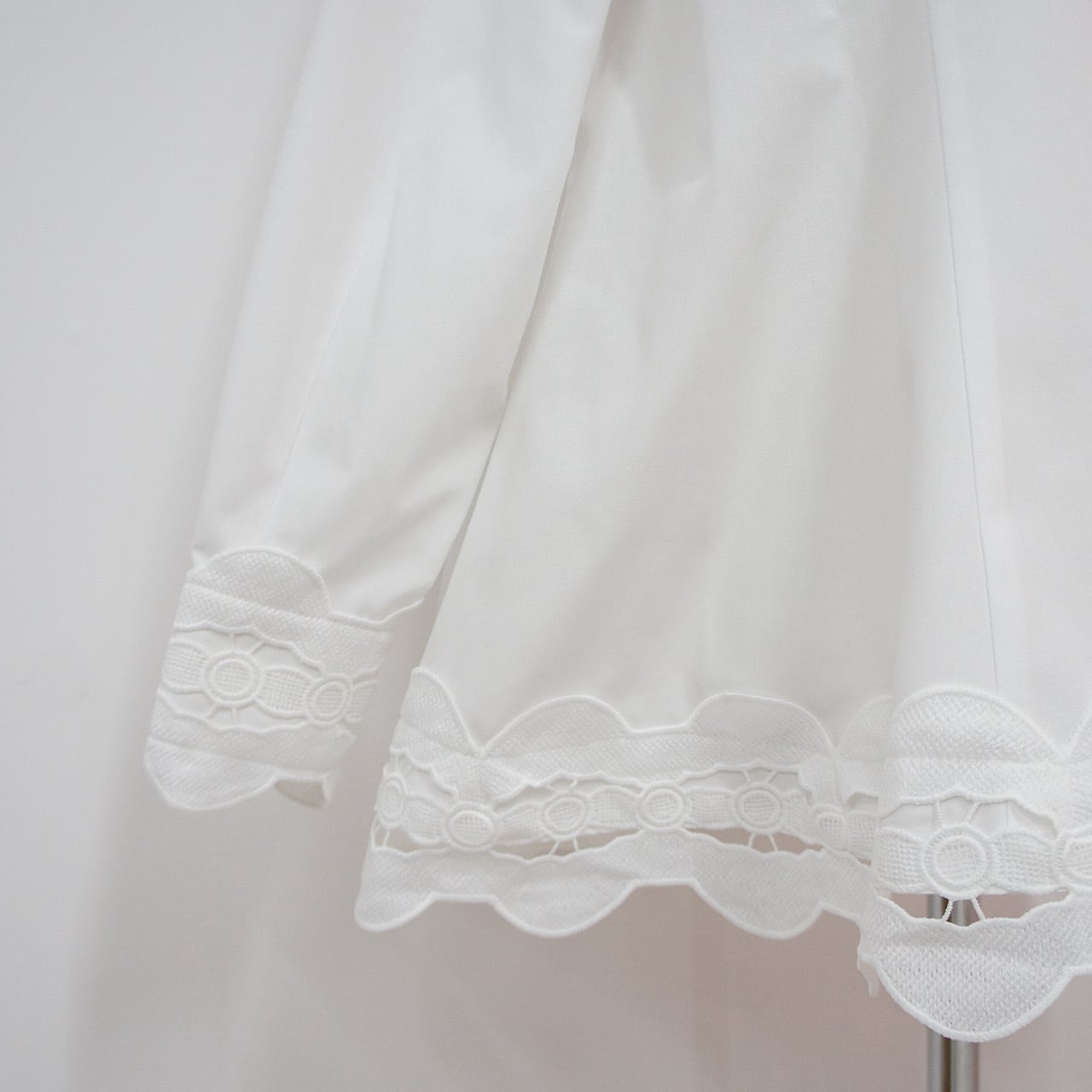 裾にはポリエステル100%のレース素材をあしらい、動くたびにふわりと揺れるフレアシルエットに。