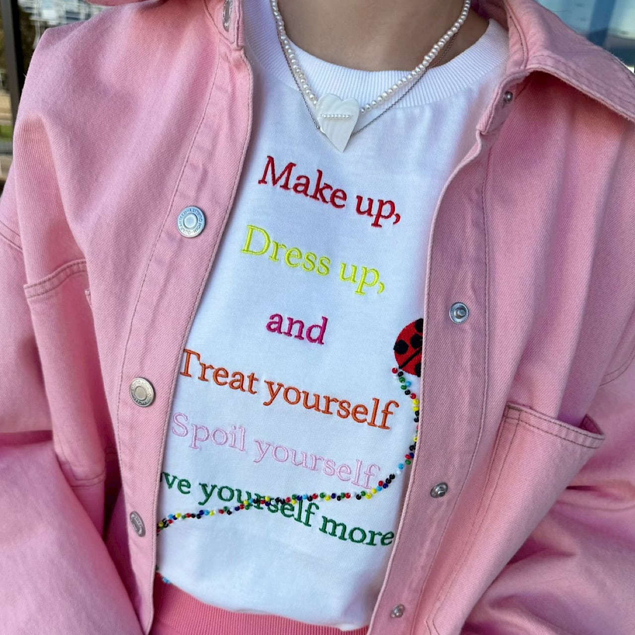 自分を大切にする気持ちを込めたポジティブなメッセージTシャツ。綿100%で肌にも優しい。